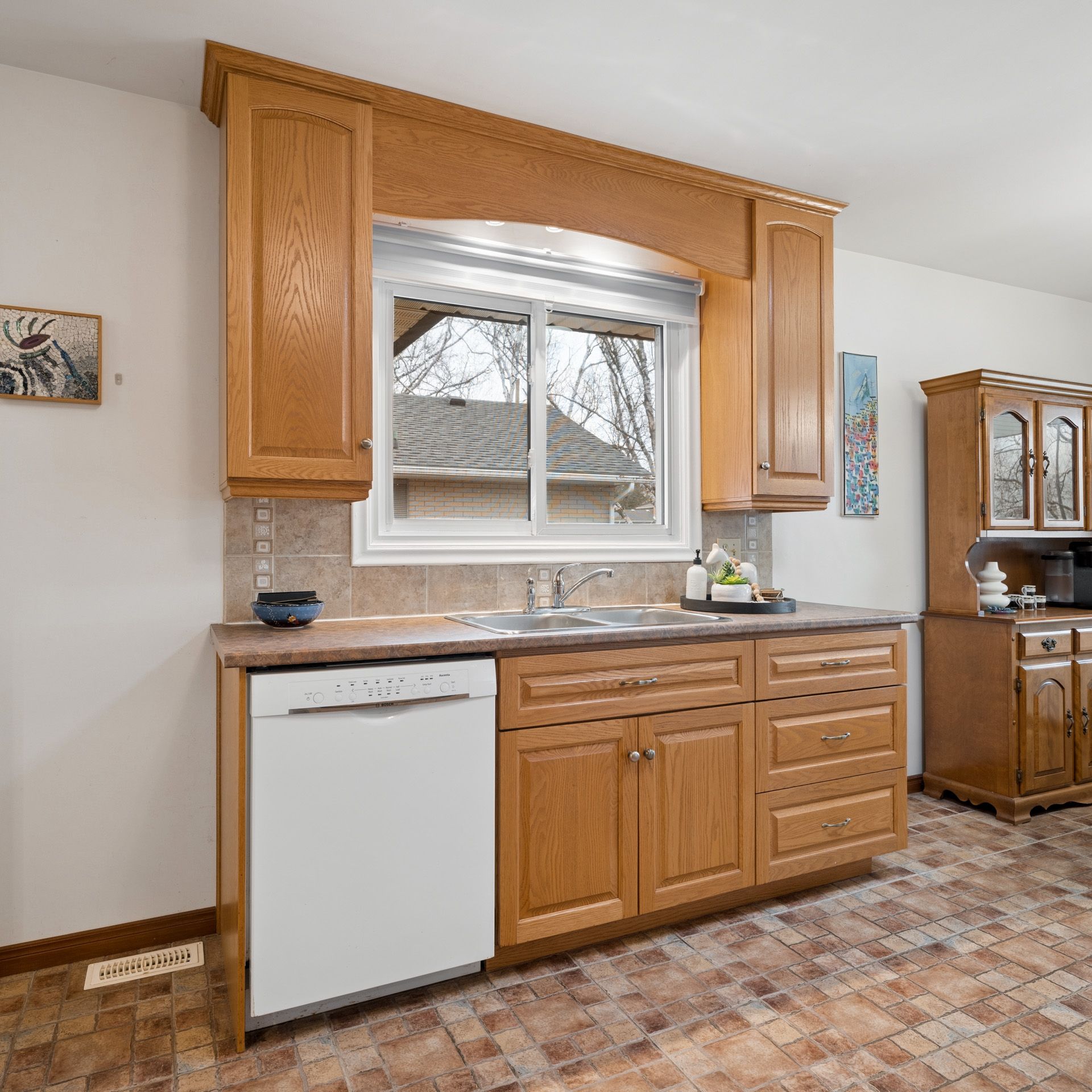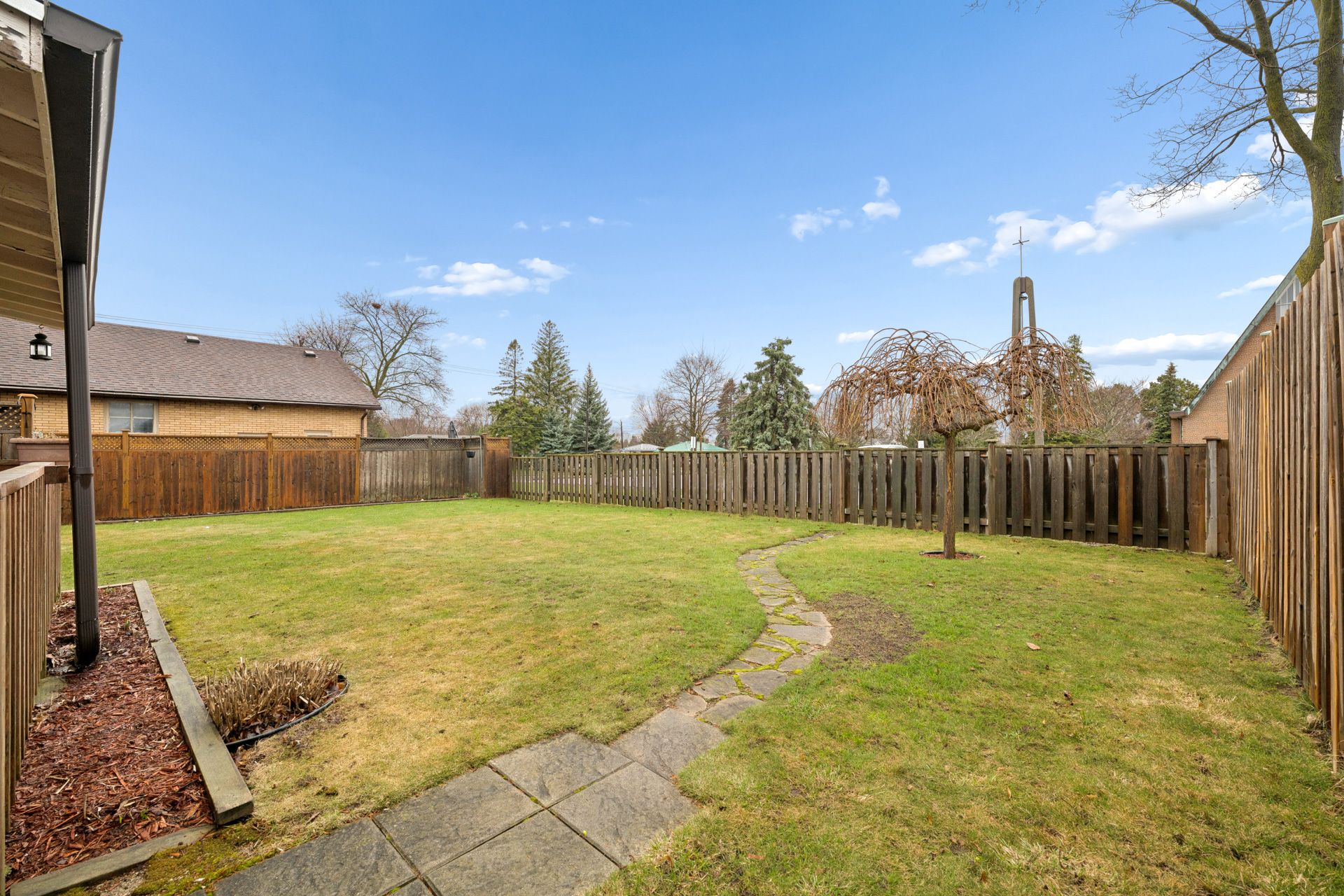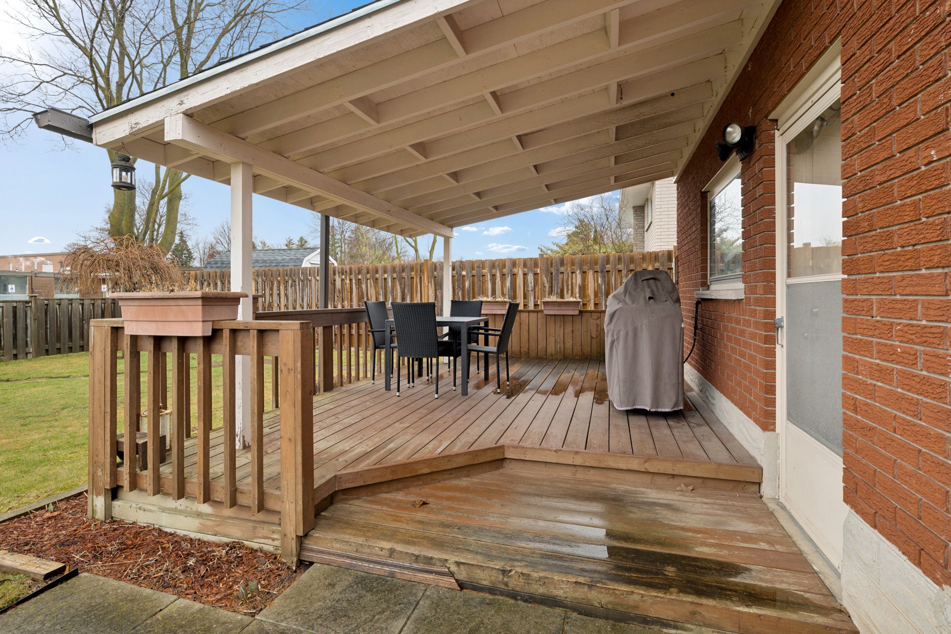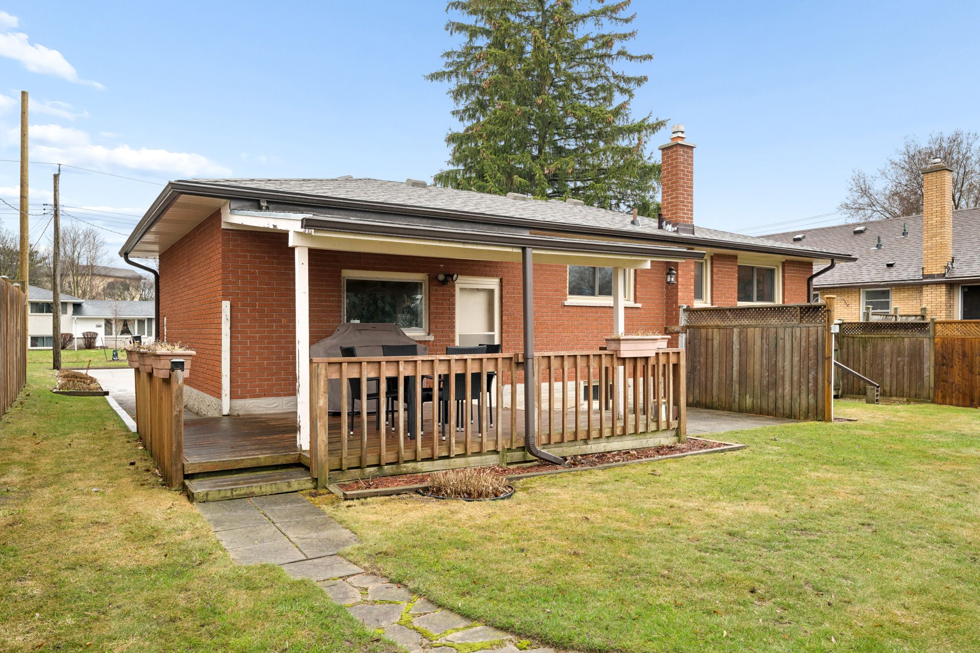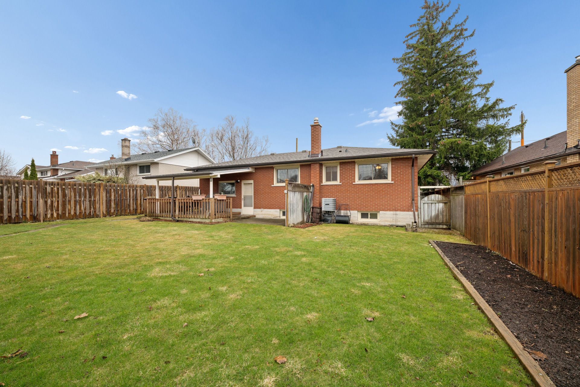Some homes just feel right the moment you walk in, and this is one of them. It's a solid brick bungalow, built in a time when quality was a standard. Upstairs offers three large bedrooms with hardwood floors and a full bathroom that feels clean and cared for. The gorgeous living room is right beside the bright, functional eat-in kitchen with plenty of counter space and solid oak cabinets right to the ceiling. This kitchen is timeless and built to last, with easy access through the garage to the large covered patio out back. Rain or shine, this meticulous backyard has you covered. Downstairs could be used as an in-law suite. It features a large rec room with lookout windows. There's a fourth bedroom, an oversized laundry room, a storage/utility room, and a second full bathroom, giving you that extra space everyone ends up needing. This house features all grounded copper wiring, an updated panel, a newer roof (2019), upgraded eaves troughs with leaf guards, r50 insulation, and all the windows come with a lifetime transferable warranty. You've also got an oversized 1. 5-car garage with an insulated garage door, ready for toys and hobbies. This location makes day-to-day living easy, with trails, schools, restaurants, transit, the community center, the mall, and the expressway all close by.