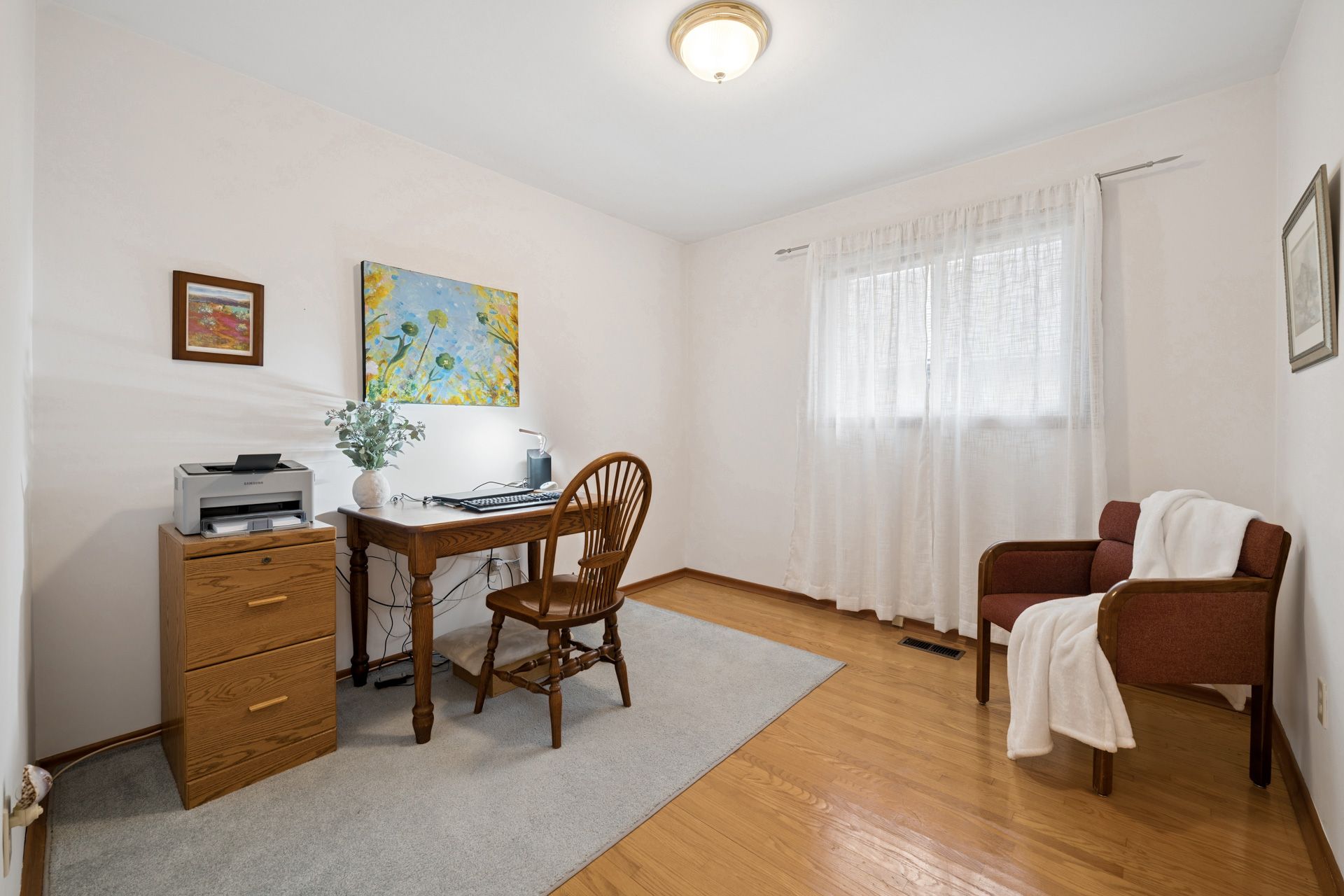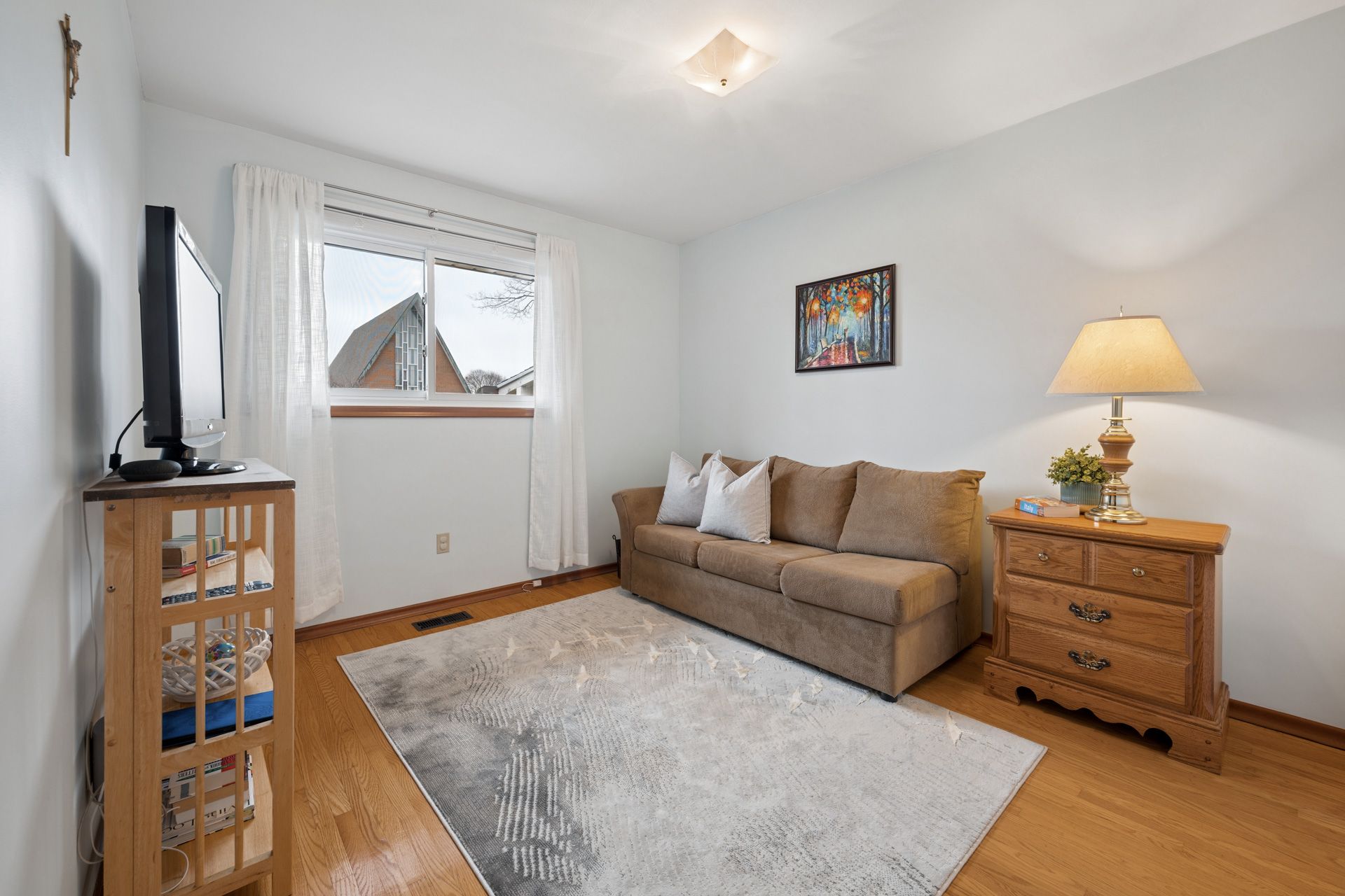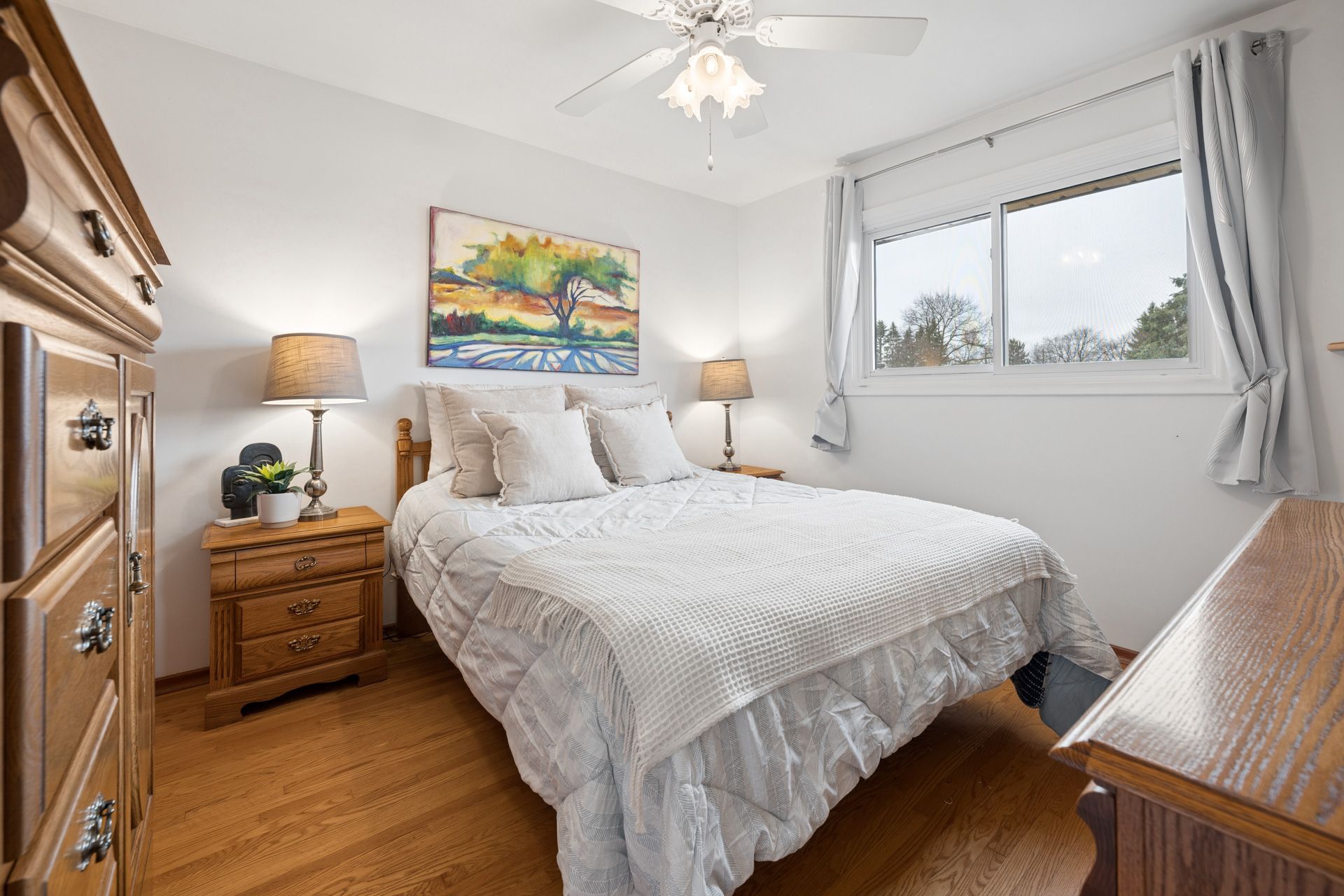 • Three large bedrooms with hardwood floors and a clean bathroom.
