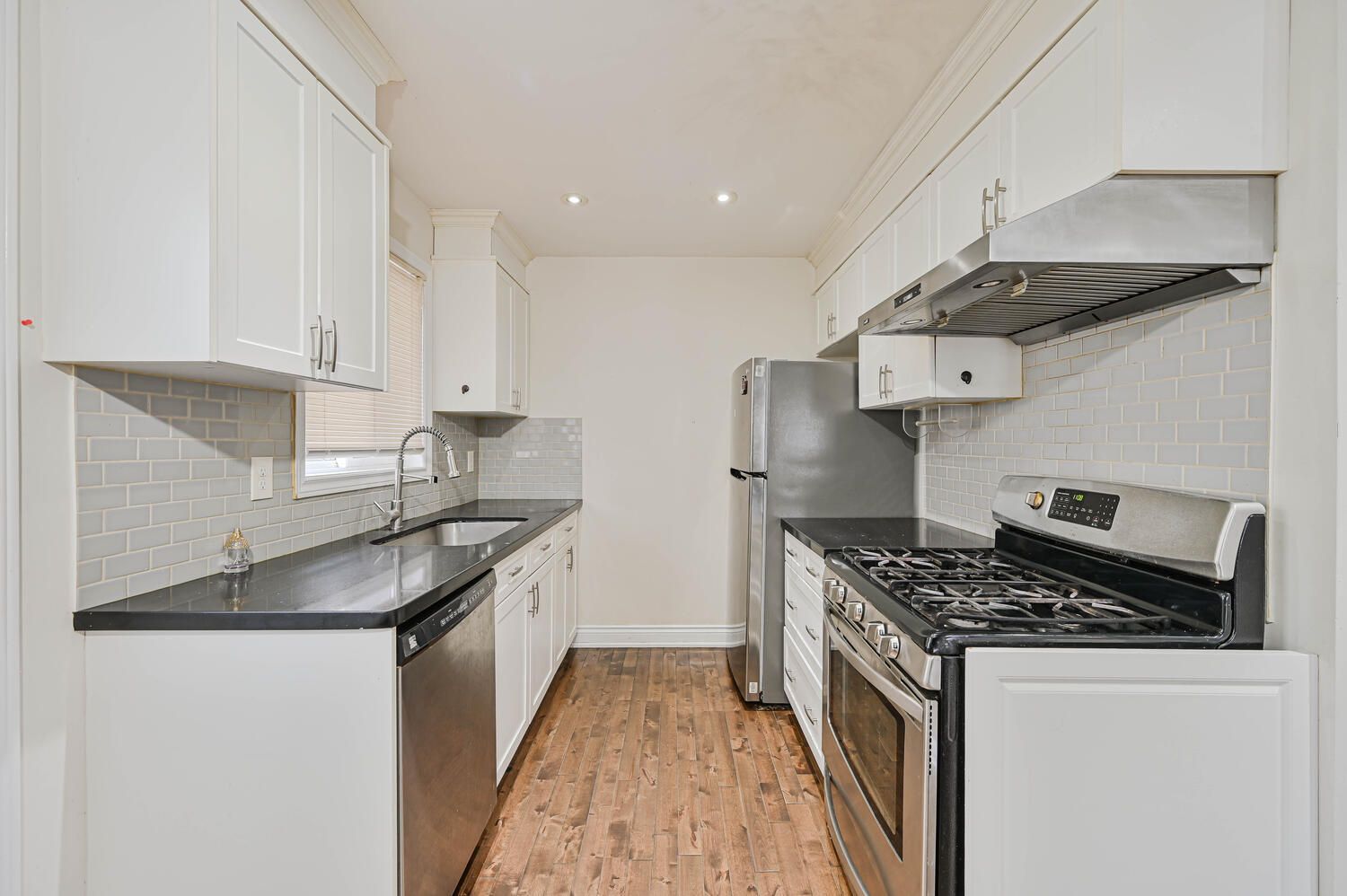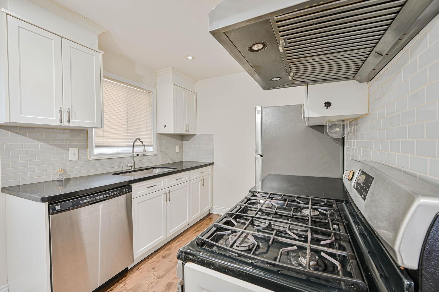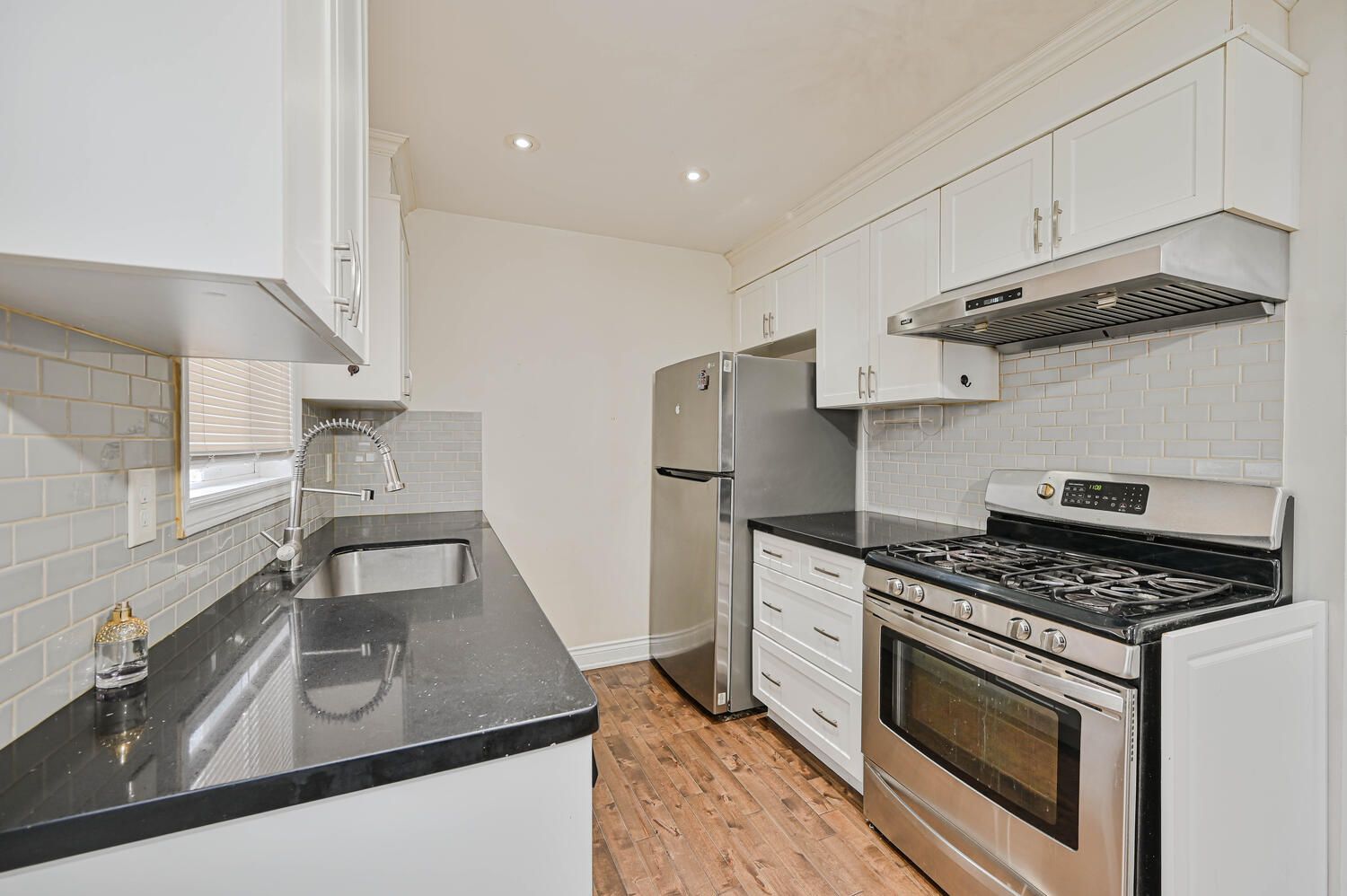 • Upgraded kitchen featuring quartz countertops and built-in stainless steel appliances.
