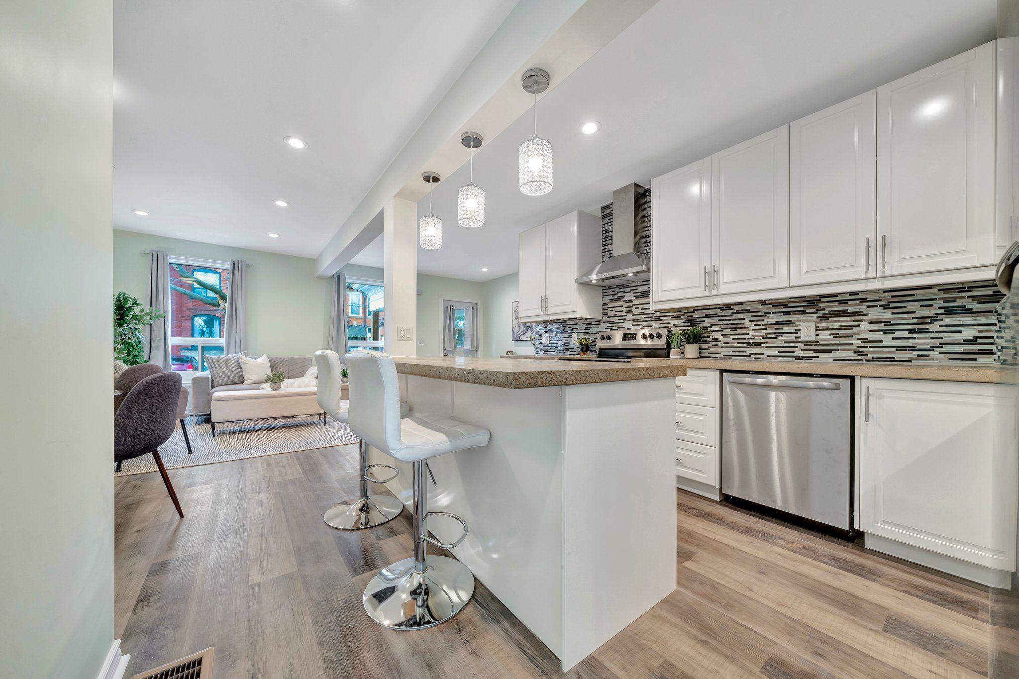 Welcome to this spectacular home located in the trendy beasley community. Occupying the main and lower level of this immaculate duplex property. Close to shops, cafes, restaurants and easy access to public transit. This home has been completely renovated with high end finishes including a chefs kitchen with stone countertops, center island and s/s appliances. Pot lights and premium vinyl flooring throughout the home. The main floor features a spacious open concept living/dining room and kitchen with a primary bedroom and a 3pc bath. The basement level features 2 additional bedrooms, a room for office or storage and a 2 pc bath. Ensuite washer and dryer included. One parking spot located at the back of property accessed by laneway is included in the lease price. Street parking is also available, including overnight. Looking for a+ tenants. Tenant is responsible for the cost of hydro + 60% of heating and water charges