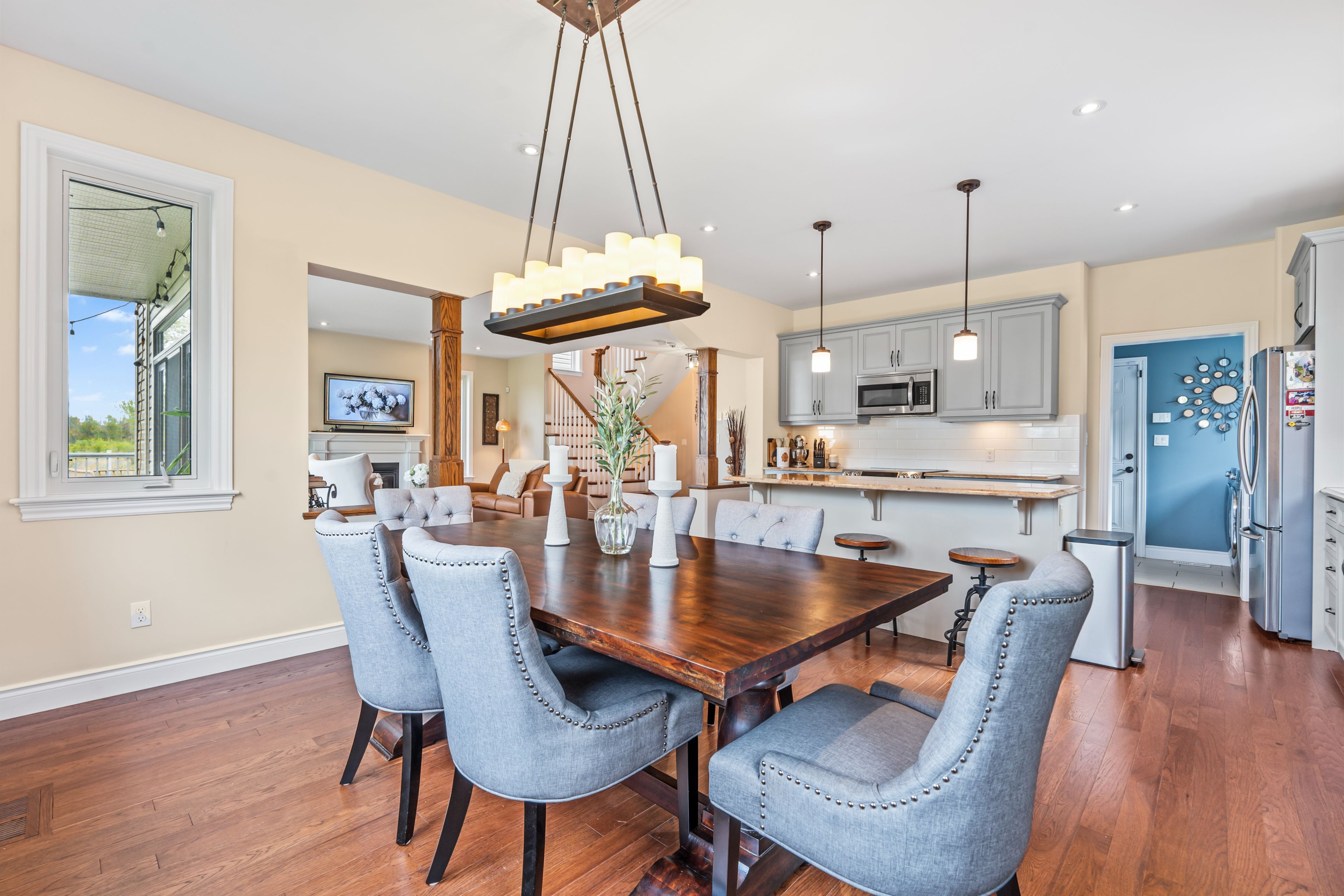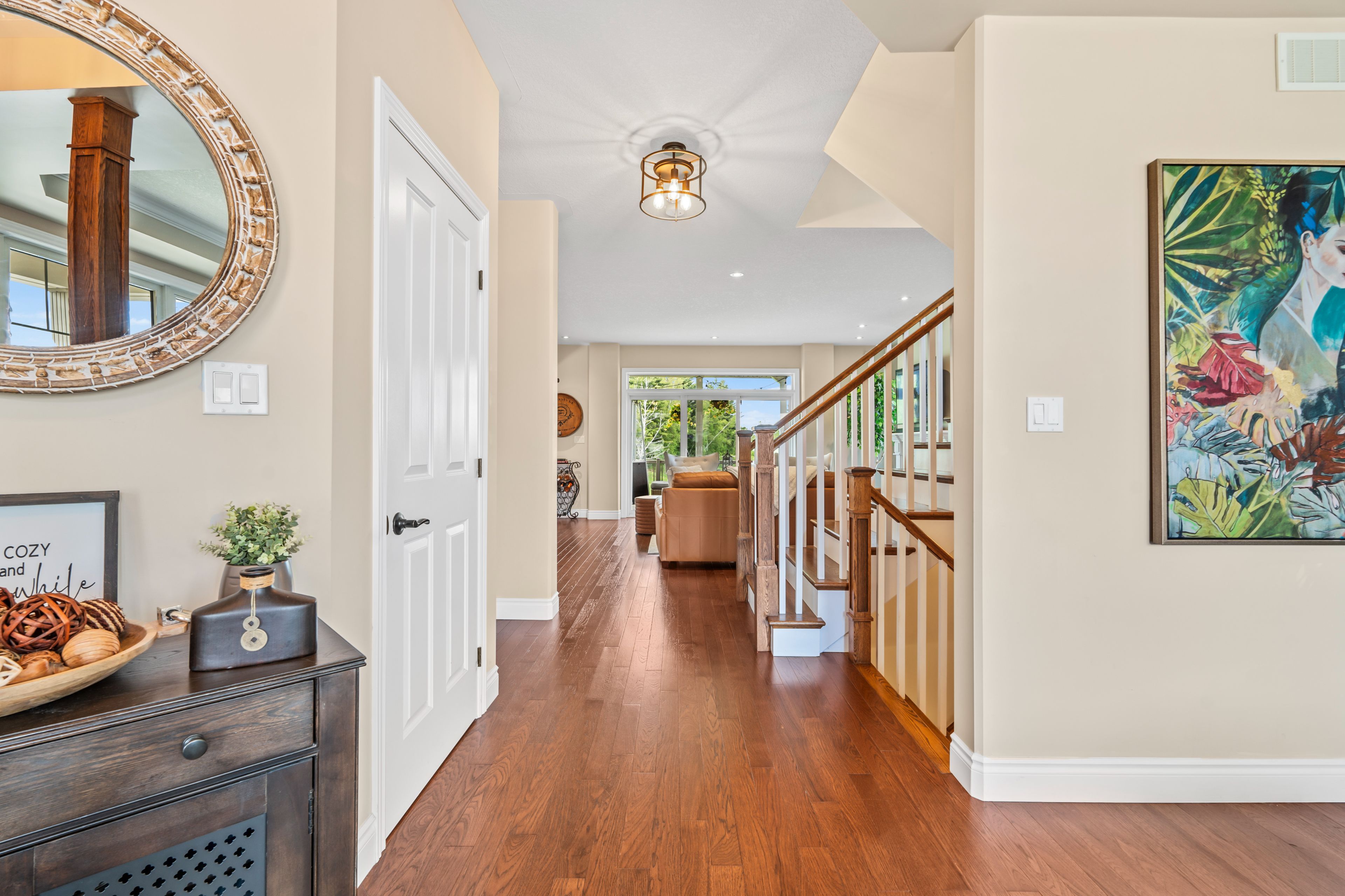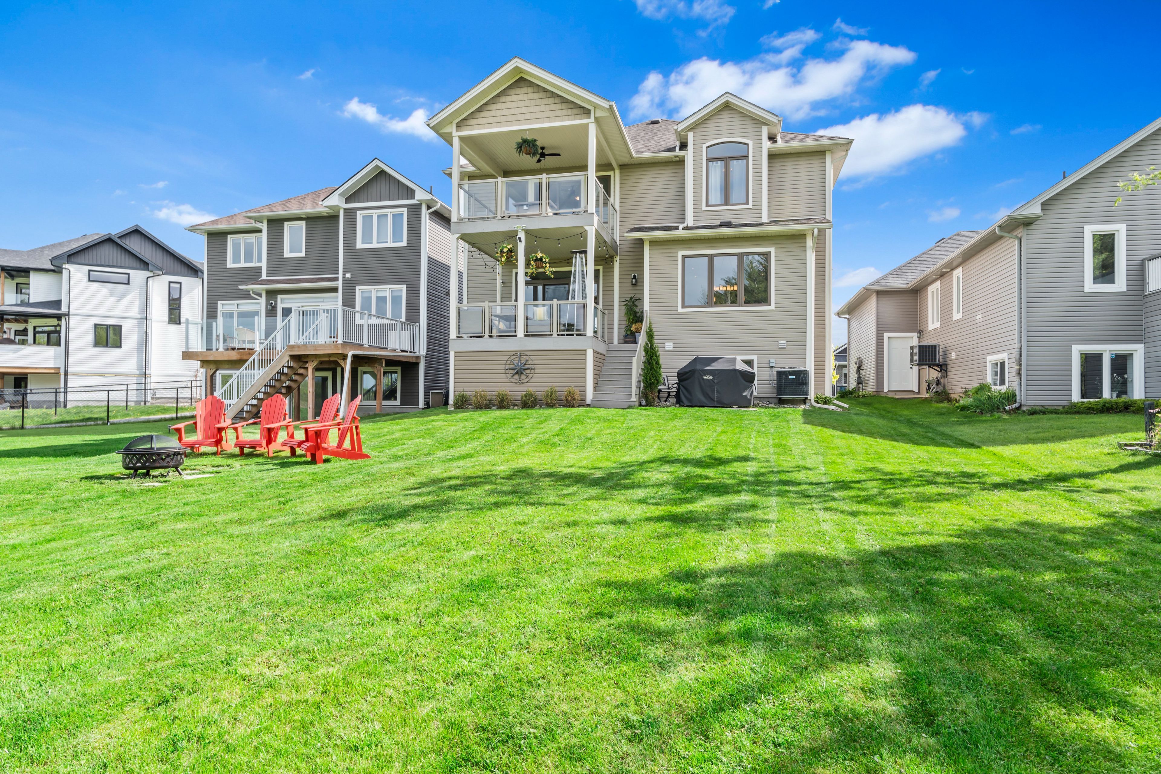 Luxurious executive home with serene views... Your dream home awaits! Welcome to this exquisite 4-bedroom, 4-bathroom summerhill model by barr homes, ideally situated in a peaceful cul-de-sac, backing onto a tranquil green space with serene pond views. Step inside to discover a bright, airy layout where natural light pours through expansive windows, perfectly framing the picturesque surroundings. Imagine waking up to breathtaking sunrises and the occasional glimpse of deer roaming in your backyard. The main level is designed for both comfort and entertaining, offering seamless flow and elegant finishes throughout. Upstairs, the luxurious primary suite features a 5-piece ensuite and private access to a covered upper deck, the perfect spot for your morning coffee or unwinding at sunset. Two additional spacious bedrooms complete the upper level. The fully finished lower level is a standout, featuring a fourth bedroom, a stylish 3-piece bathroom, and a large rec room with a wet bar ideal for movie nights or hosting friends. Additional highlights include durable composite decking, alfred camera security system for added peace of mind, and a convenient location close to all amenities. Don't miss your opportunity to own this stunning executive home. Schedule your private showing today.