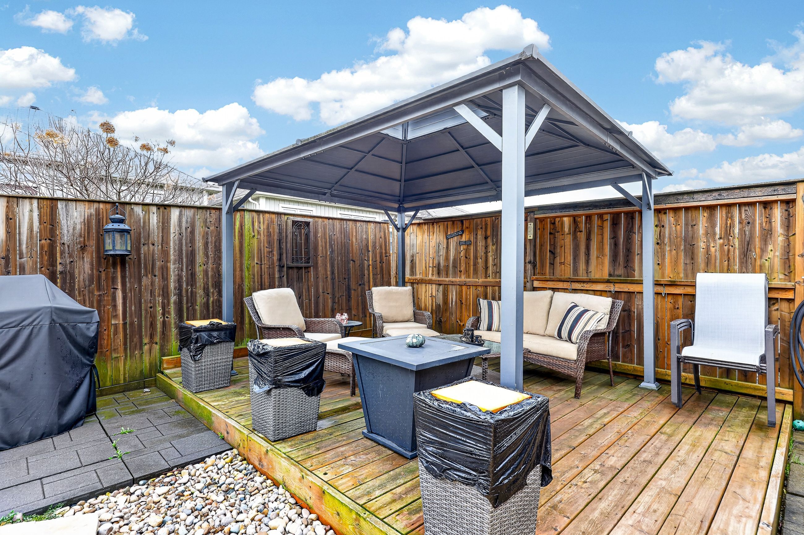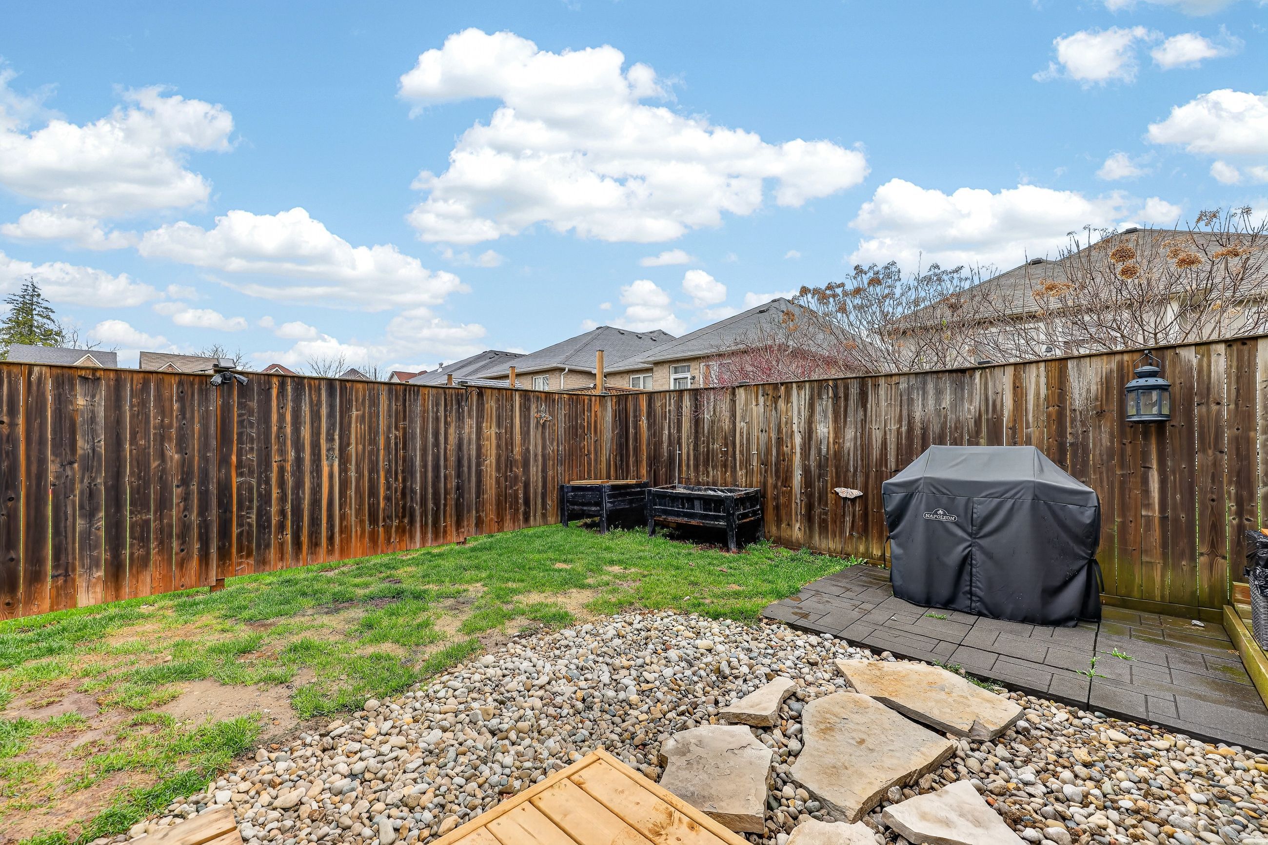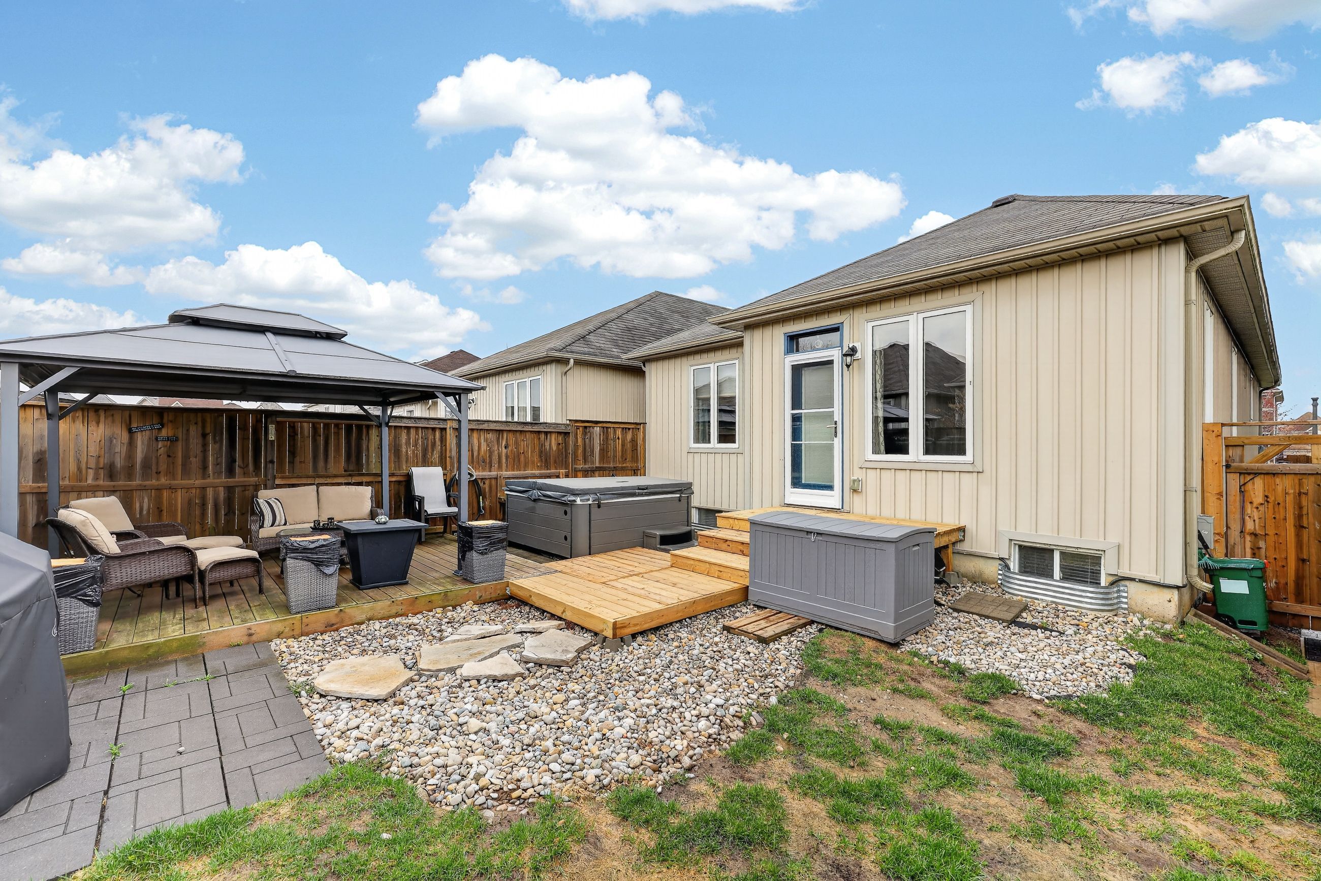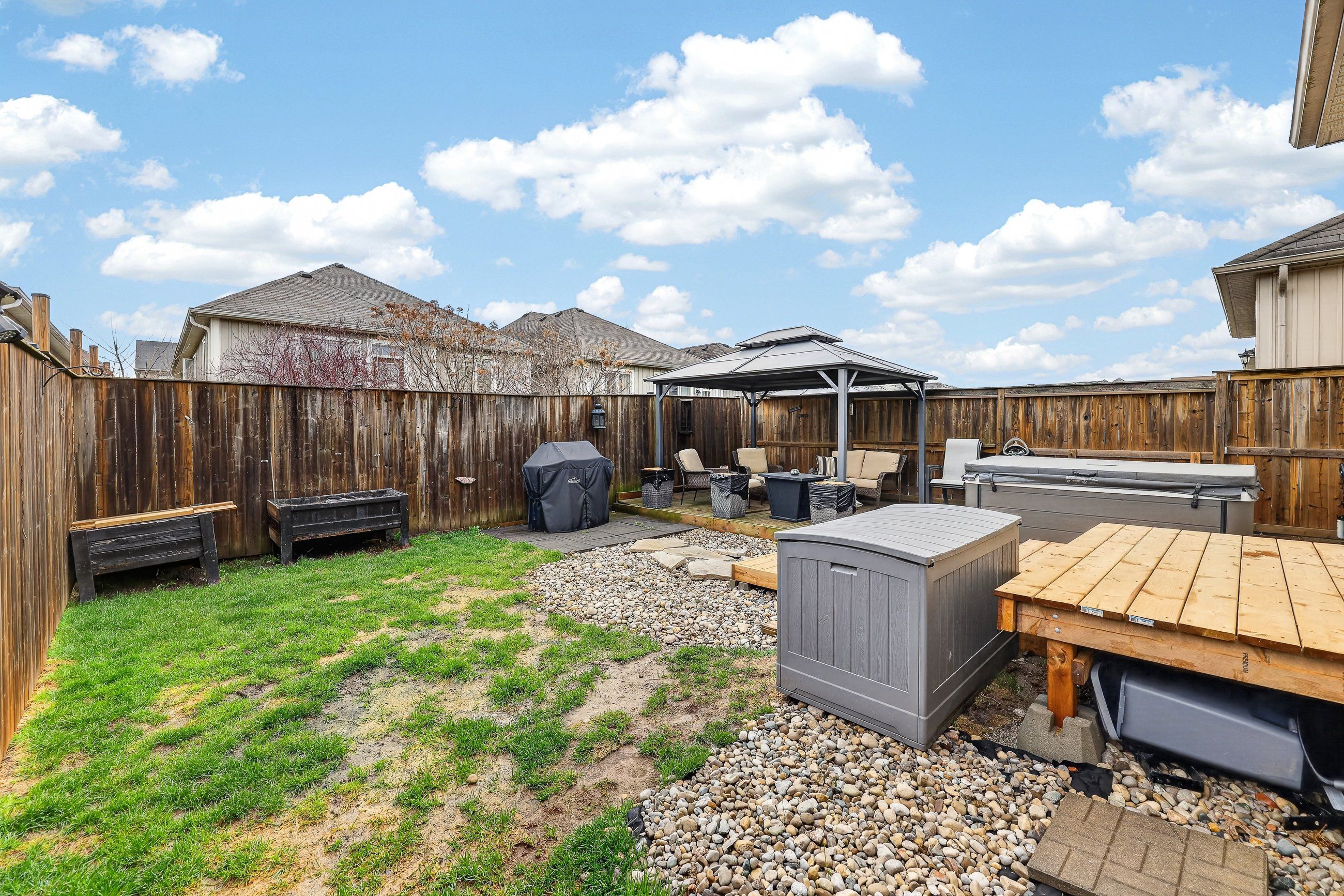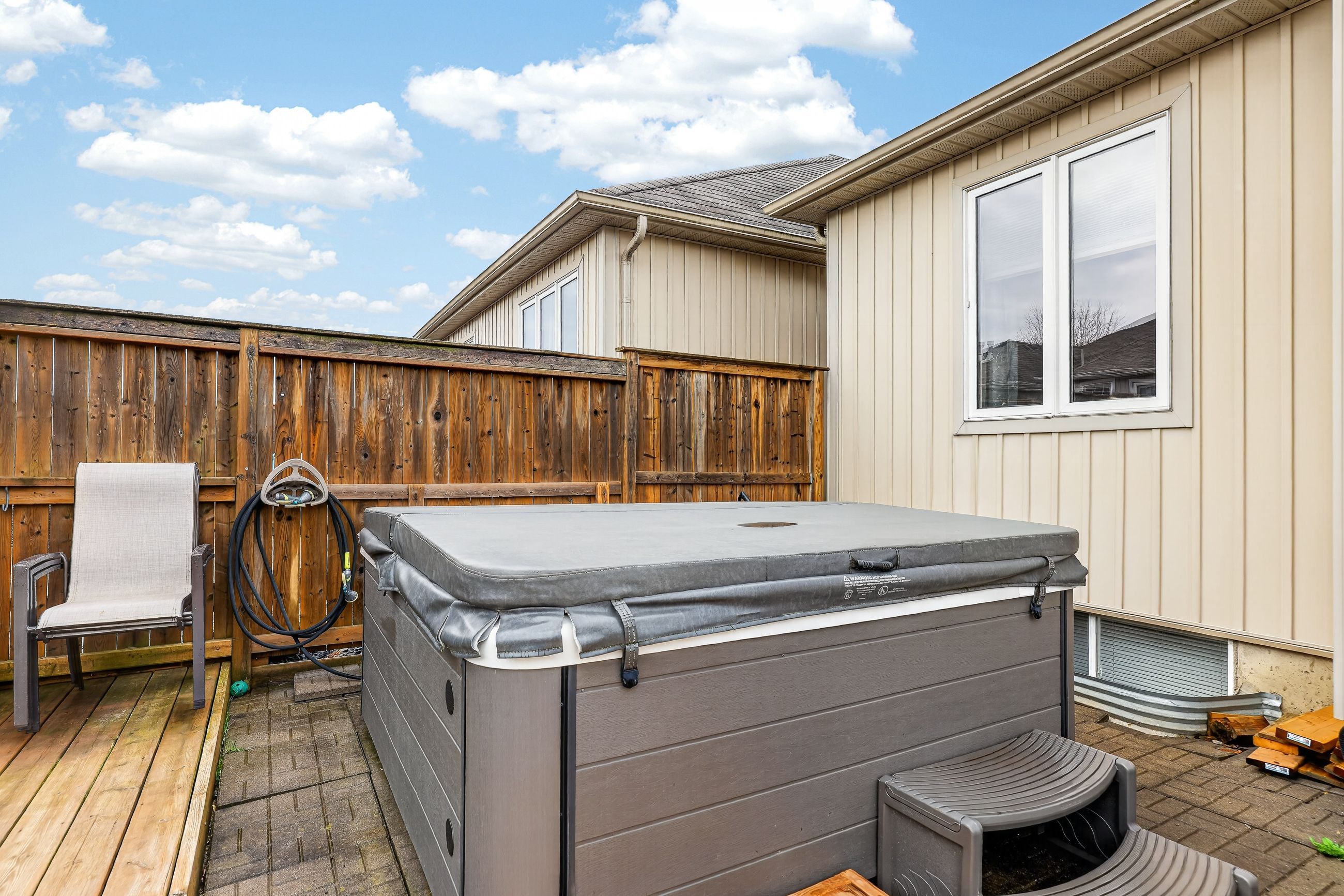 • Low maintenance fenced yard with a hot tub for relaxation.