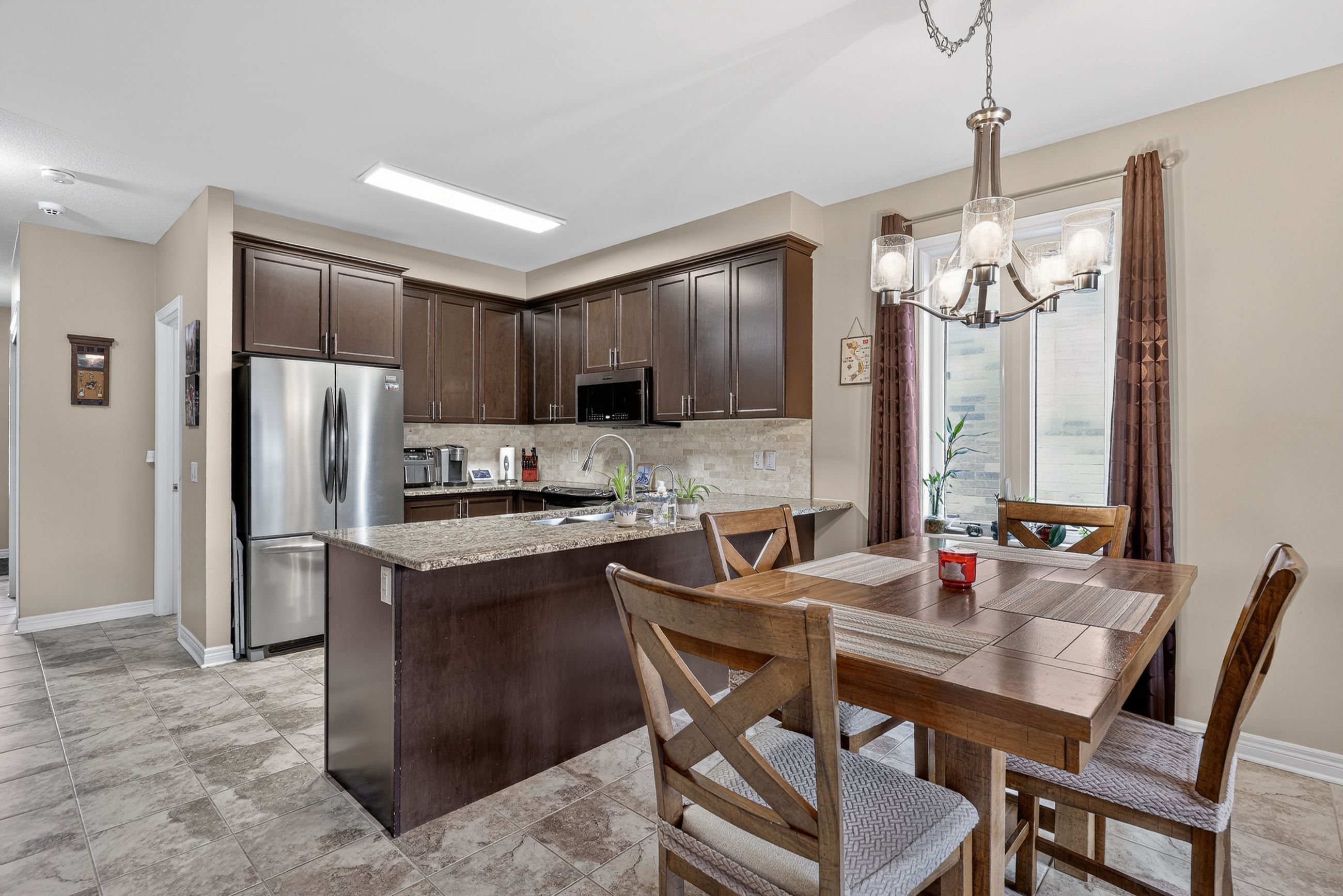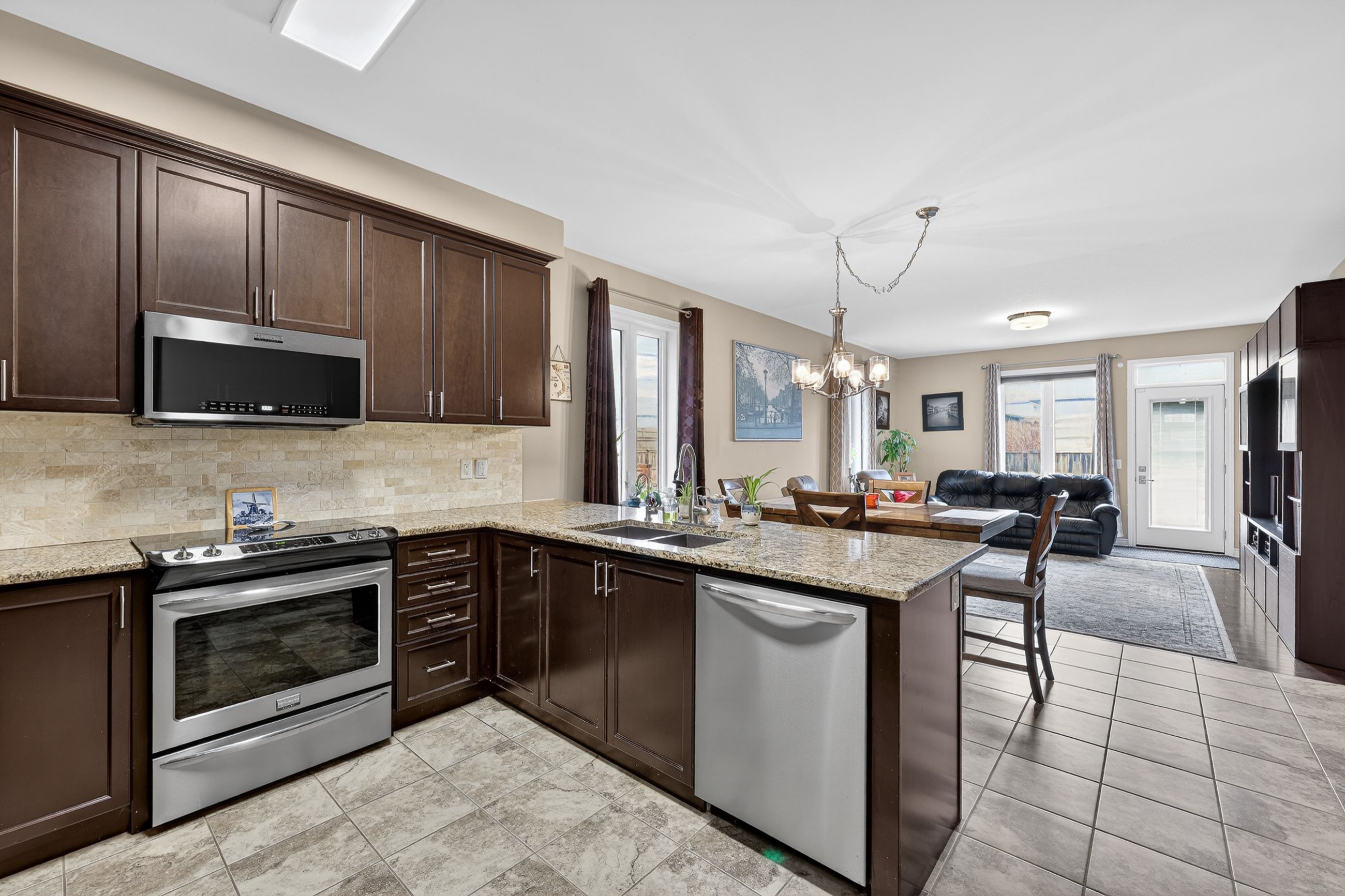 • Bright open concept main floor connects kitchen, dining, and living areas.