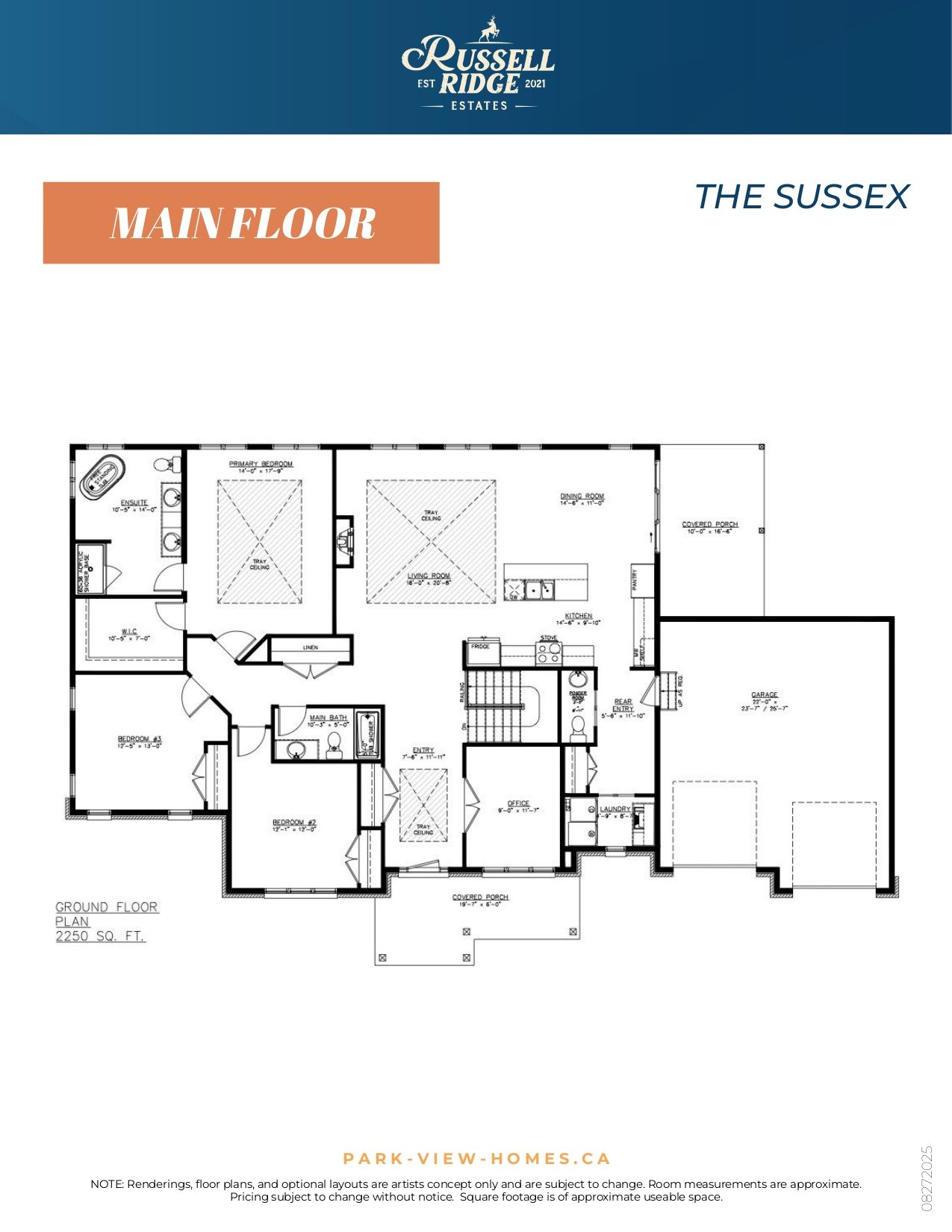 To be built. The sussex model (on a walkout basement lot!) by park view homes offers approximately 2,250 sq. Ft. Of well-designed living space in russell ridge estates. Set on a premium lot, this energy star certified bungalow combines quality construction with modern comfort and efficiency. Personalize your home by choosing the finishes you want, from cabinetry and countertops to flooring and tile. The open-concept main level features 9-foot ceilings, wide-plank laminate flooring, and bright, spacious living and dining areas. The kitchen is finished with quartz countertops, tile backsplash, and designer cabinetry, creating a stylish and functional central space. This 4 bedroom, 2. 5 bath home includes a primary retreat with 5 piece ensuite featuring double sinks and a freestanding tub, along with three additional bedrooms suited for family, guests or office use. High-performance construction, including triple-glazed windows and advanced airtightness, ensures year-round comfort and energy savings. Covered front and rear porches make it easy to enjoy your peaceful surroundings, whether relaxing or entertaining. Double-car garage. Located in marionville's russell ridge estates, this growing community offers peaceful country living with convenient access to nearby amenities and an easy commute to the city. Built by trusted local builder park view homes and backed by a full tarion warranty.