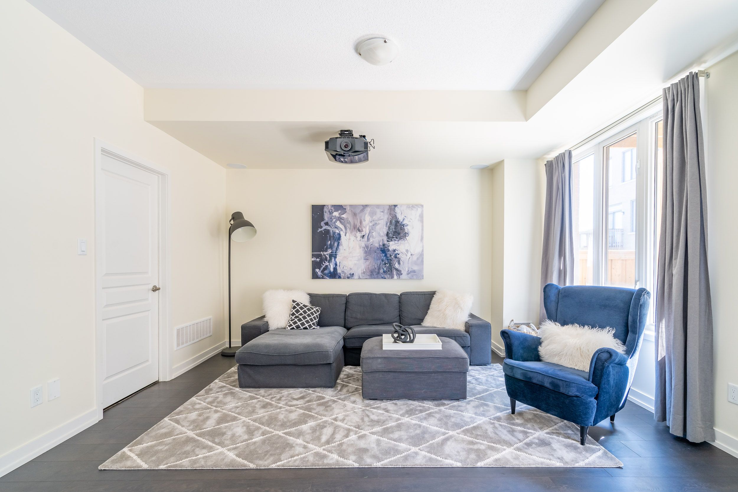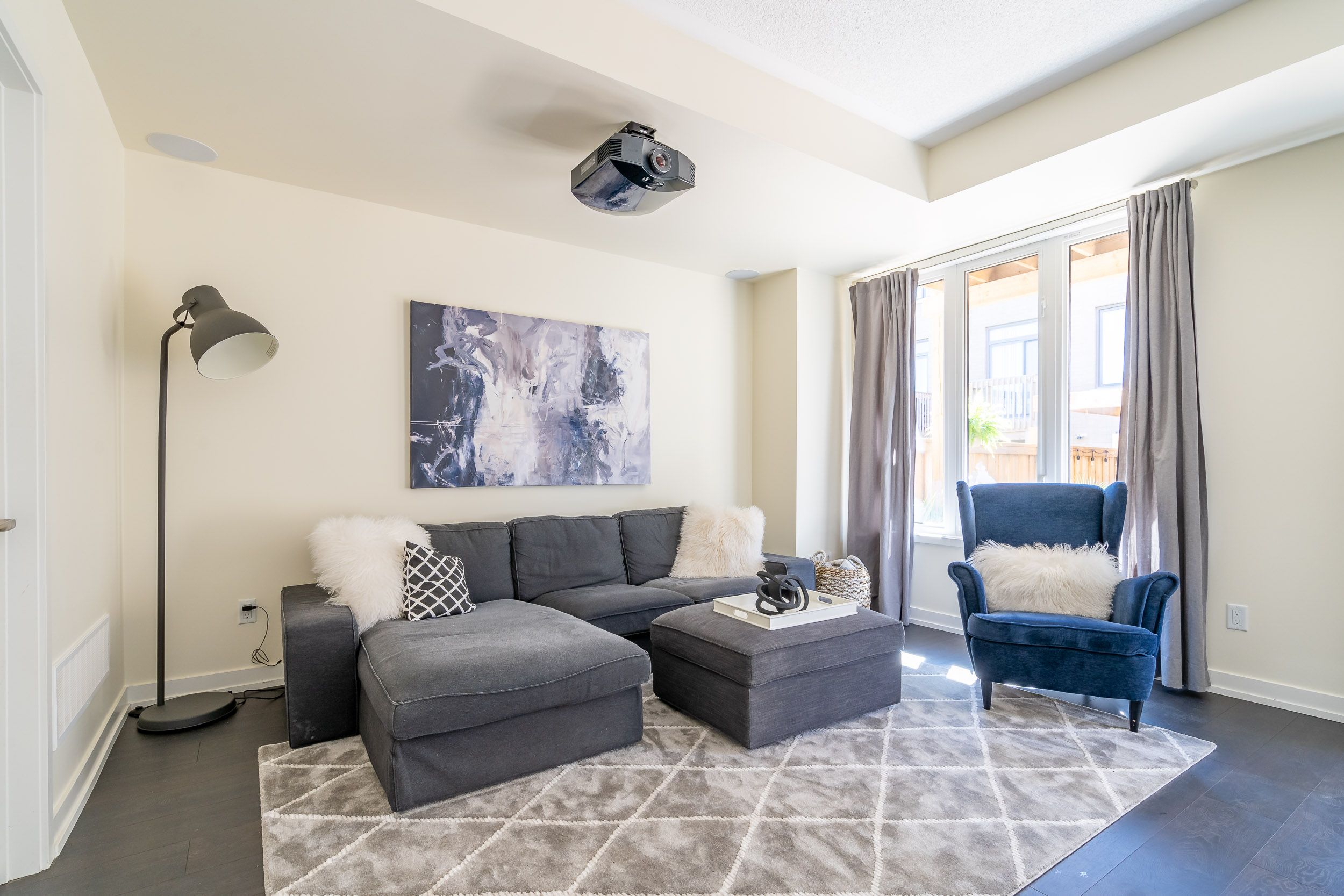 • High-end theatre room with a 120-inch screen and projector included.