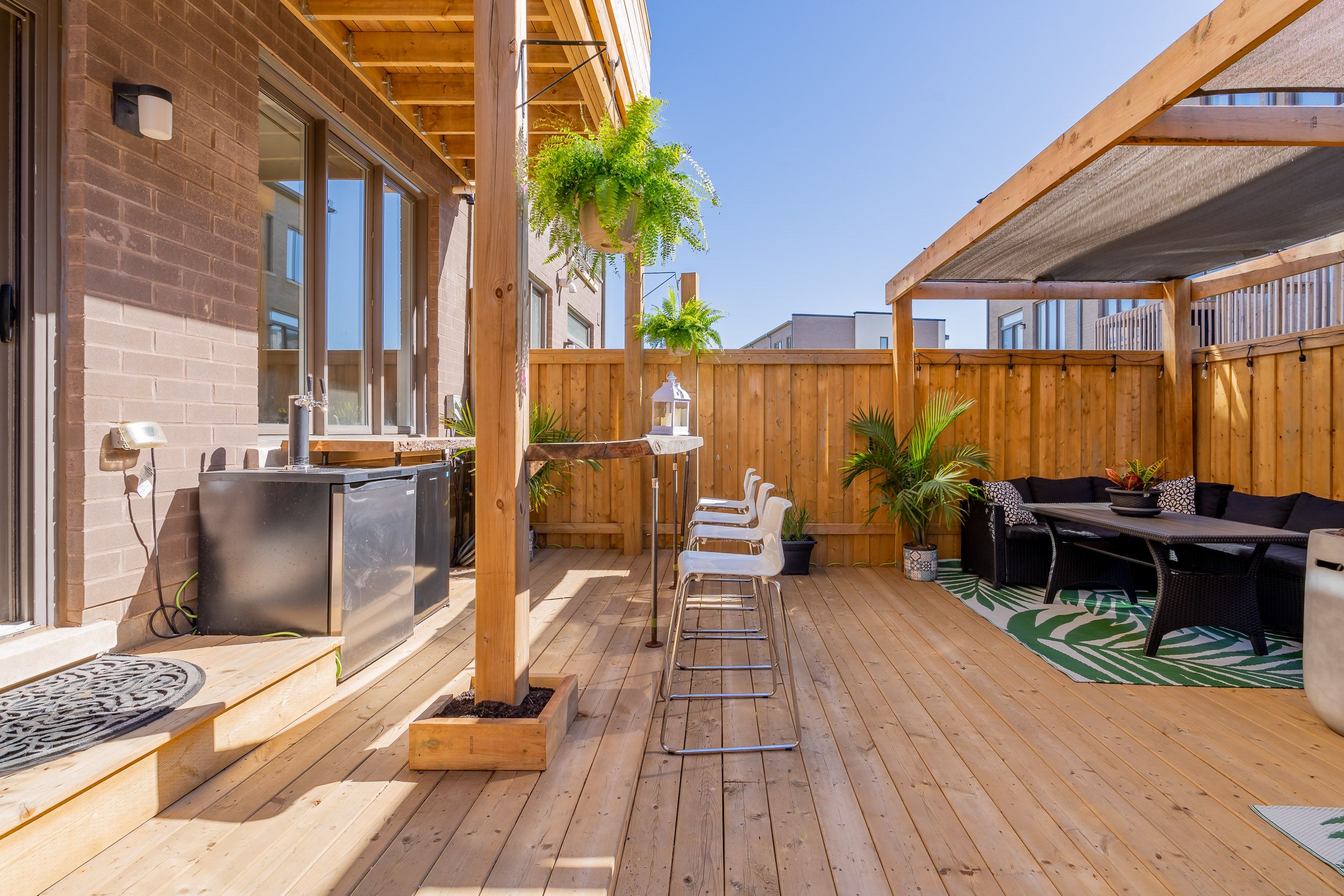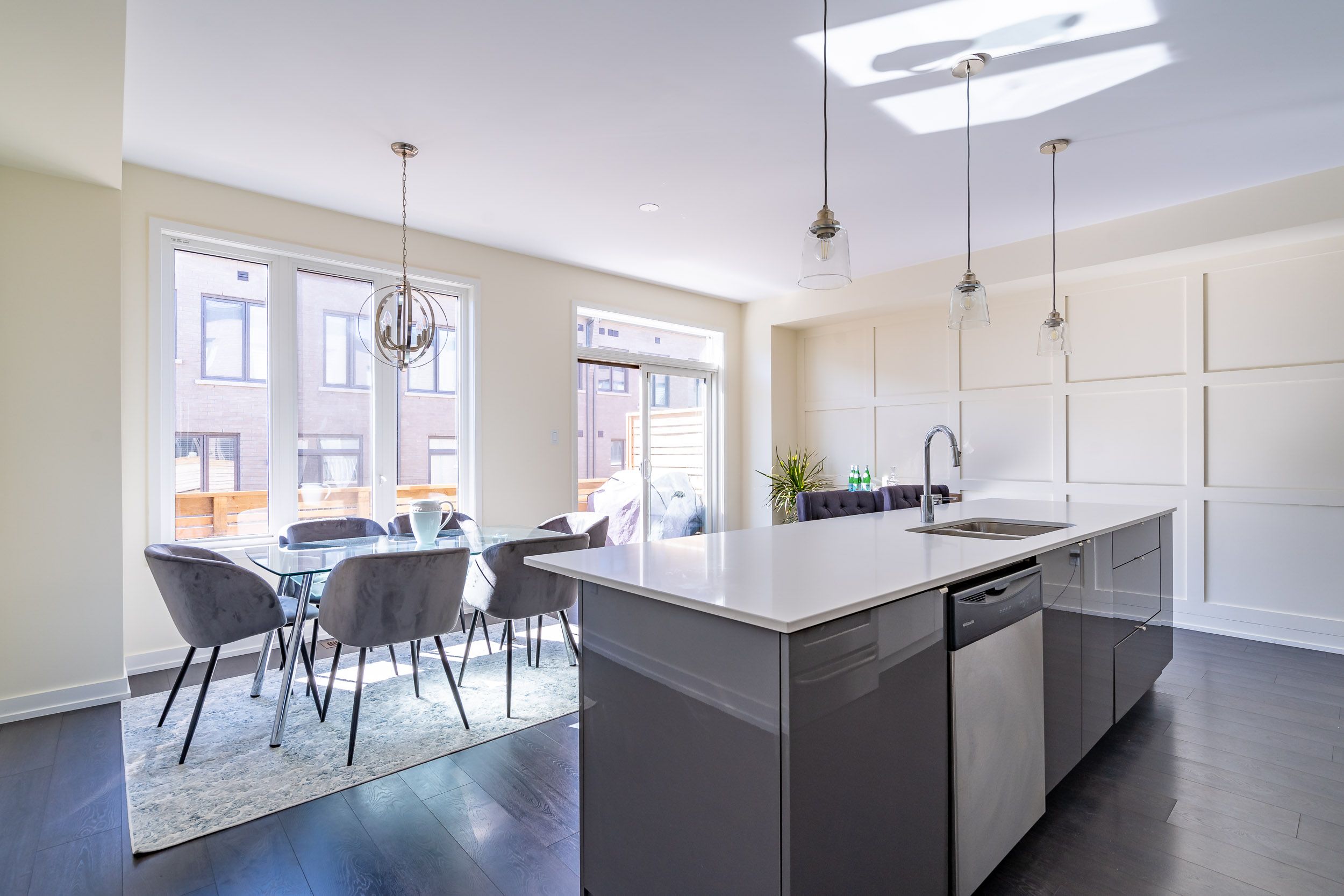 Bright and luxurious 3 bedroom 2+2 bath, 2210 sq. Ft. Townhouse in trafalgar landing! This townhome has been updated throughout; including high-end theatre room with a massive 120inch screen and projector system, worth over 15k (included). Open concept modern kitchen with island. S/s appliances. W/o to deck from the dining room. Wide plank wood laminate flooring throughout. A gorgeous entertainers back yard! (closed currently for winter). Huge windows on both sides. 9foot ceilings throughout. Large master bedroom with beautiful ensuite bathroom & walk-in closet. Upper-level laundry. Walking distance to shopping, restaurants, services & the new trafalgar transit hub. Only a short drive to the oakville go train station.