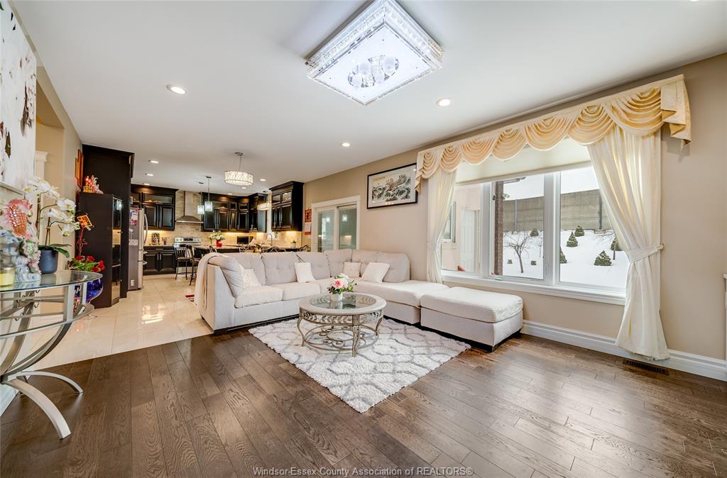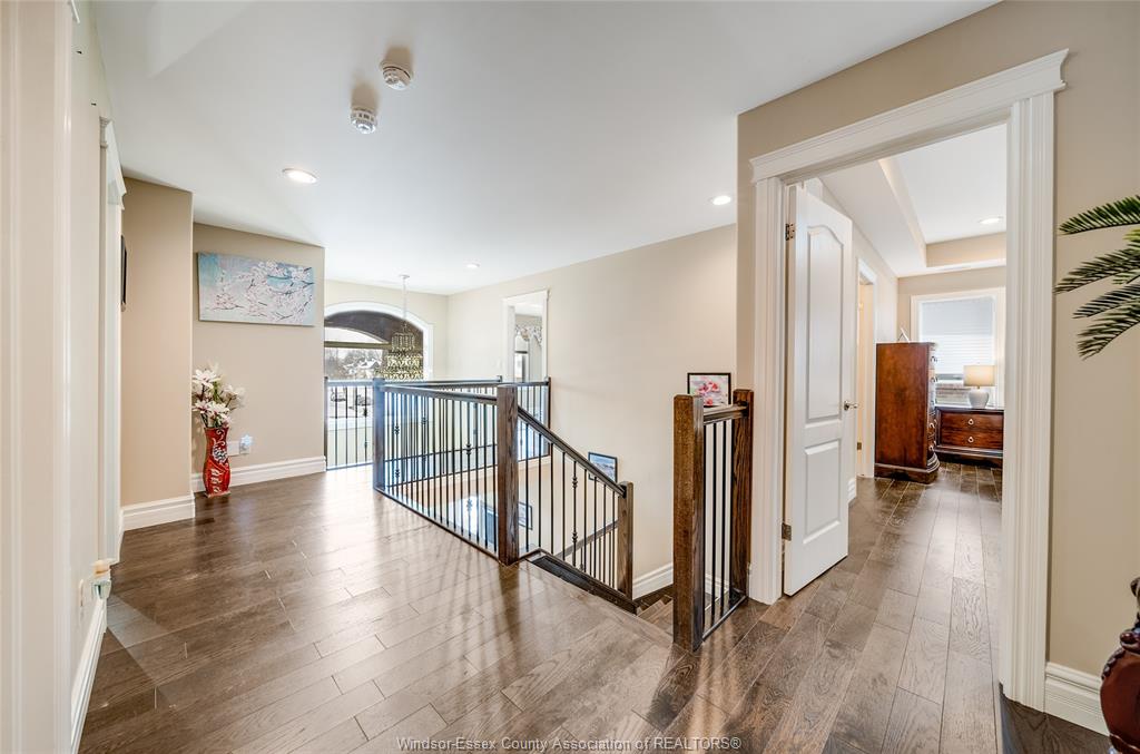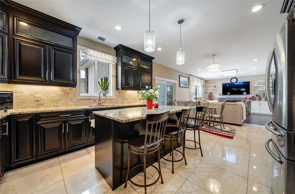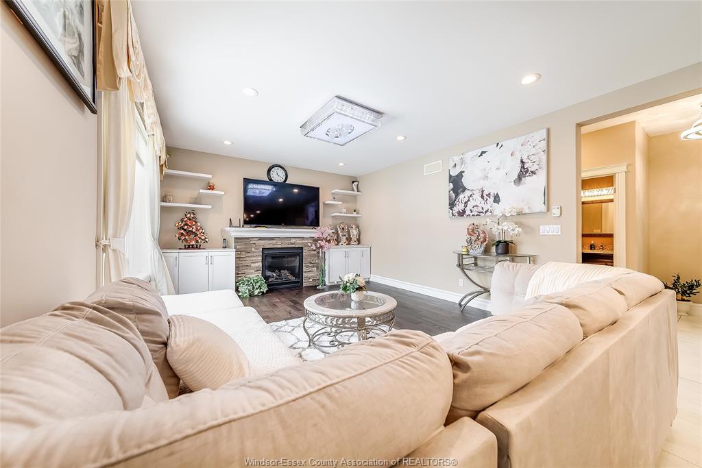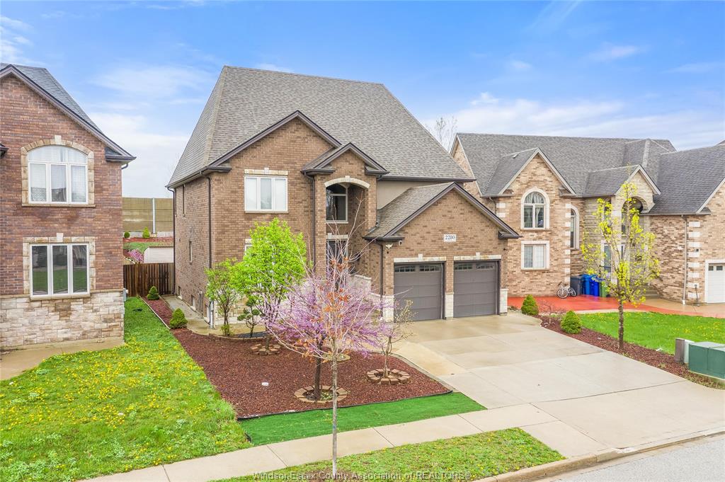 Stunning custom built brick and stone two storey residence set in one of south windsor’s most sought after neighbourhoods, offering approximately 2800 plus square feet of thoughtfully designed above grade living space, not including the finished basement. This exceptional home features six bedrooms, four full bathrooms, and two half bathrooms, including multiple ensuites, with hardwood and tile flooring throughout and no carpet. A grand foyer with soaring ceilings and an elegant oak staircase with wrought iron railings creates an immediate sense of arrival, while the open concept main floor showcases a beautifully appointed kitchen with quartz countertops, rich cabinetry, and an oversized island overlooking a warm family room with a stone accent fireplace. A rare main floor bedroom with walk in closet and ensuite bath, along with main floor laundry, offers outstanding flexibility. Upstairs, the luxurious primary suite is highlighted by a spa inspired ensuite featuring a jet tub, glass shower, and double sinks, complemented by generously sized bedrooms and bathrooms. An extra deep backyard with a concrete patio, finished double garage, and double driveway complete this exceptional south windsor offering.