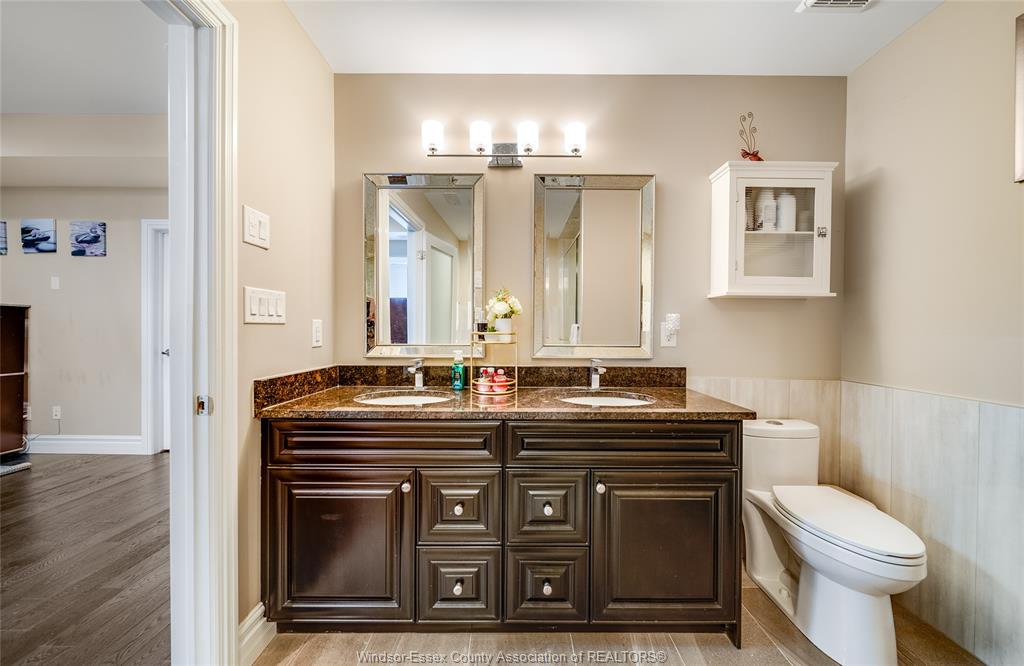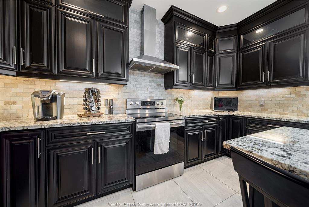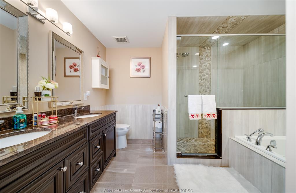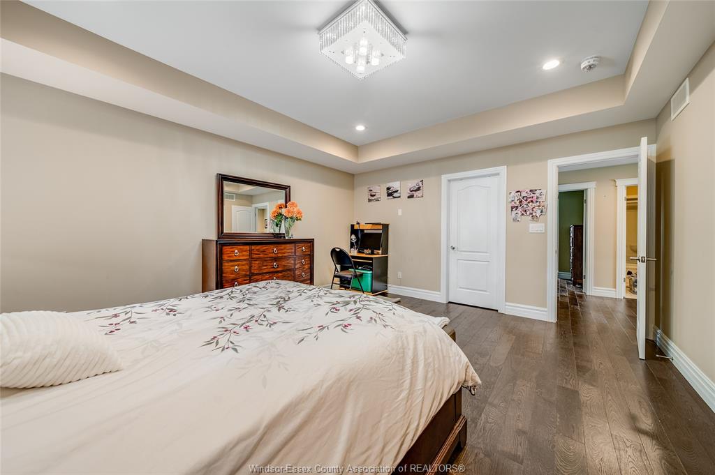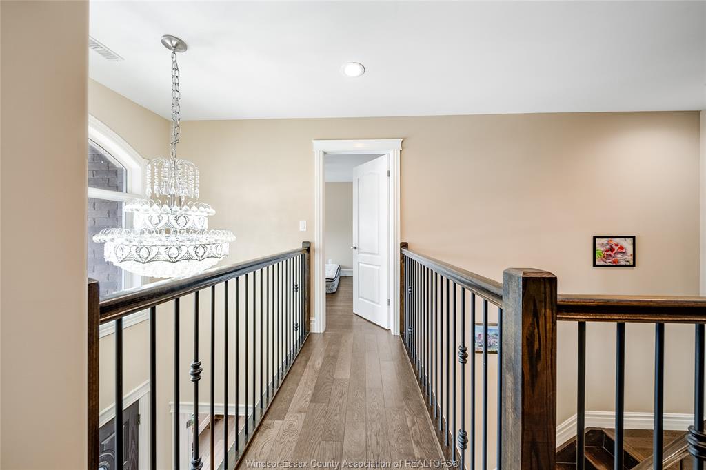 Stunning custom built brick and stone two storey residence set in one of south windsor’s most sought after neighbourhoods, offering approximately 2800 plus square feet of thoughtfully designed above grade living space, not including the finished basement. This exceptional home features six bedrooms, four full bathrooms, and two half bathrooms, including multiple ensuites, with hardwood and tile flooring throughout and no carpet. A grand foyer with soaring ceilings and an elegant oak staircase with wrought iron railings creates an immediate sense of arrival, while the open concept main floor showcases a beautifully appointed kitchen with quartz countertops, rich cabinetry, and an oversized island overlooking a warm family room with a stone accent fireplace. A rare main floor bedroom with walk in closet and ensuite bath, along with main floor laundry, offers outstanding flexibility. Upstairs, the luxurious primary suite is highlighted by a spa inspired ensuite featuring a jet tub, glass shower, and double sinks, complemented by generously sized bedrooms and bathrooms. An extra deep backyard with a concrete patio, finished double garage, and double driveway complete this exceptional south windsor offering.