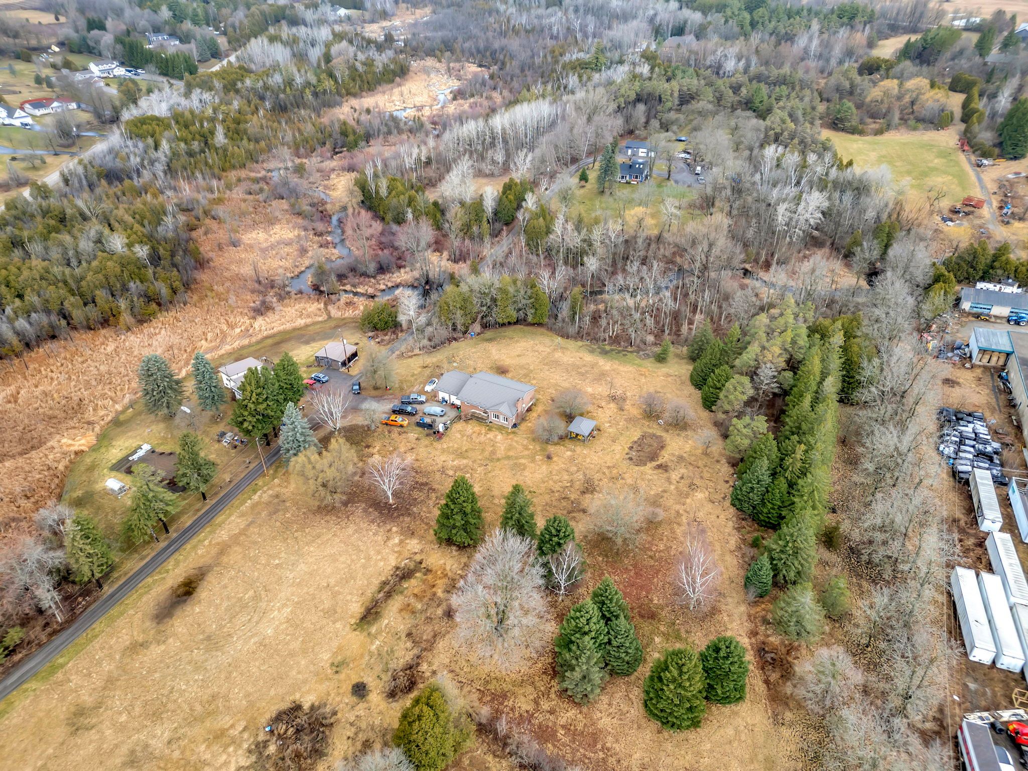 This charming backsplit sits on a spacious 3. 13-acre lot with two driveways and easy access to hwy 401, ideal for commuters or anyone wanting a bit more space without losing convenience. The home features 3 bedrooms and 3 bathrooms, offering plenty of room for families or guests. The main living area has a vaulted ceiling with exposed wood beams and a wood-burning fireplace, giving it a warm and welcoming feel. The lower level has large windows that let in tons of natural light, plus a walkout to the backyard with beautiful forest views. Its a great space for a rec room, home office, or extra living area. The attached garage is oversized with 9-foot doors and inside entry, perfect for storing your vehicles, tools, or outdoor gear. Outside, youll find a gazebo for enjoying summer days. If you're looking for a home with privacy, space, and easy highway access, this home is for you.