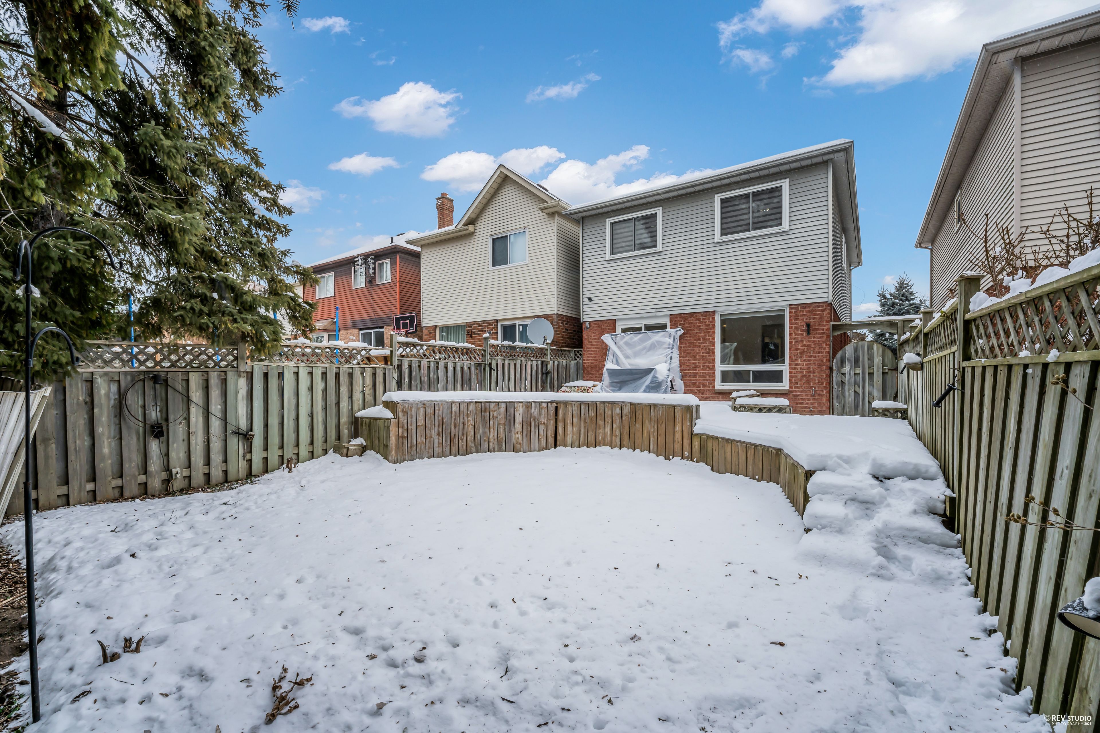 Beautifully upgraded detached 2-storey home in desirable brock ridge, offering new flooring, pot lights, california shutters, brand-new appliances, new kitchen counters, a new roof, and a new garage door. This well-maintained property features 3 spacious bedrooms, 3 bathrooms, a bright modern kitchen, hardwood in the dining room, and ceramic flooring in the foyer, kitchen, and baths. An additional family room provides flexible space ideal for a home office, library, or quiet work area. The partially finished basement is drywalled, painted, and pre-wired, ready for your finishing touches. Situated on a mature, landscaped lot with a large custom deck and located close to parks, schools, transit, shopping, and near a mosque, this home offers exceptional convenience and comfort in a sought-after community. Hurry-this move-in-ready home with extensive upgrades won't last long! Detached link home a pleasure to view. Ample parking and backyard.