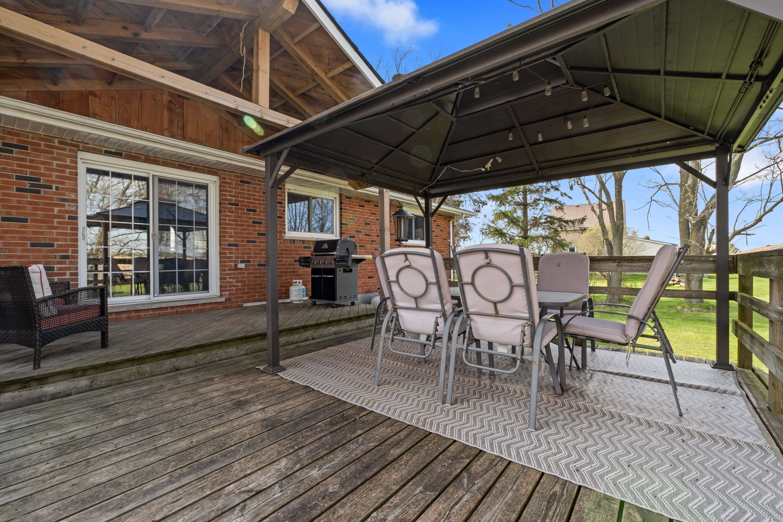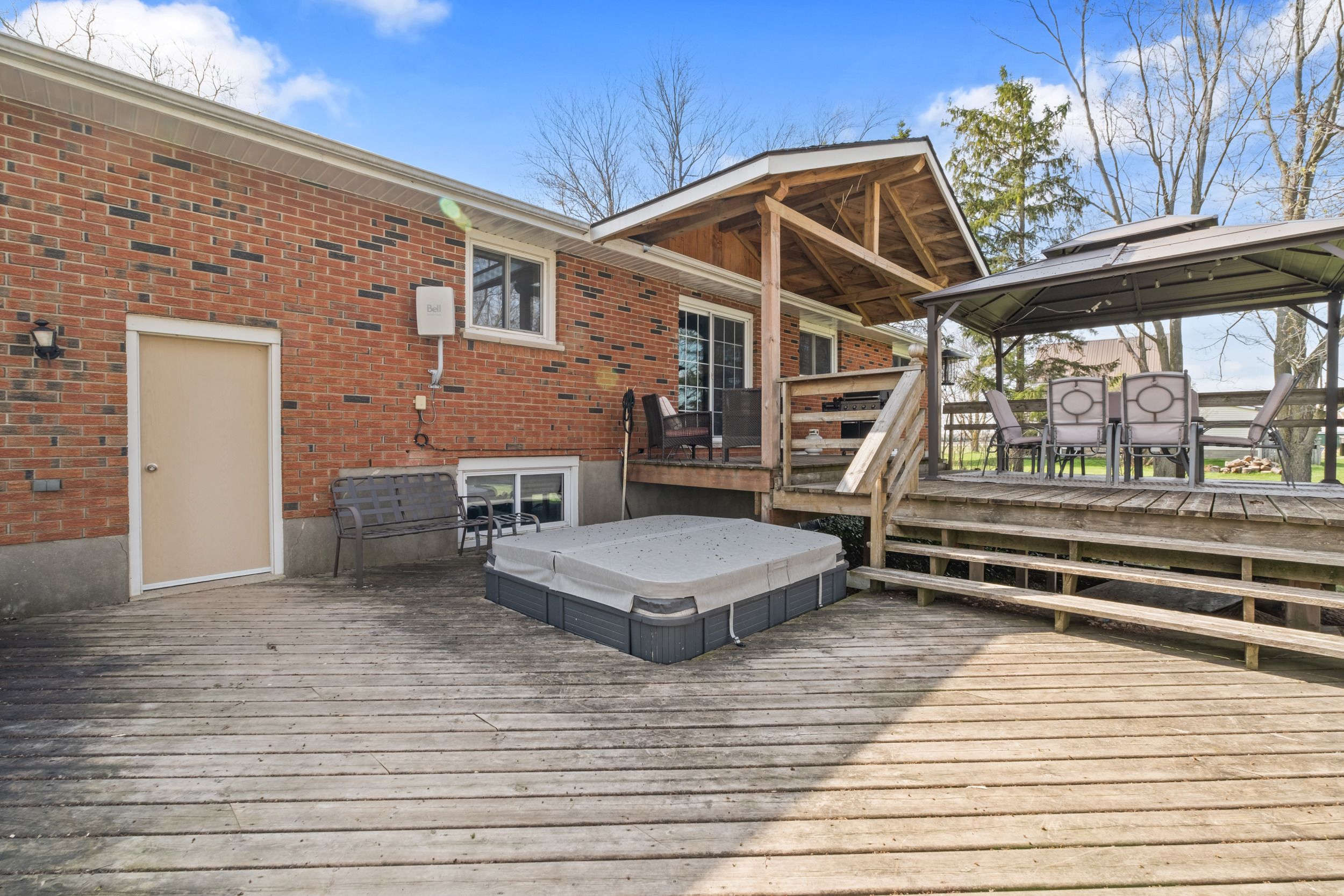• Backyard retreat with oversized deck, hot tub, and gazebo for entertaining.