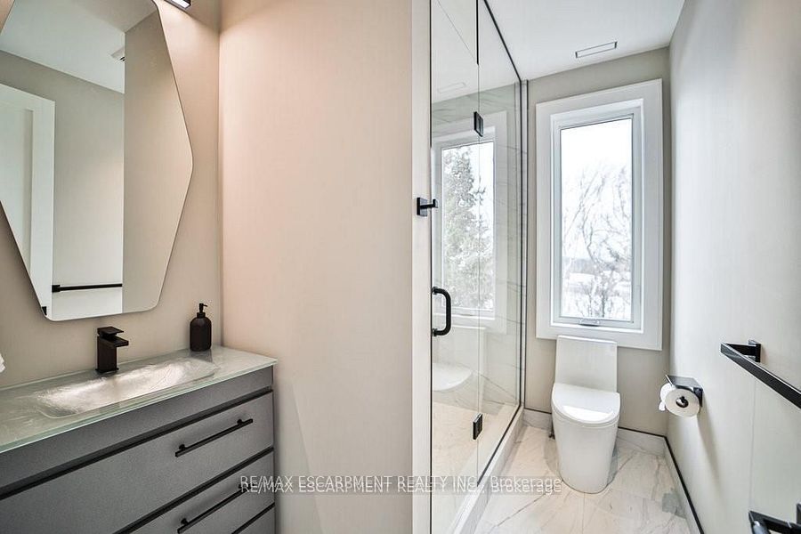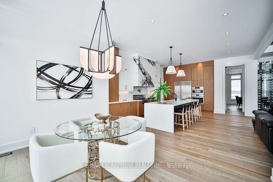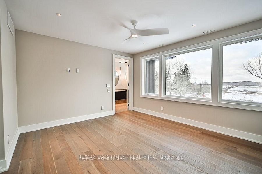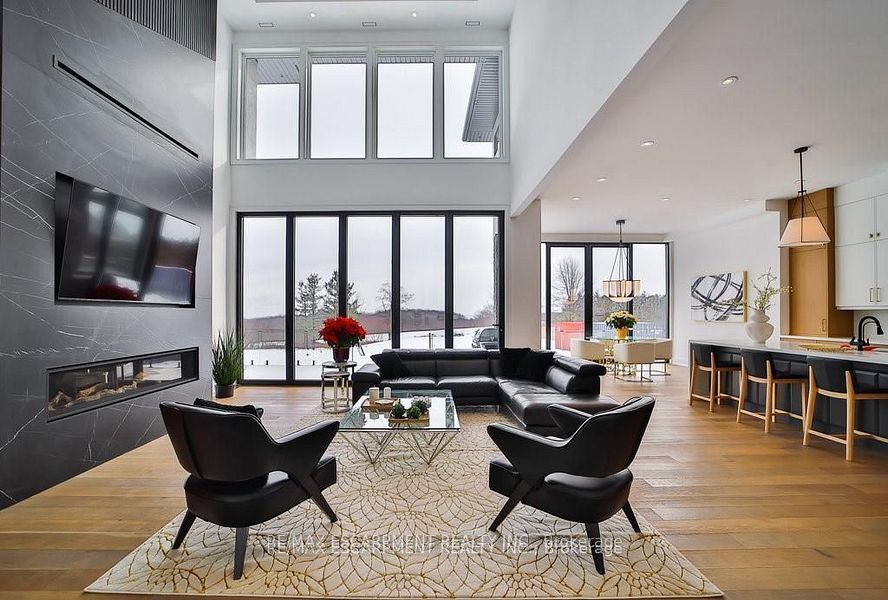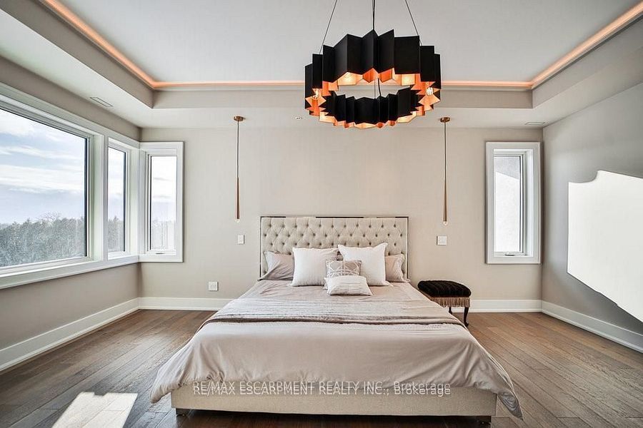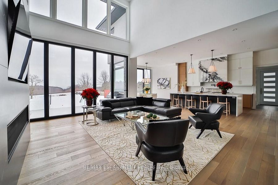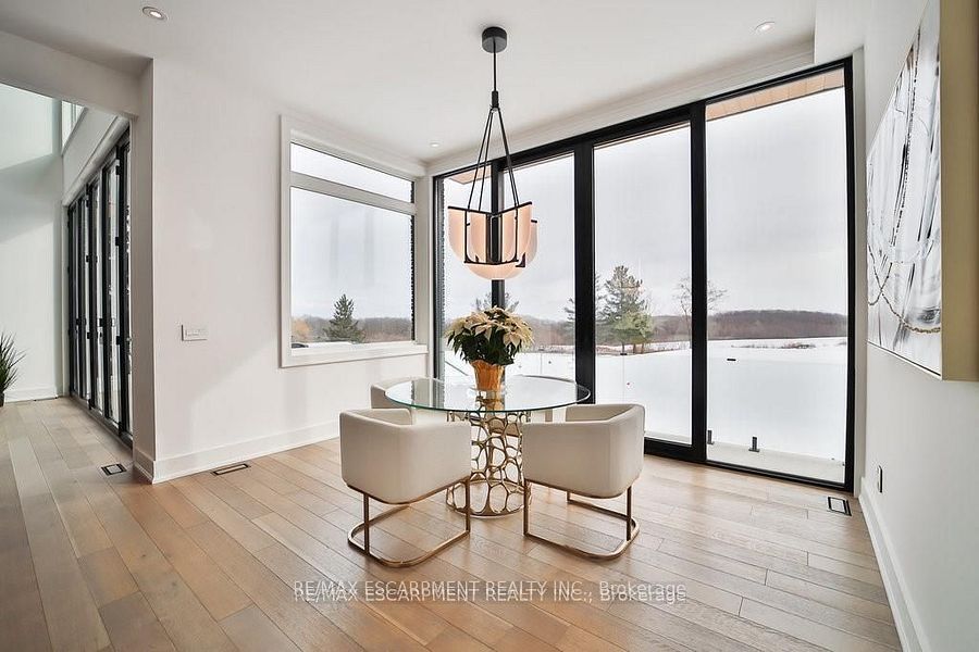 Incredible one year old modern home. 4650 sq ft of above grade living space, with 1700 sg ft finished walk up basement. Enjoy the beautiful views of the escarpment and lake ontario, backing on to the bruce trail and farm land. Five bedrooms all with ensuites, a nanny suite with separate entrance. Three extra powder rooms (total. 8 bathrooms, 5 bedrooms) for convenience. Take in beautiful sunrises from the east and watch breathtaking sunsets in the west. From this one acre lot. This home has been designed with ease of living, allowing 22 parking spots on this one acre lot. The back yard has plenty of space to design your own oasis. Convenient country living on burlington's prestigious #1 sideroad, only minutes away from all amenities. Luxury certified.