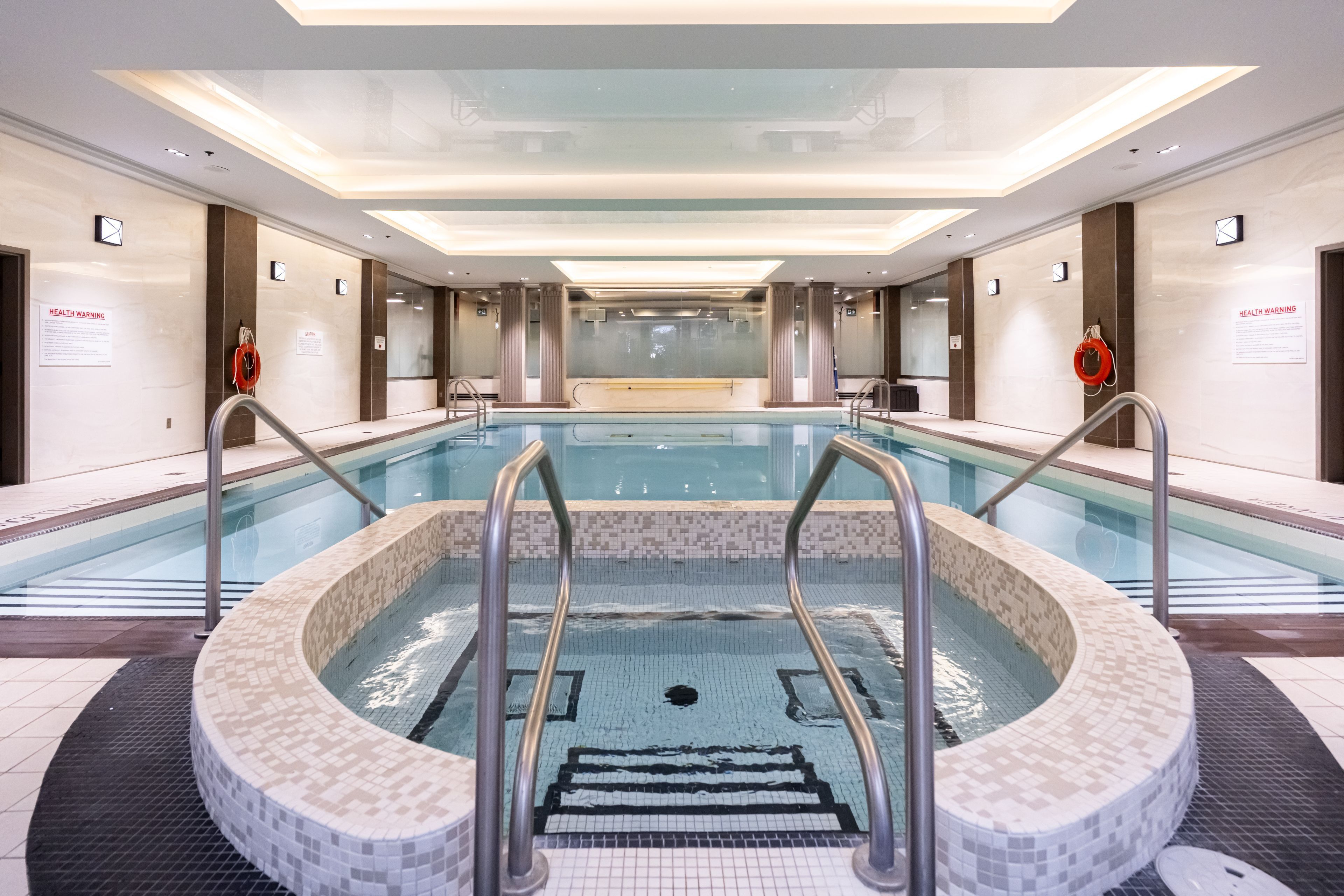 • Resort-style amenities include a saltwater pool, fitness centre, and 24-hour concierge.