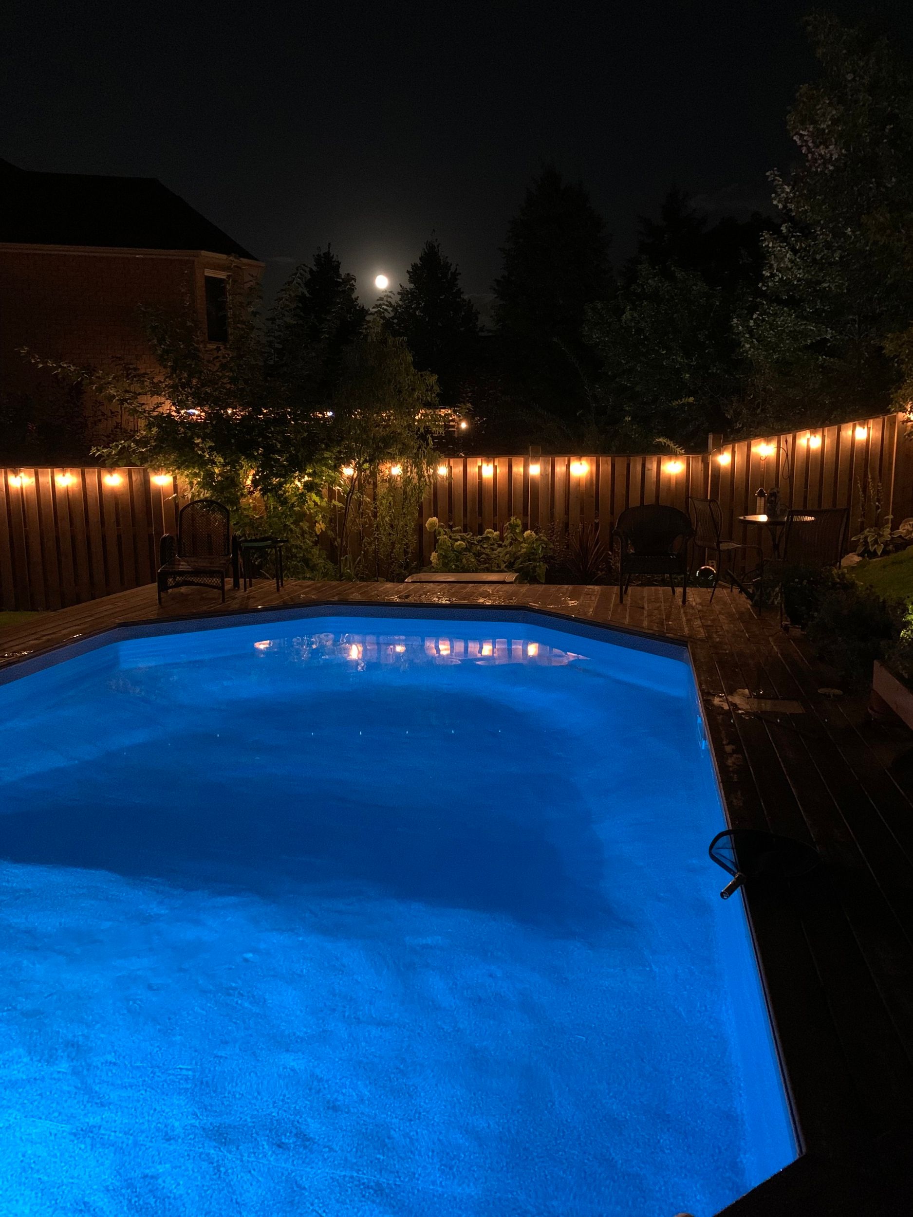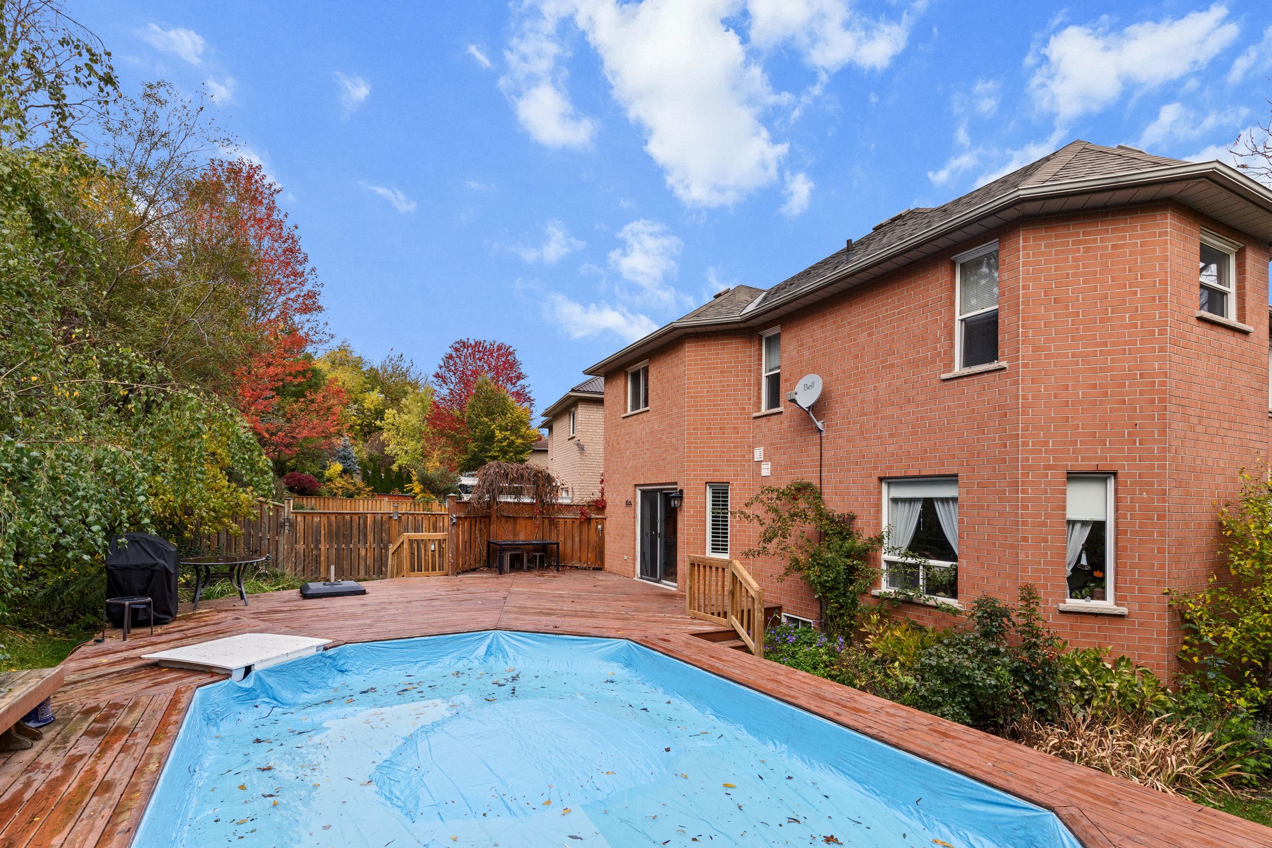 • Private backyard oasis with an in-ground pool and towering trees.