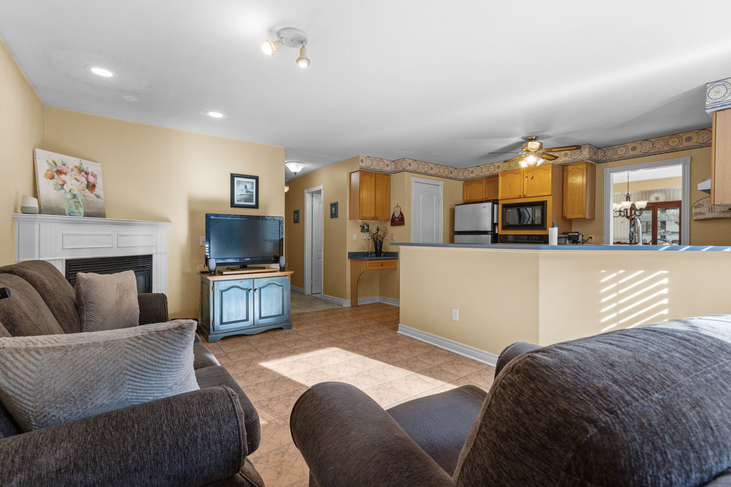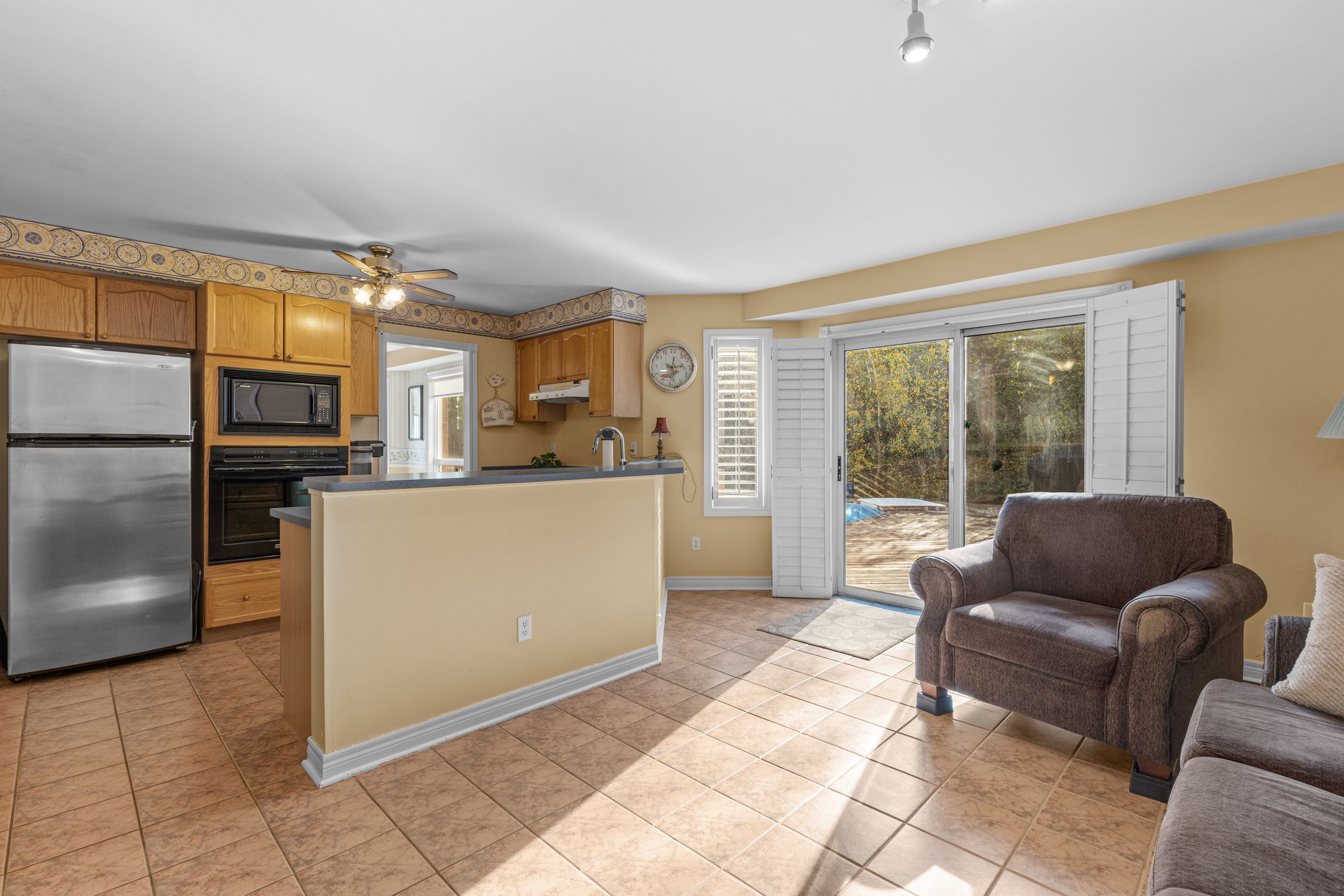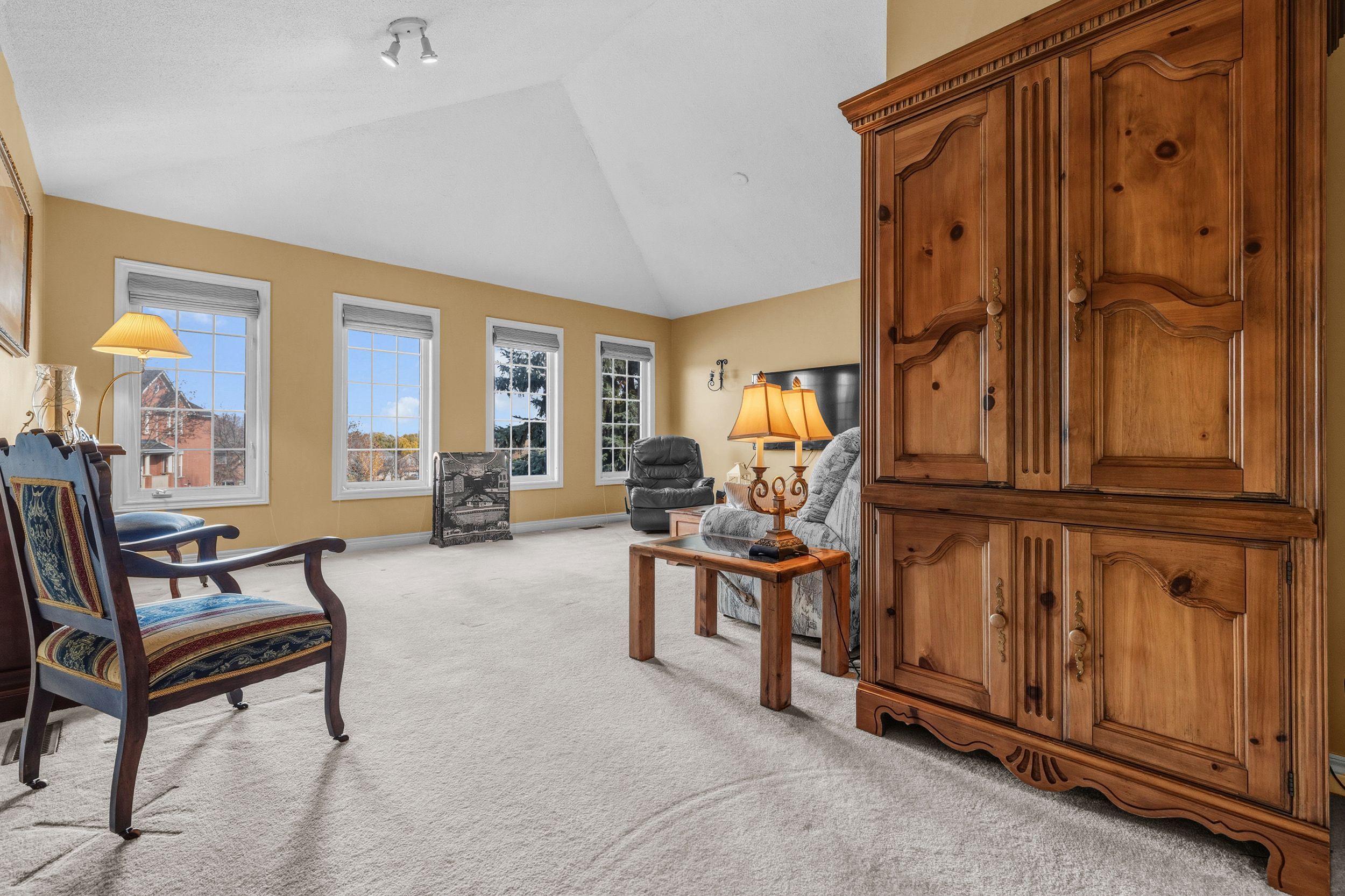 • Bright family room with cathedral ceilings and oversized windows for natural light.