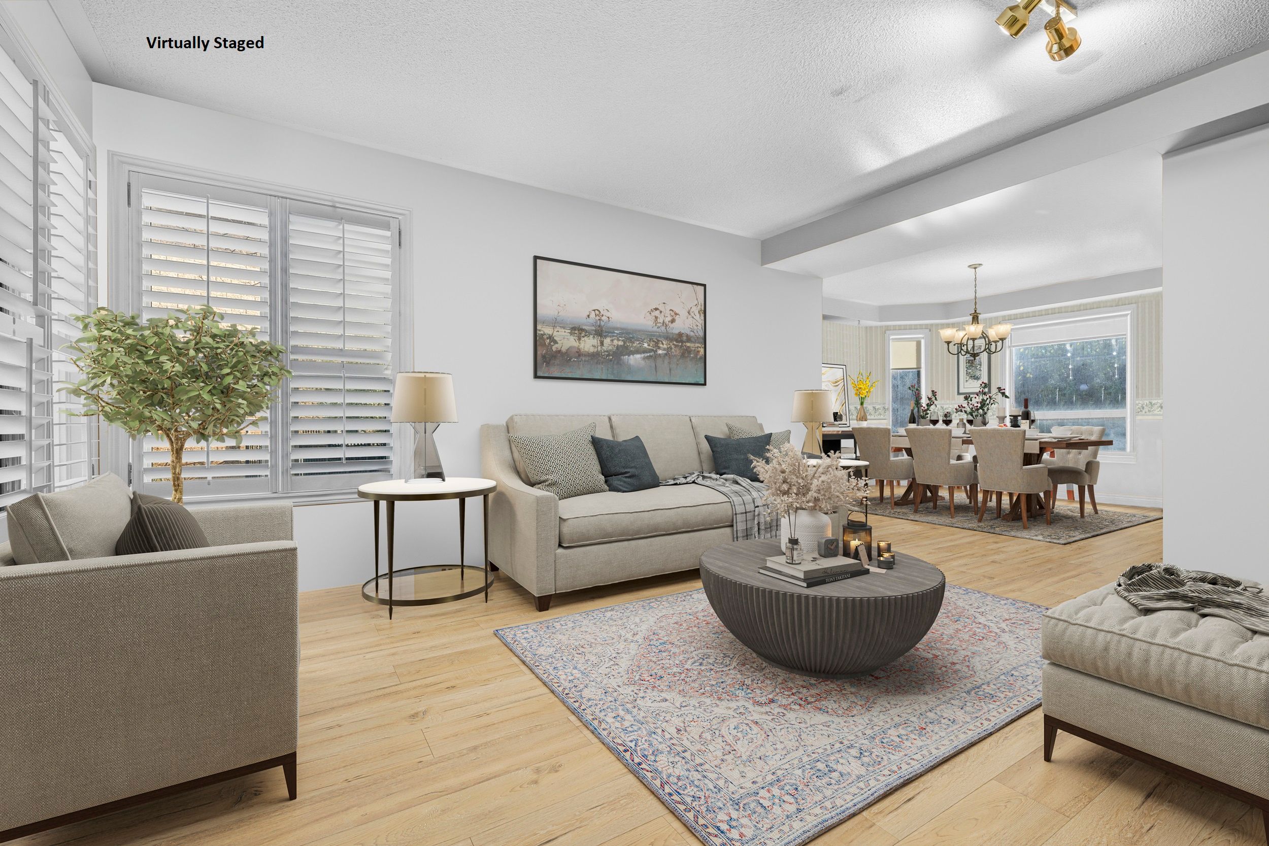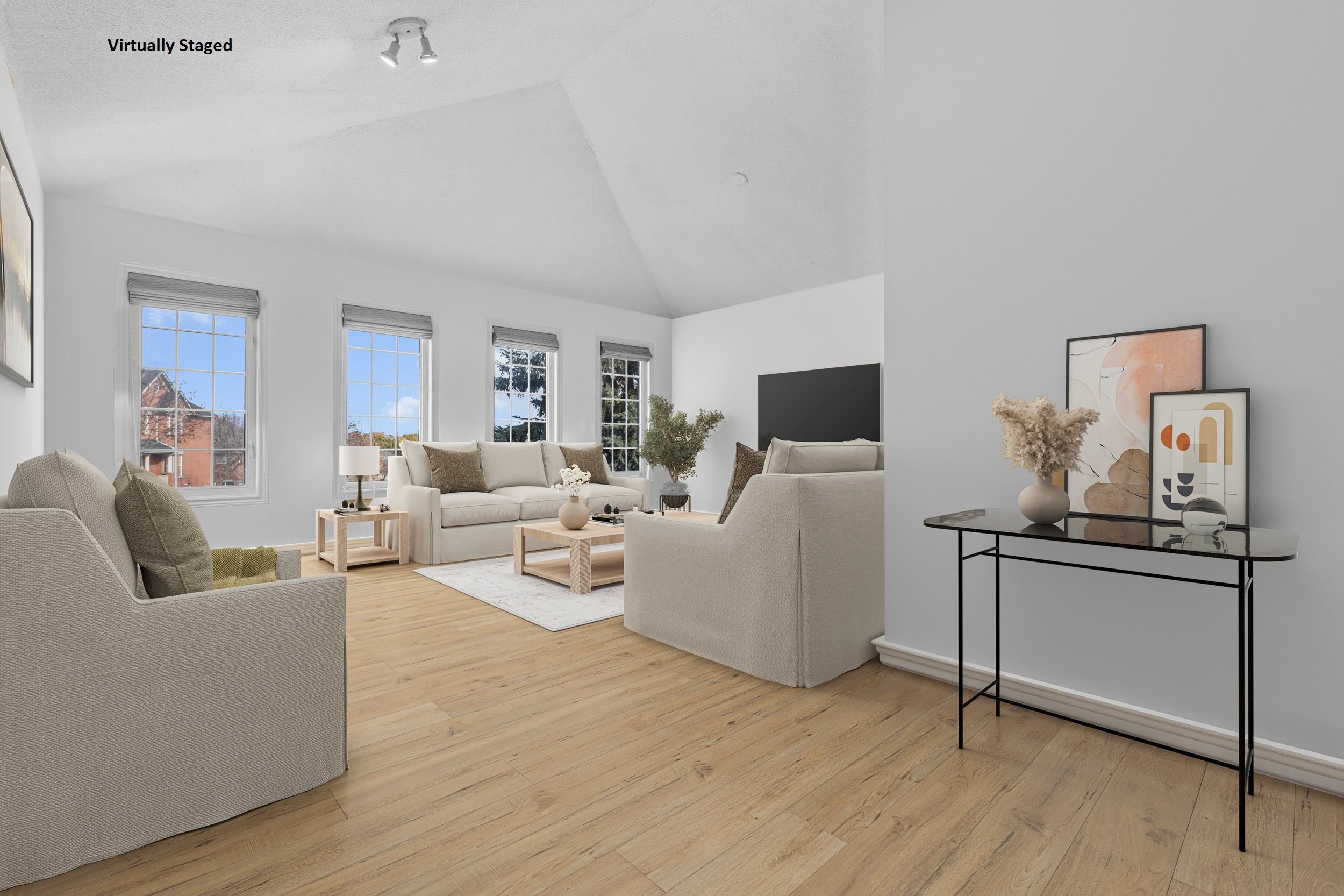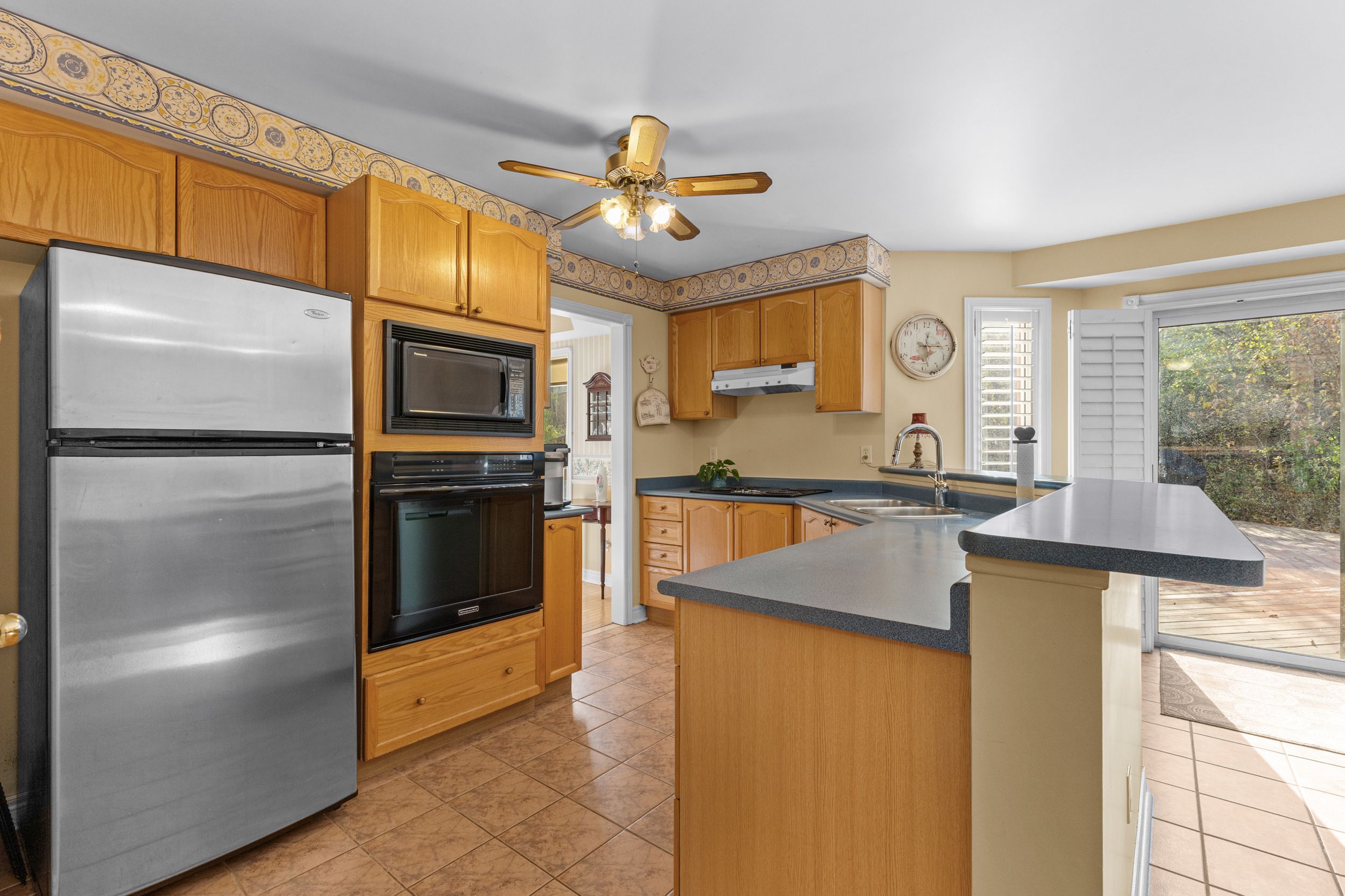 • Bright family room with cathedral ceilings and oversized windows for natural light.
