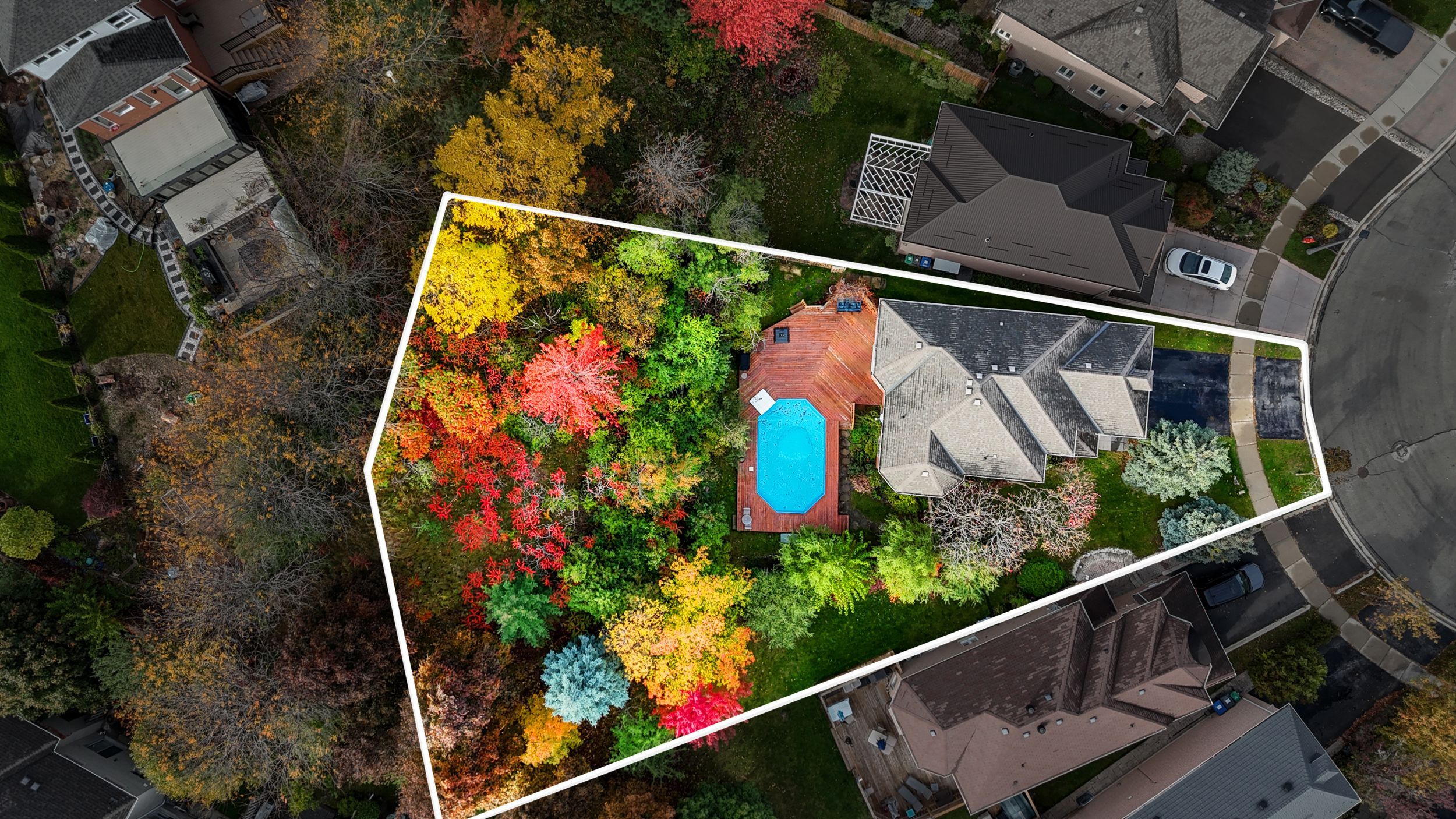 • Private backyard oasis featuring an in-ground pool and mature trees.