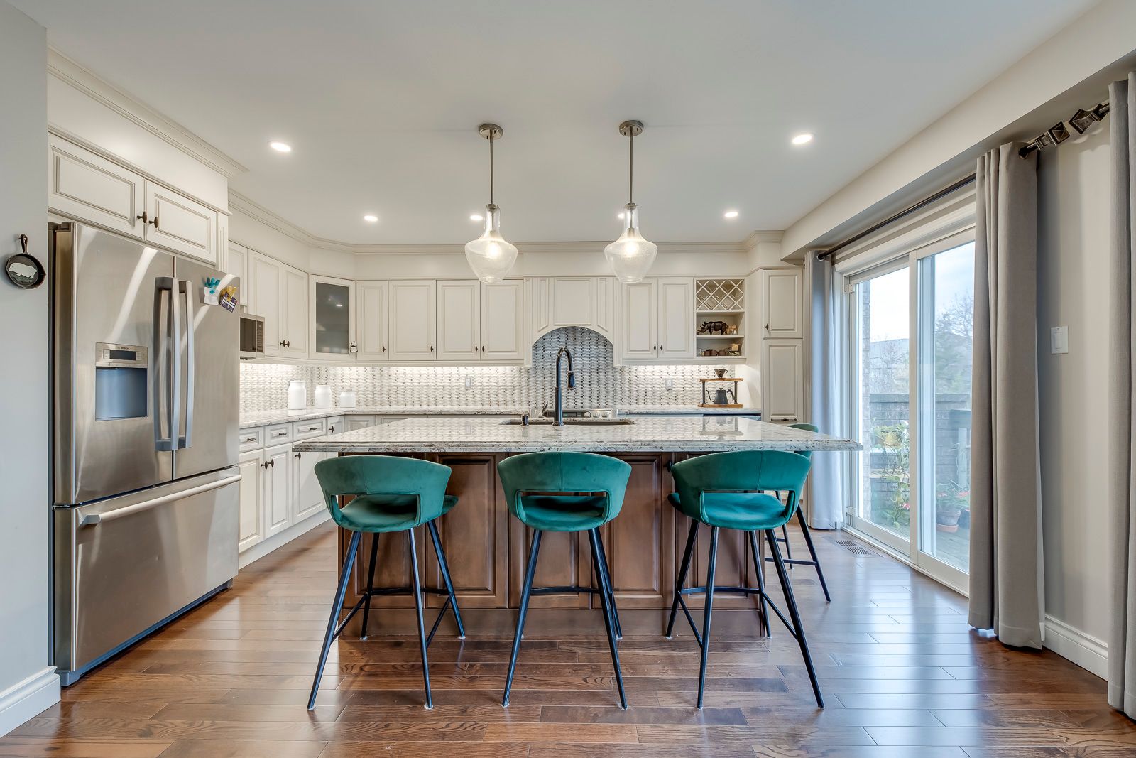• Gourmet kitchen with granite countertops and premium Bosch appliances.