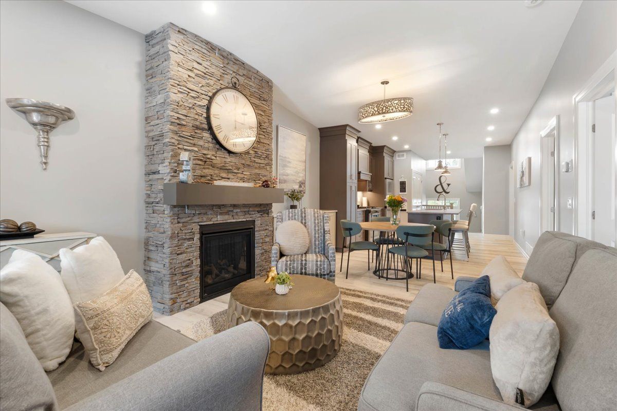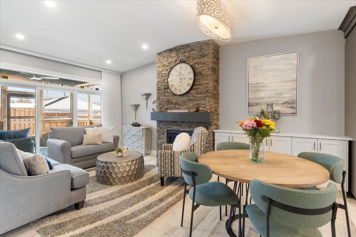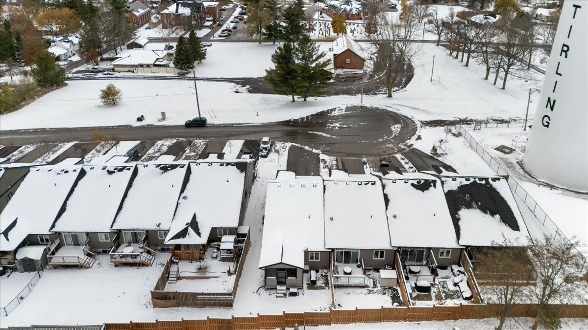 Modern comfort meets country calm in stirling. Welcome to this stunning end-unit townhome-a rare find tucked into a quiet cul-de-sac surrounded by nature and beautiful views of the oak hills. Thoughtfully upgraded and meticulously maintained, this home blends modern convenience with peaceful, easy living just minutes from all belleville and quinte west amenities while taking in the small town charm and history in stirling. You will notice the impressive curb appeal, with a paved driveway offering parking for four vehicles and inside entry to a fully finished garage-complete with its own water spout for easy cleaning. Step inside to a spacious foyer and an open-concept main floor with warm finishes and natural light throughout. The designer kitchen features ceiling-height cabinetry, a central island, and a built-in buffet. Enjoy extended space for entertaining during holiday meals that flows seamlessly into the dining area-perfect for gatherings. The living room features a vaulted ceiling, a cozy gas fireplace with stone surround, and large patio doors leading to a screened-in sunroom where you can unwind and take in the panoramic views. The primary bedroom offers a spa-inspired semi-ensuite with heated floors, a deep soaker tub, and a tiled glass shower. A separate den or guest room sits conveniently beside the main bath-ideal for a home office. Downstairs, the fully finished lower level offers a spacious rec room, a second built-in buffet perfect for a coffee or cocktail bar, a large guest bedroom with walk-in closet, and a full 3-pc bath. Extra features include a kohler generator, tankless water heater (owned), gas bbq hookup, levolor blinds water softener and backup hydro to the garage door-plus a partially fenced yard for added privacy. Move-in ready and filled with thoughtful upgrades, this home offers the best of low-maintenance living in a quiet, sought-after stirling neighbourhood.