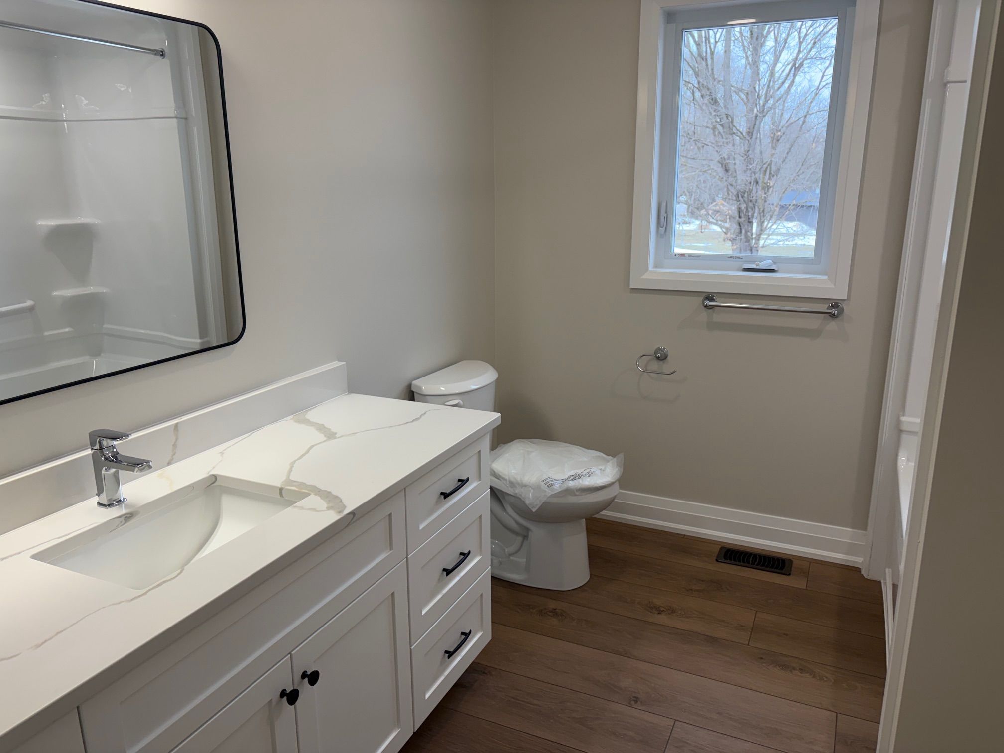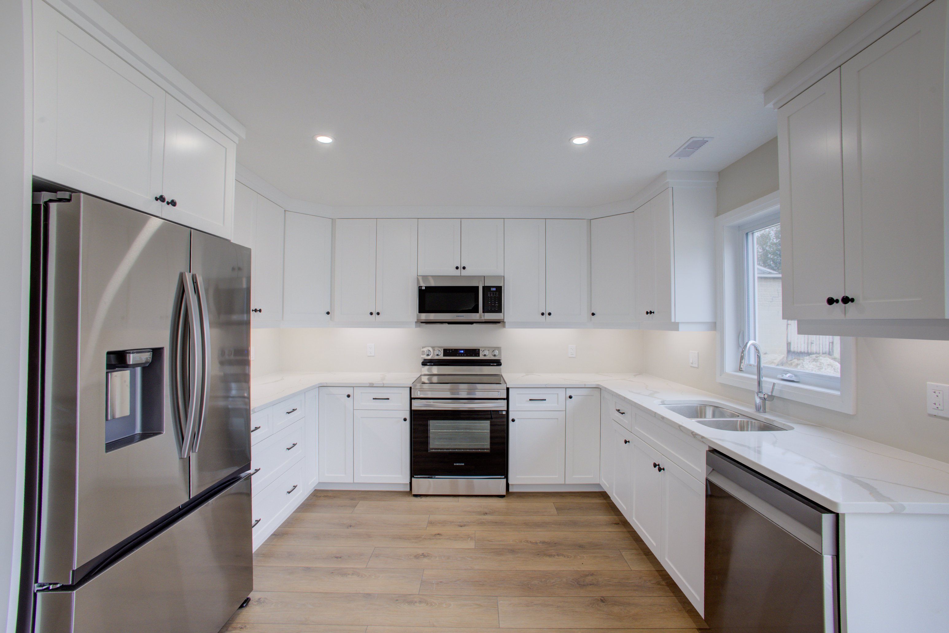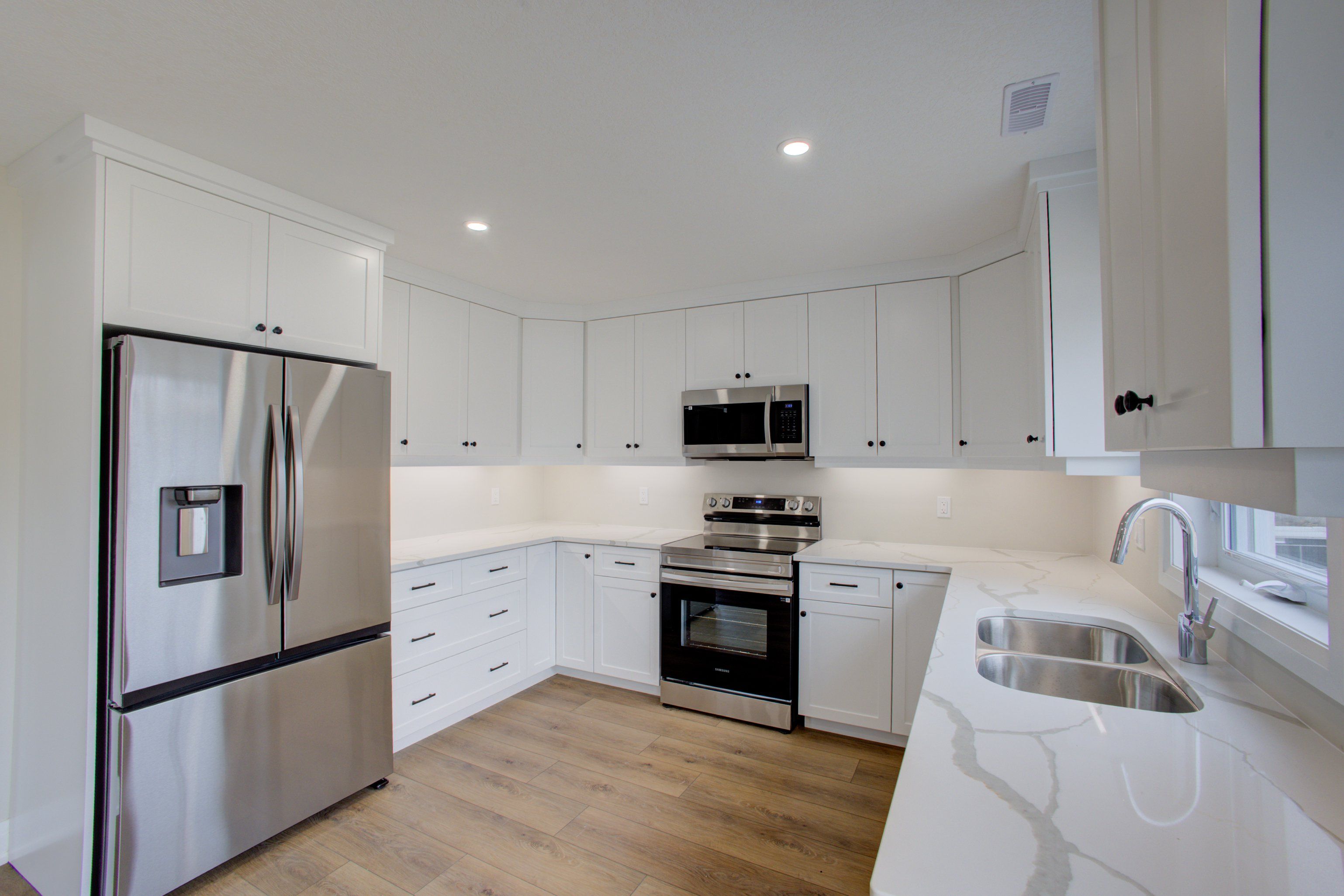 • Modern finishes include luxury vinyl plank floors and quartz countertops.