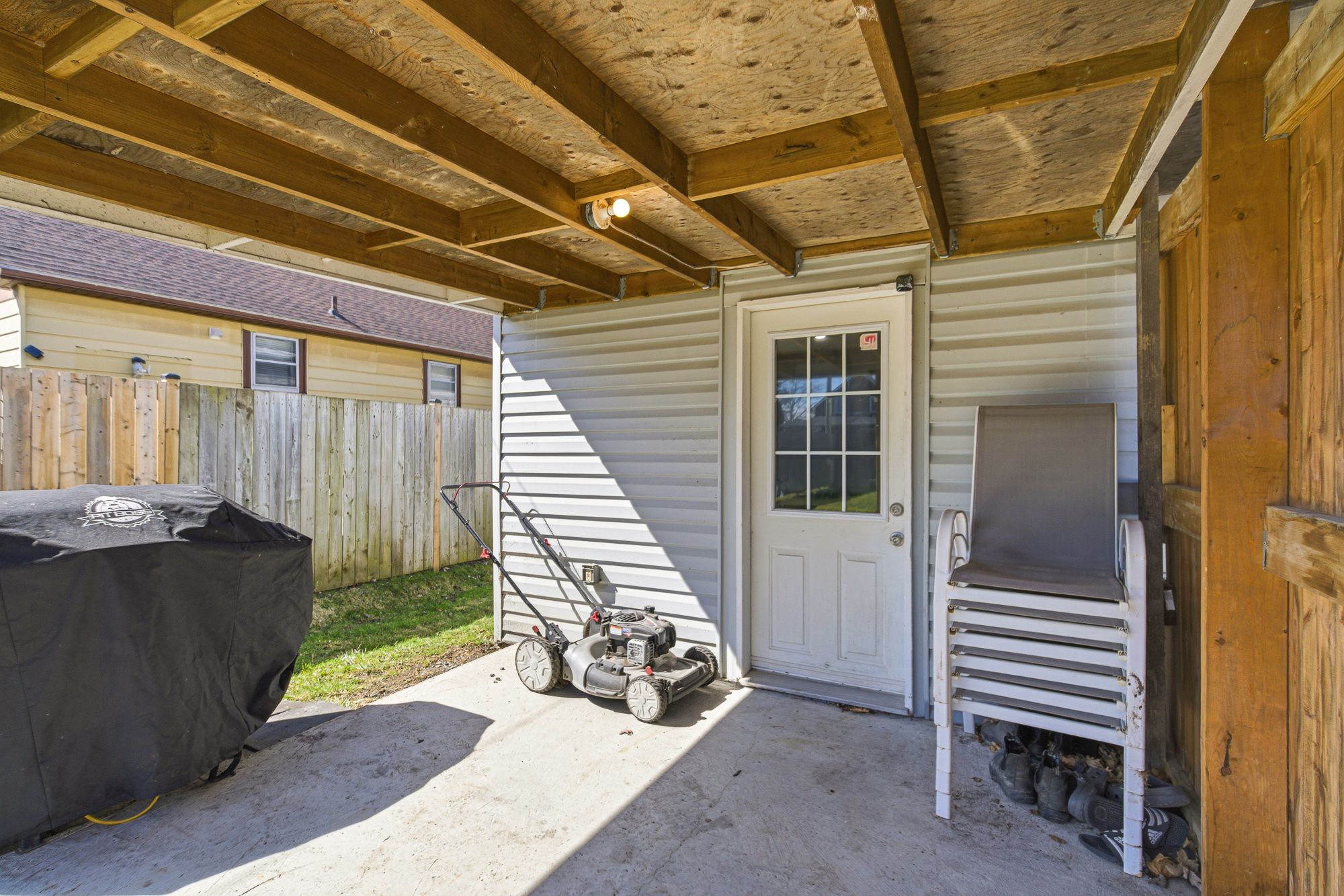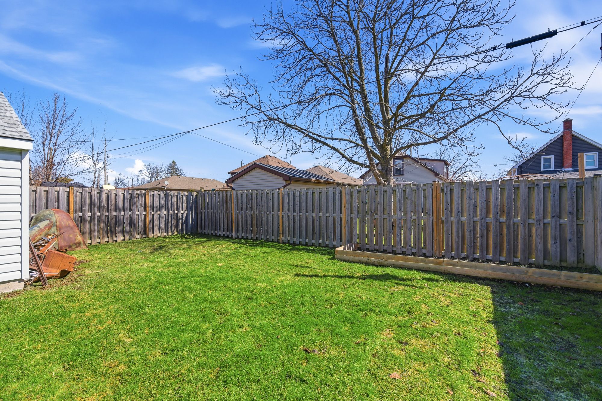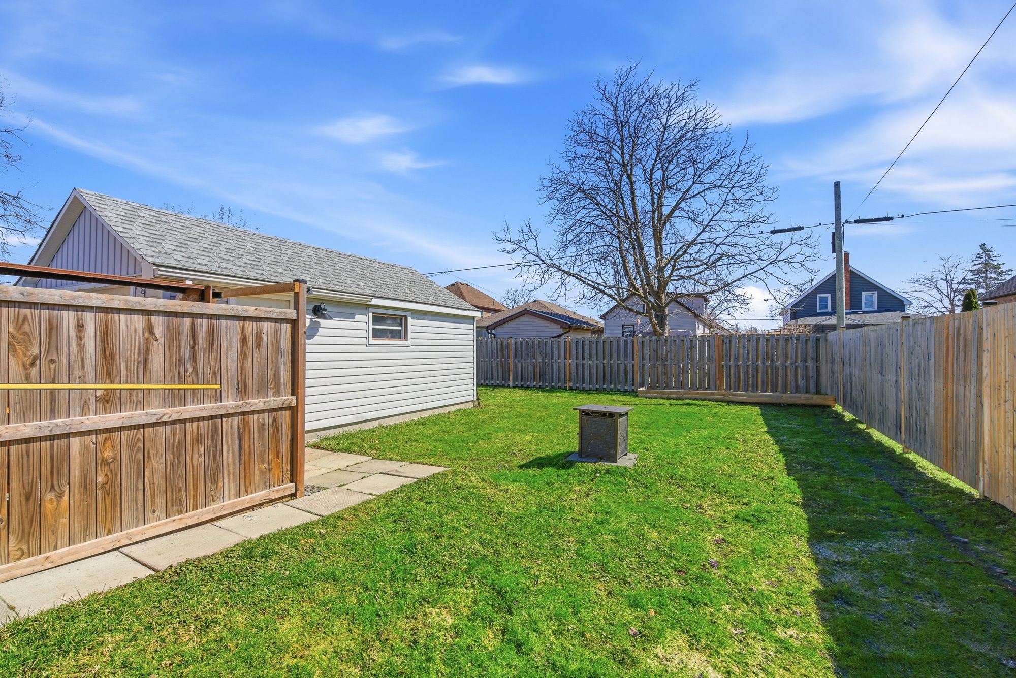• Fully fenced backyard with a spacious detached garage for storage.
