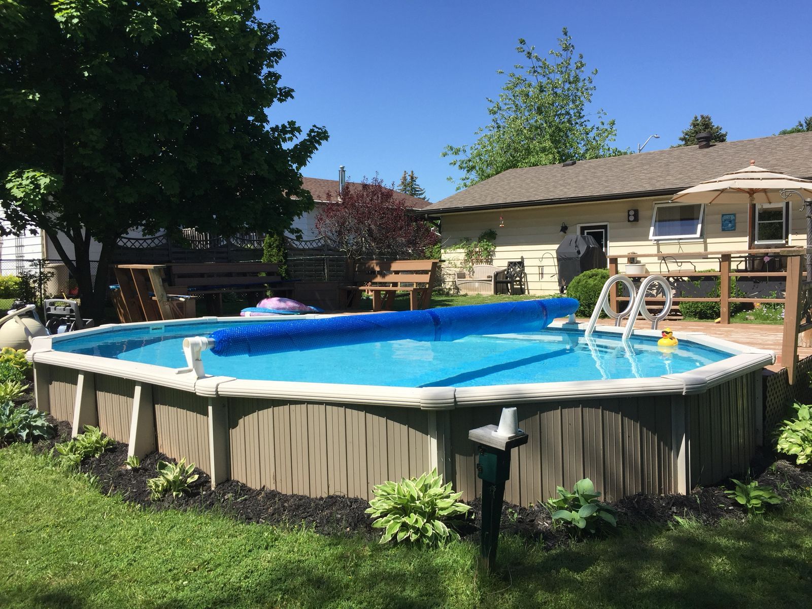 Move-in ready side split in a quiet, well-established south barrie neighbourhood with a pool & hot tub! Some streets feel different the moment you turn onto them, and deborah way is one of those spots where neighbours still wave hello from their driveways and life moves at an easier pace in this established south barrie neighbourhood. From here, a quick walk reaches cudia park and playground plus a nearby bus stop, and a 15 min stroll brings you to the amenities at yonge st/big bay point rd for zehrs, the lcbo, banks, dollarama, a pet shop, restaurants, the beer store, and more. A quick drive puts barrie south go station about 5 mins away, with park place, costco, walmart, hwy 400 access, a wide range of dining options, and downtown barrie's waterfront roughly 10 mins from home. This 4-level side split offers a practical layout with over 1,100 sq ft above grade plus finished lower levels. The kitchen presents newer quartz countertops (2023), wood cabinets, an updated double sink (2023), a tile backsplash, and updated stainless steel appliances (2023) that make both weeknight meals and weekend baking feel easy. Three bedrooms sit together alongside a 4-piece bath, while a few steps down, the rec room is anchored by a wood-burning fireplace that instantly changes the mood on cold nights, while the adjacent office gives you a quiet place to work or study. The basement adds a den and a full bath, ideal for guests, an older child seeking extra privacy. Updated siding (2025) and a freshly repaved driveway (2023) with parking for 6 vehicles lead to the 2-car garage, creating an excellent first impression. Summers are spoken for in the private backyard, where an on-ground pool pairs with a hot tub (2023), and a deck, with a storage shed keeping toys and tools neatly tucked away. With an updated electrical panel (2018) and copper wire pig-tailing completed to code, this #hometostay lets the next owners step straight into the lifestyle without a long list of projects waiting.