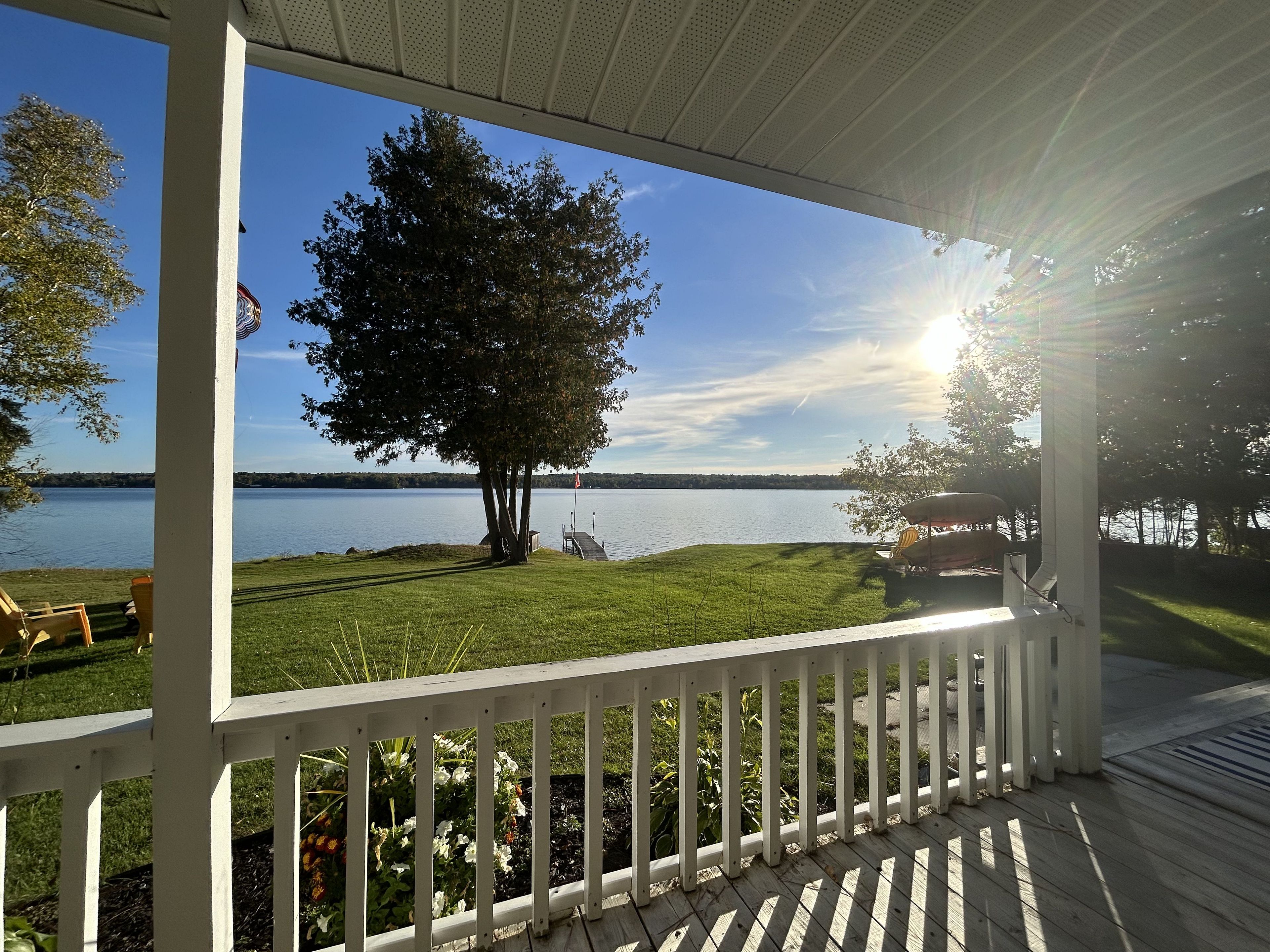 • Enjoy mornings by the lake with a beautiful porch view.