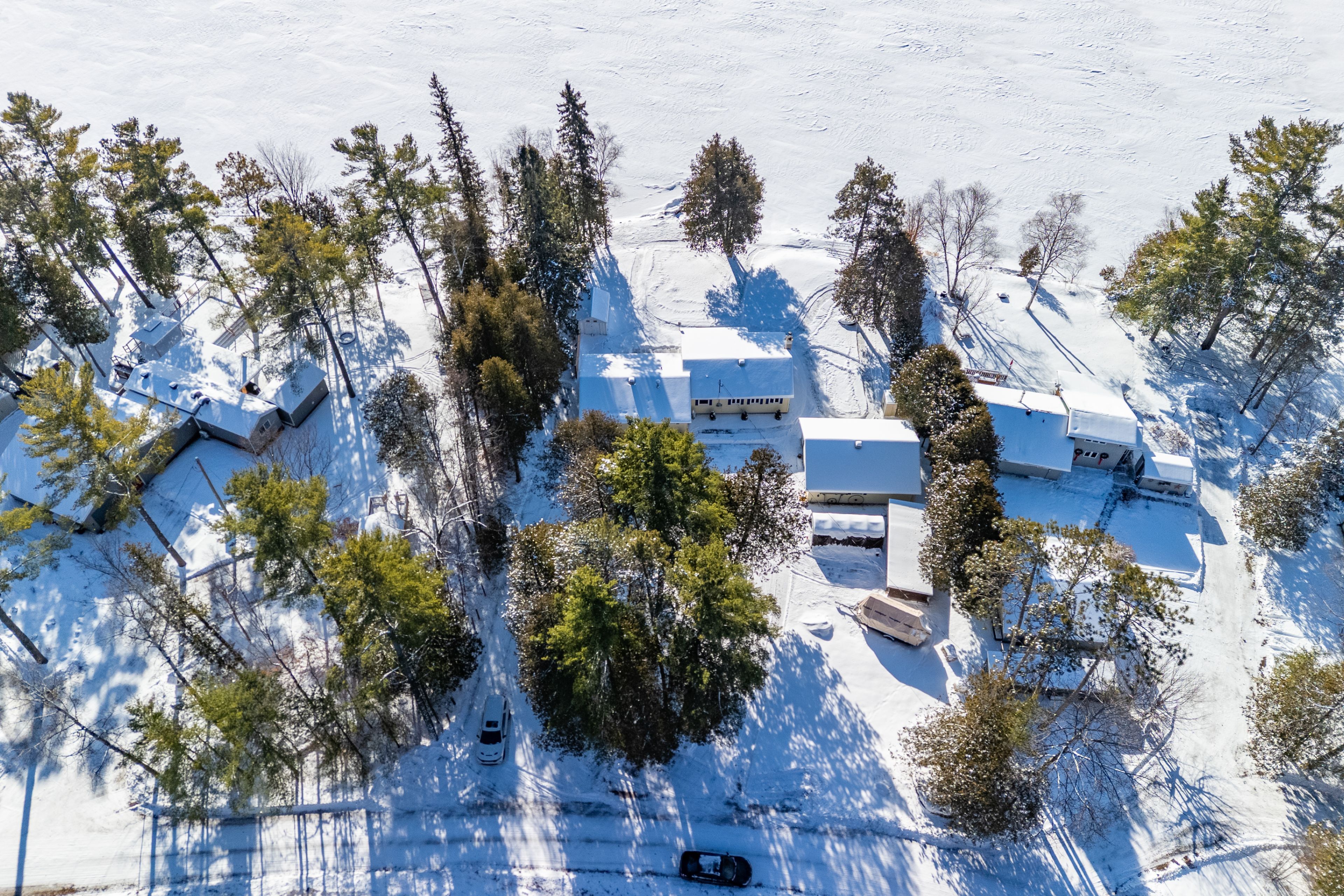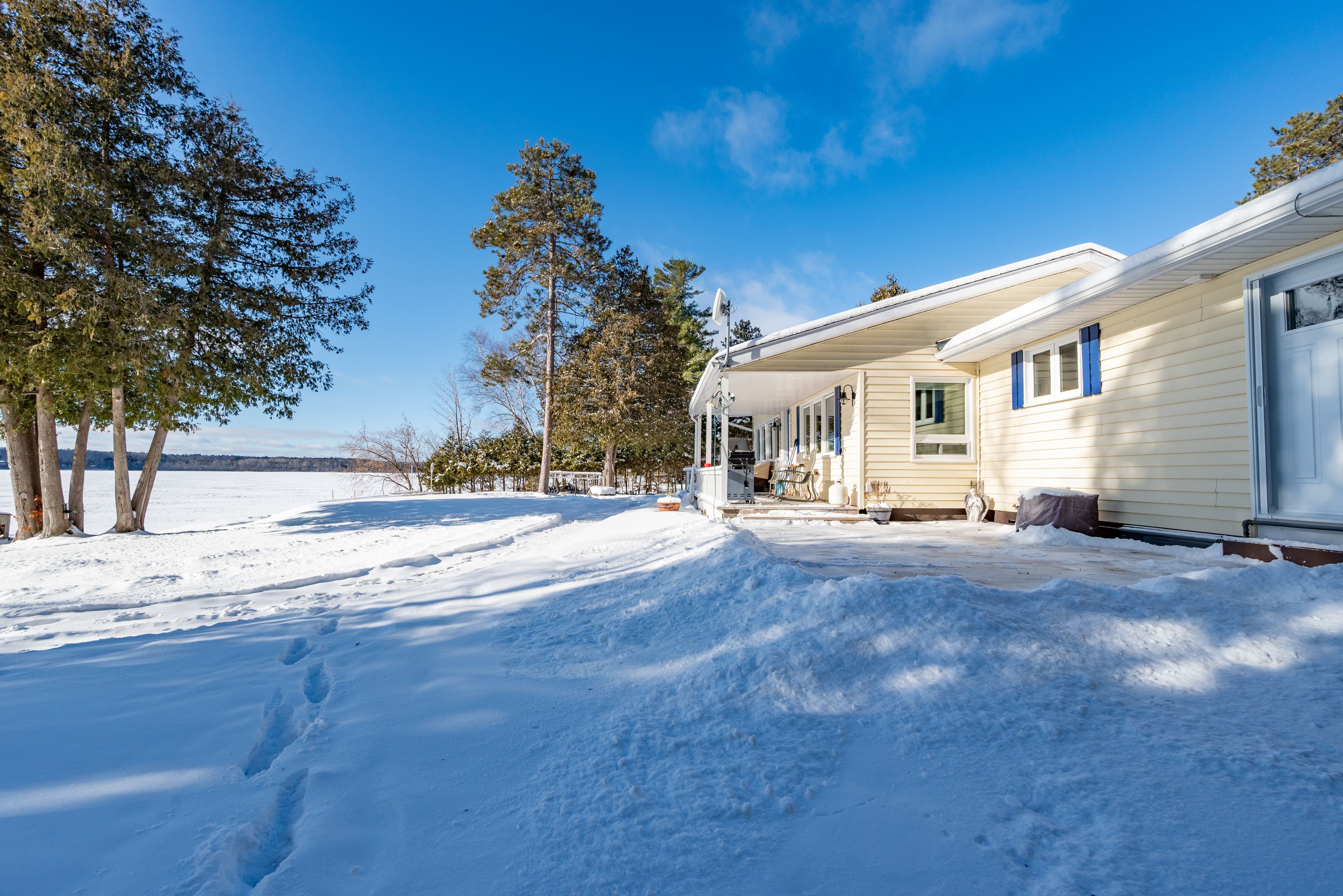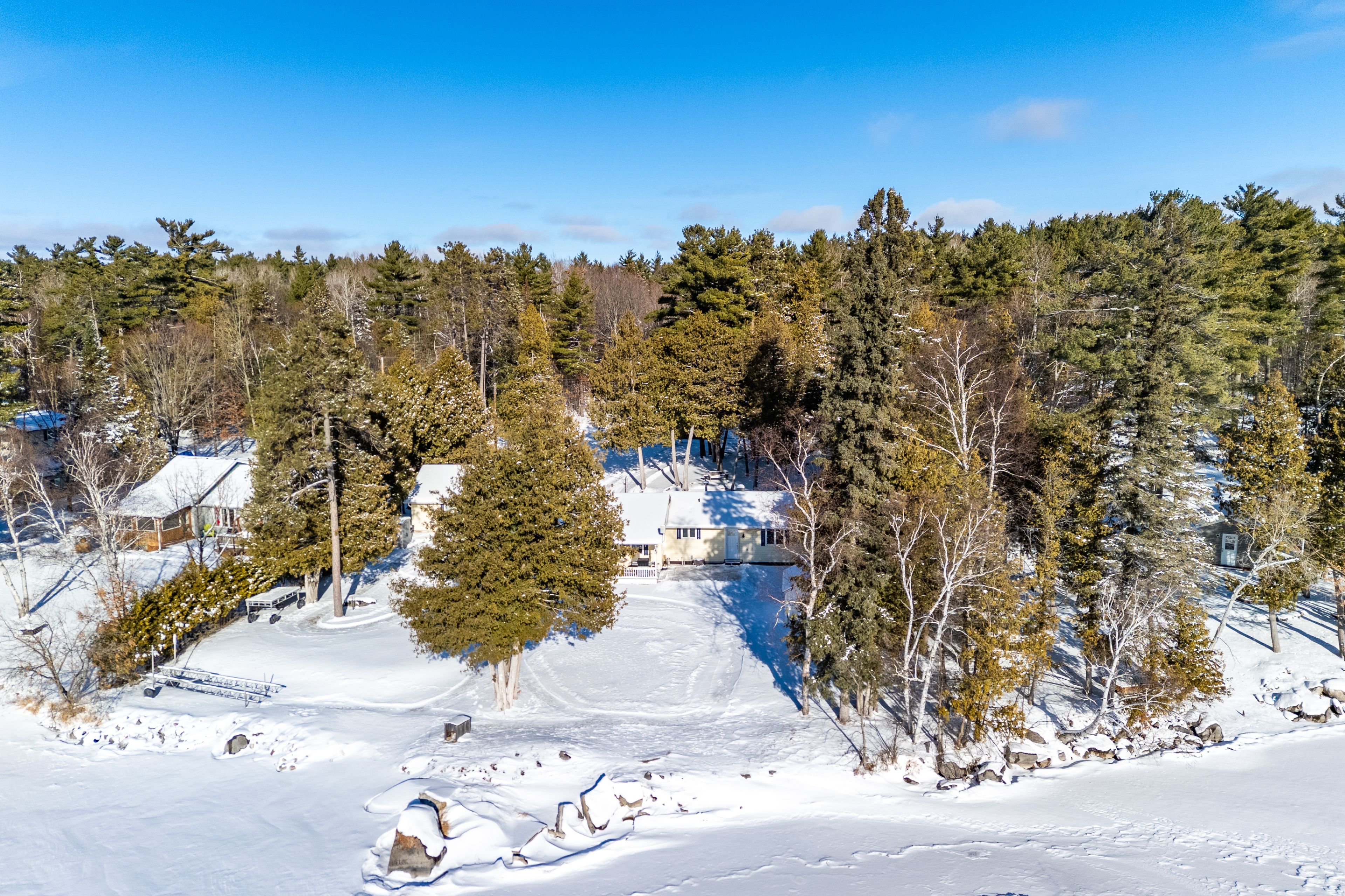 Imagine waking up to the sound of waves, sipping your morning coffee on your porch overlooking mink lake. Discover lakeside living with this charming 4 season 2 bedroom bungalow. From the moment you drive down holiday lane, you'll be ready for your new life. The cutest bungalow you ever did see greeting you with it's circular driveway. This isn't an old cottage. Kitchen was given a refresh with professionally painted cabinets and new counters. The bathroom has a deep tub for long soaks and fresh new vanity. New foors and trim(2025) many new windows and doors. From the bottom up, spray foamed crawl space with forced air furnace(2021). Air conditioner 2022, and additional heat pump installed(2024) with wall unit in each bedroom (2) to keep your bedrooms juuuust right. Prefer the warm and fuzzies from a wood freplace, light it up, wett 2021. Improved insulation in the attic and walls, even the garage was re-insulated (24x30, with additional wood shed). The laundry softener 2021 approx. 24 hour irrevocable on all offers. Room can accommodate a small bed, or laundry machines moved to mudroom and create space for a small 3rd bedroom. Septic tank last pumped 2024