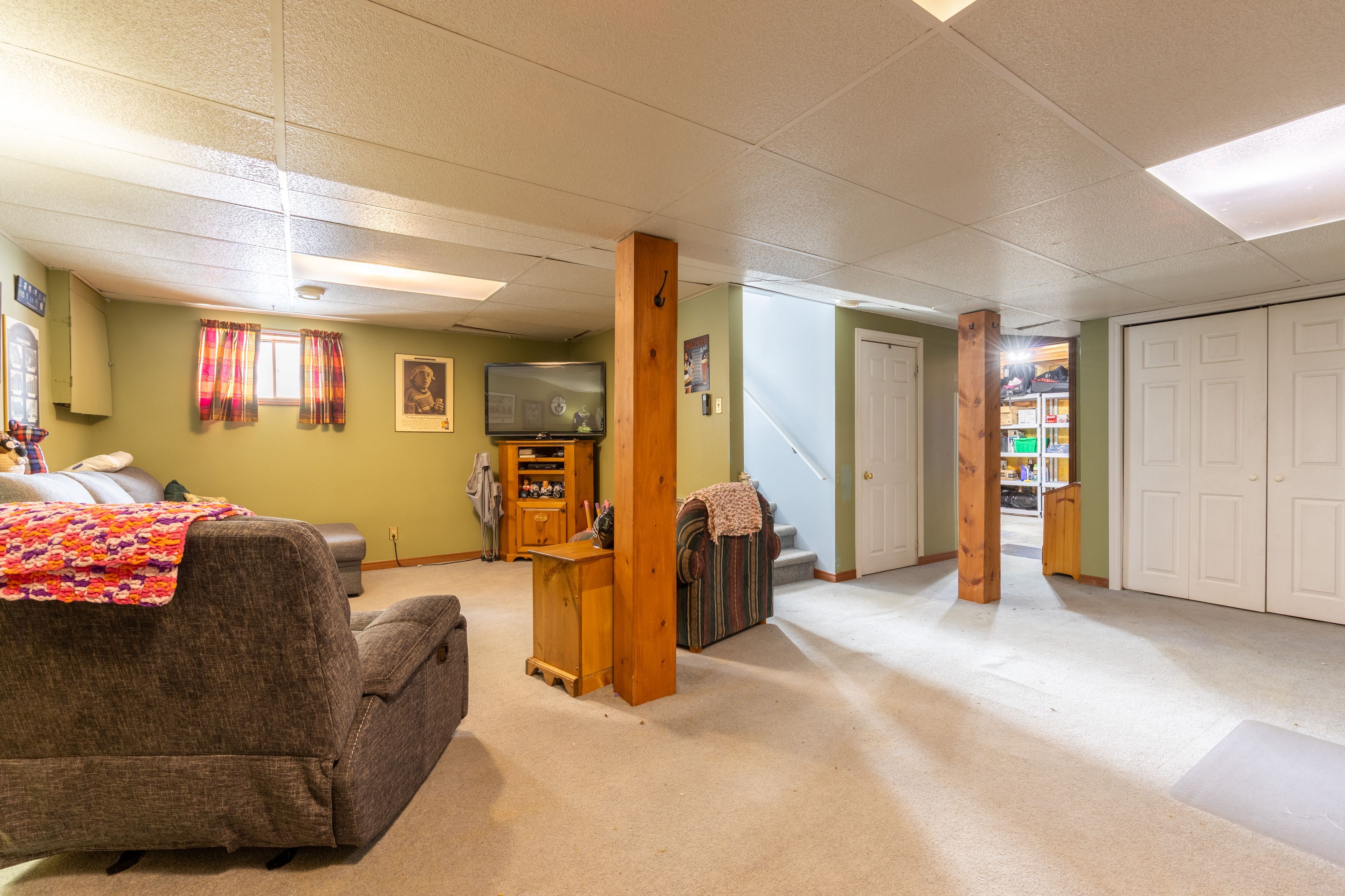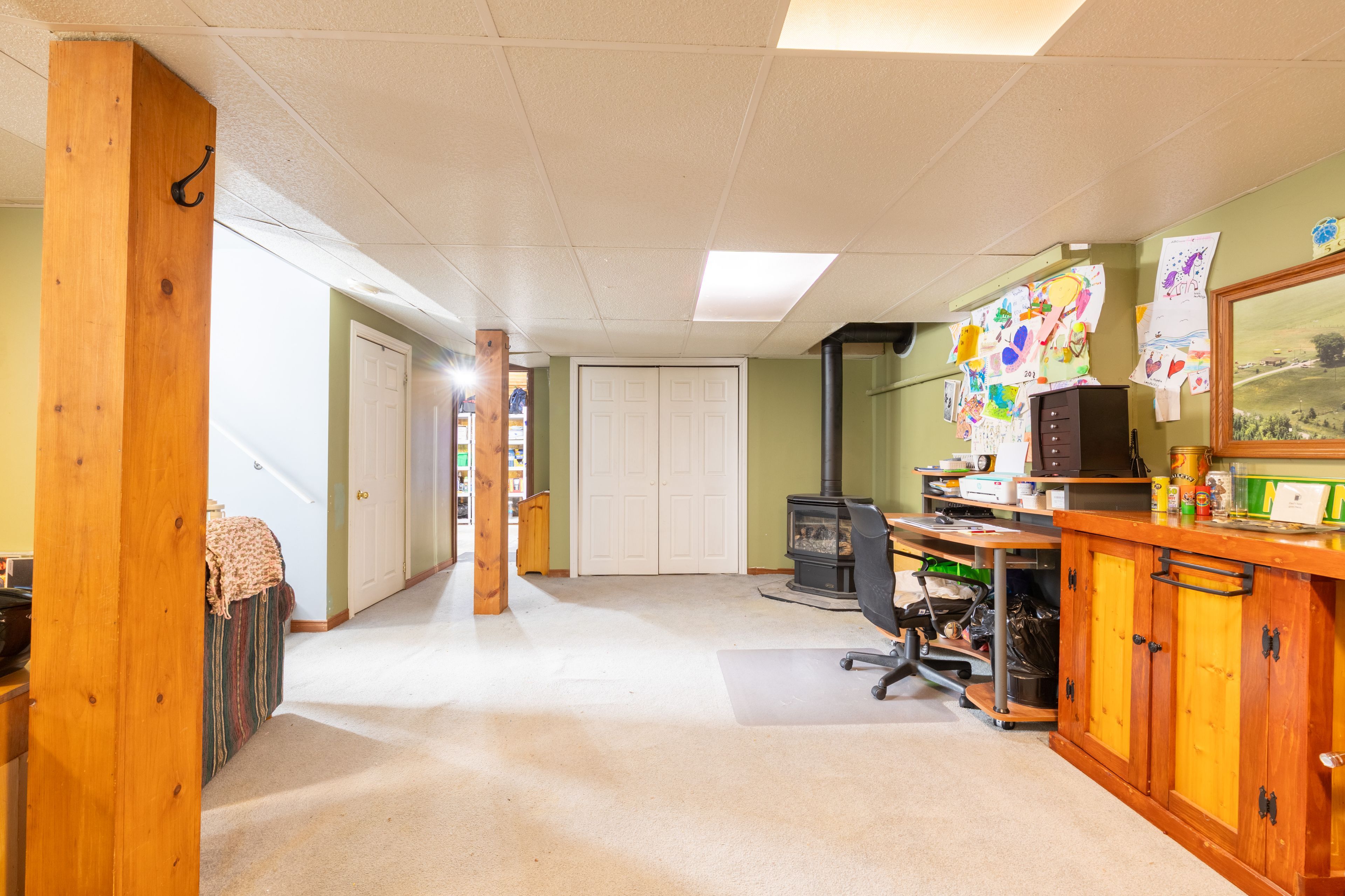 • Large rec-room with propane fireplace and plenty of storage options.