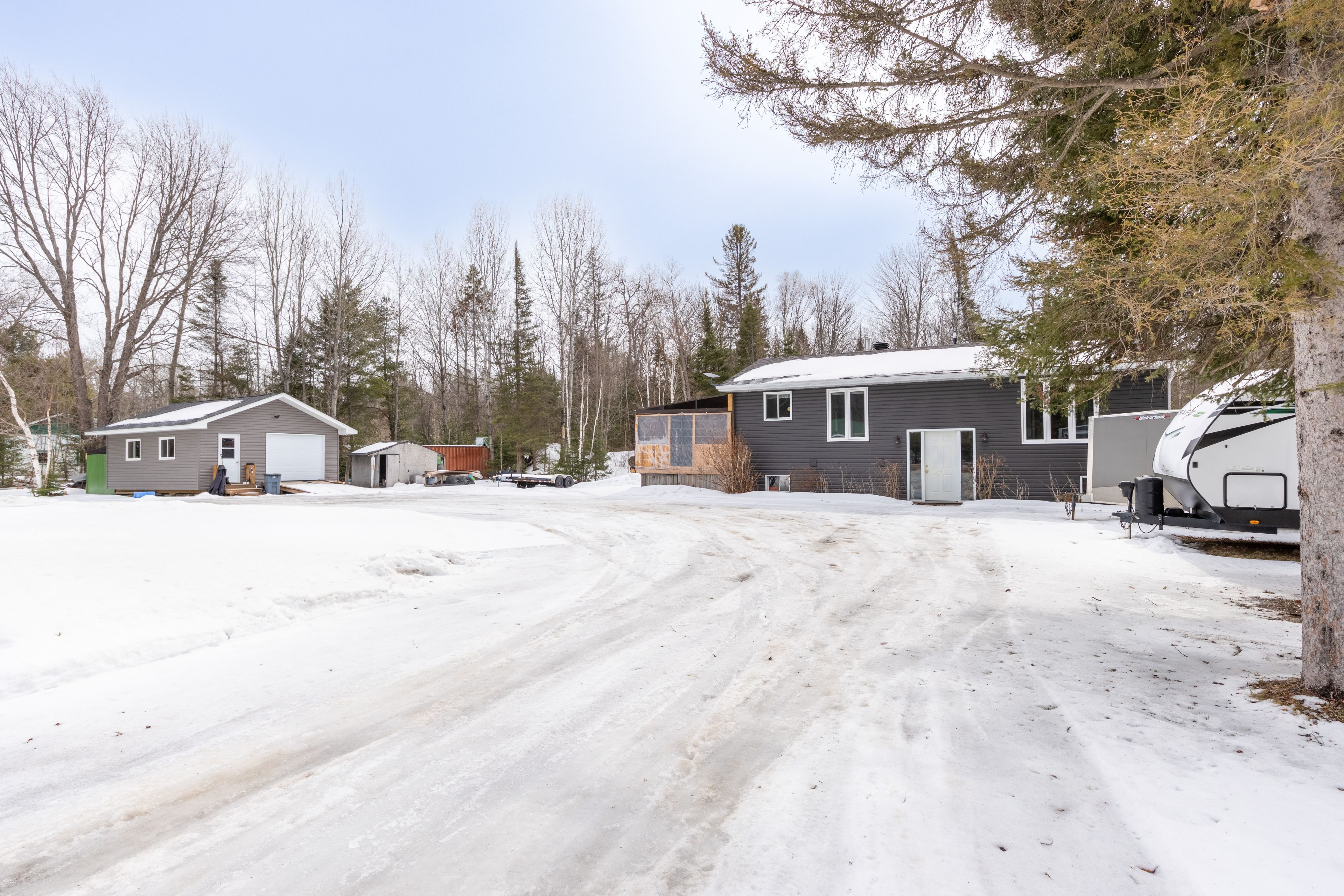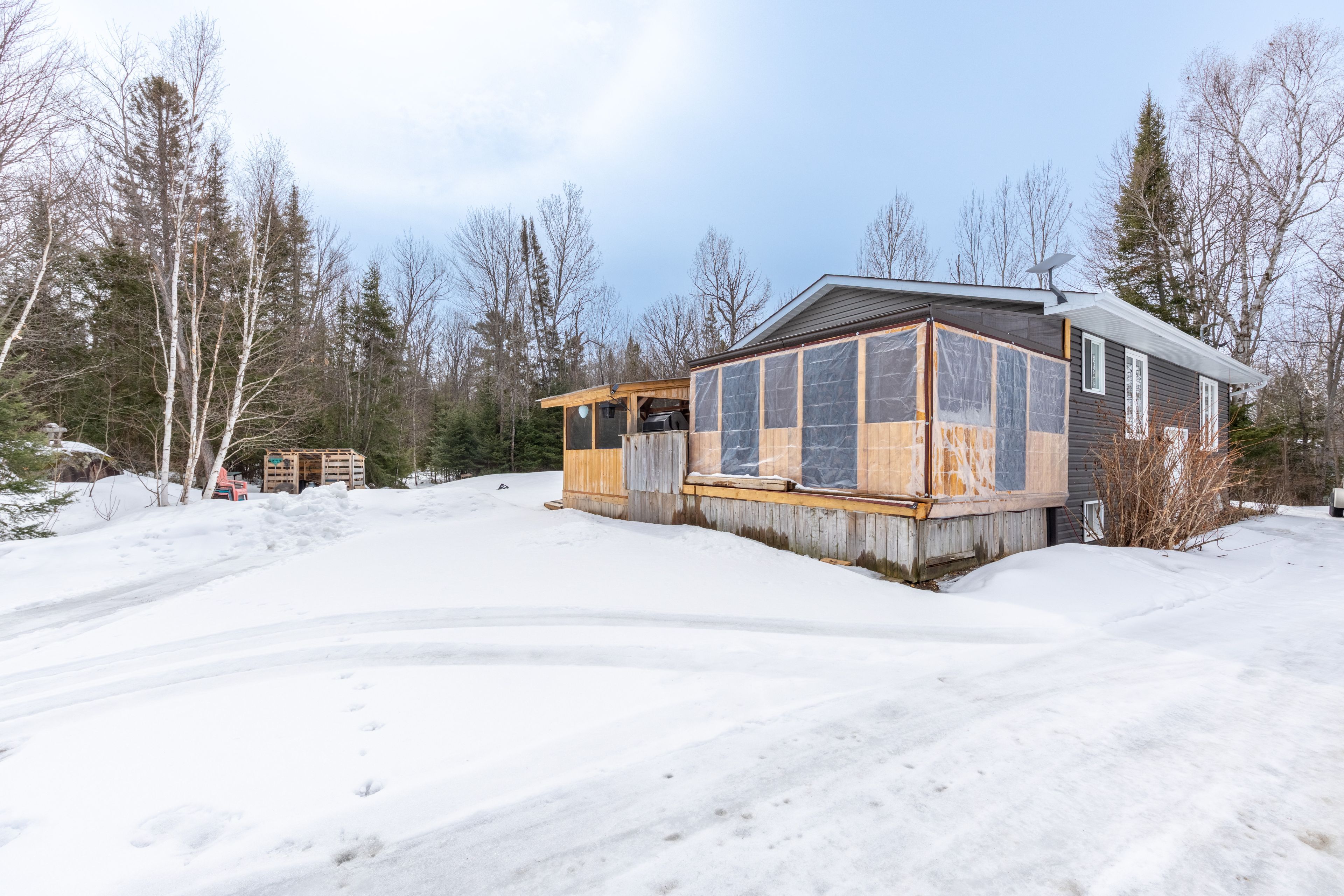 Enjoy country living from this solid 3 bedroom, 1 bathroom bungalow situated on a wooded 2. 9 acre property only minutes from powassan amenities and 20 minutes to north bay. Main floor features a bright living room, an updated modern kitchen with dining area and access to the private side deck. 3 bedrooms and 4pc bath. The lower level offers a large rec-room with propane fireplace, laundry/utility area and ample storage space with plenty of potential. The exterior features a circular driveway with plenty of parking, and a large outdoor tiered deck with a covered hot tub area. Detached 20' x 24' insulated and heated workshop, plus plenty of storage, including a 20' sea can. Forced air propane heating with a/c and generlink for additional backup security and comfort. Appliances included. Recent upgrades include exterior siding and 2 new front windows in 2025
