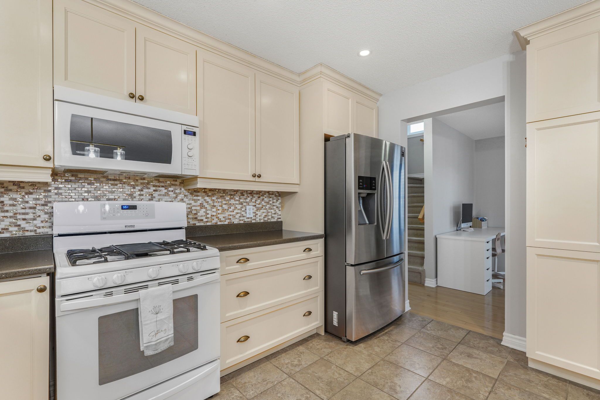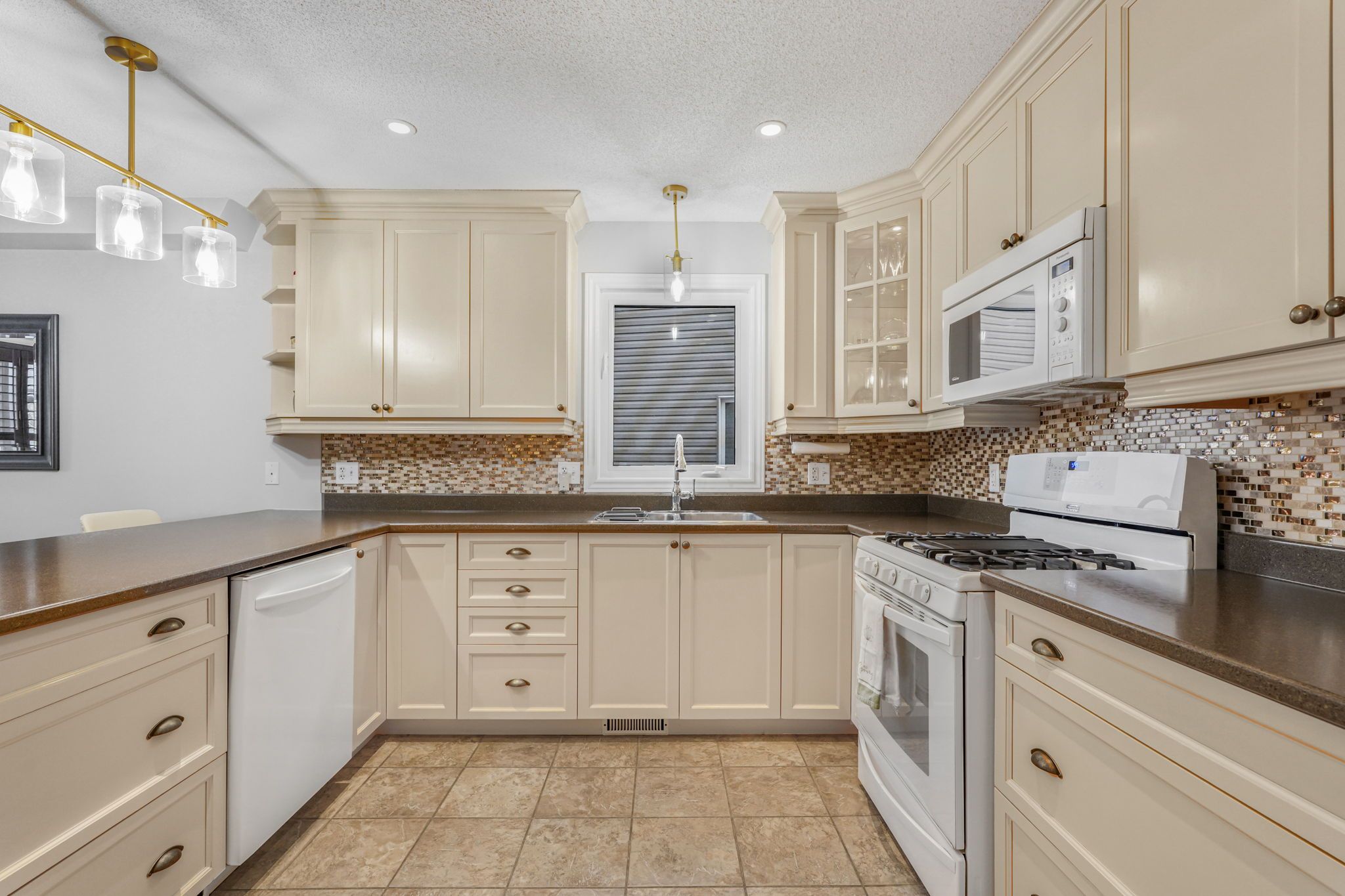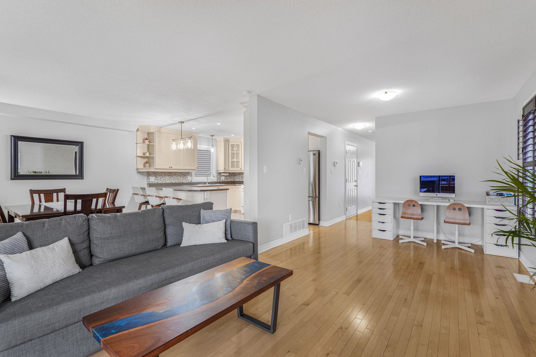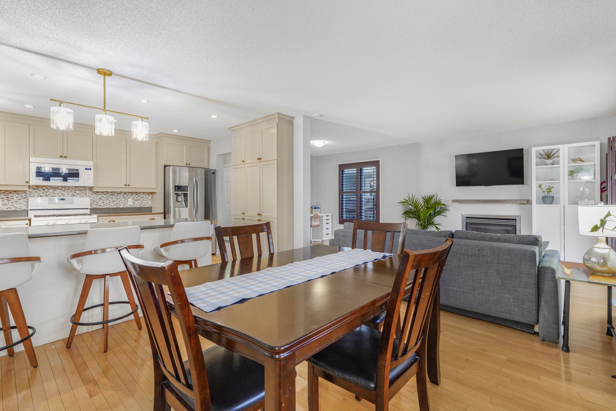 • Bright open-concept layout with a cozy gas fireplace for comfort.