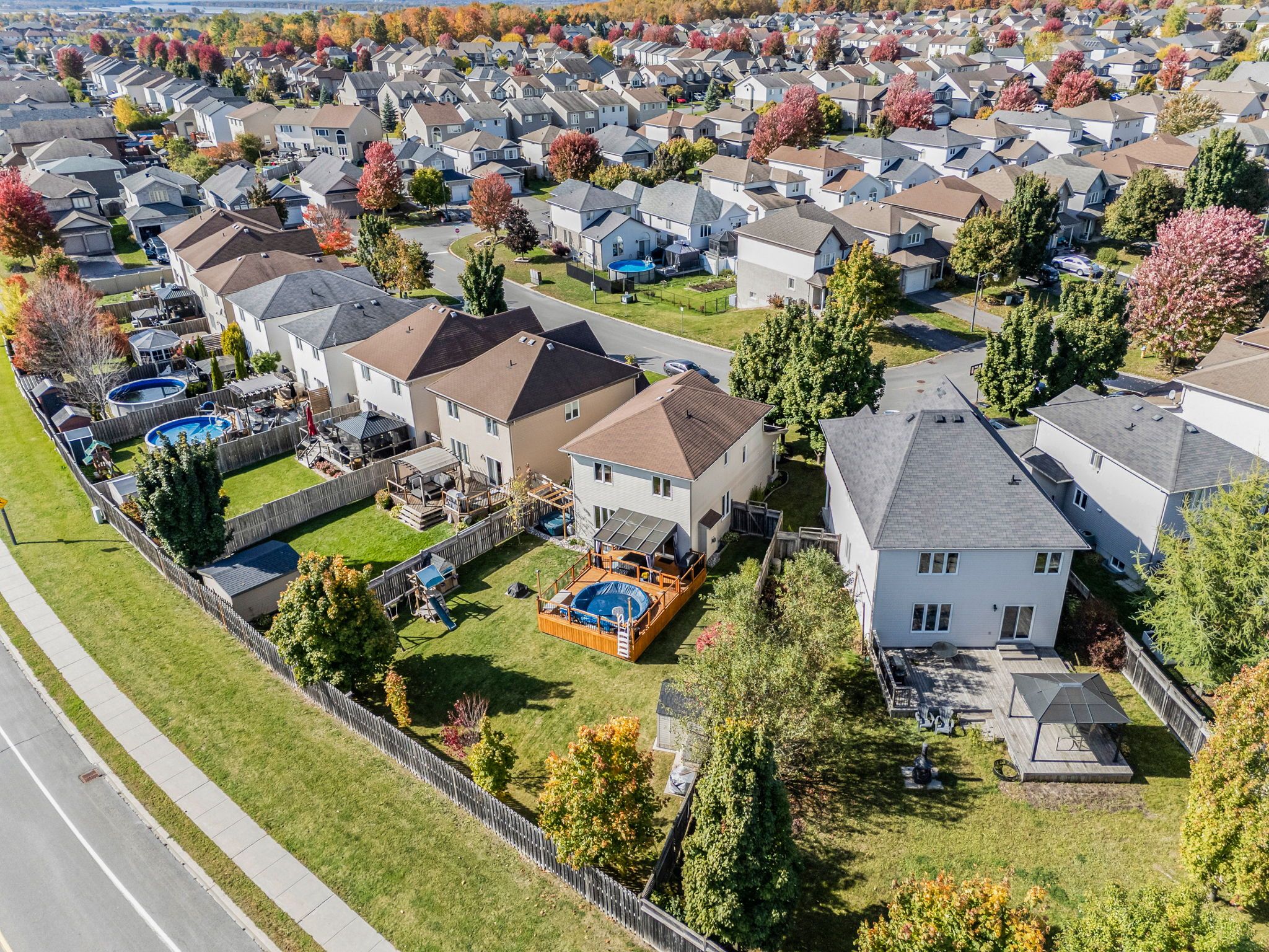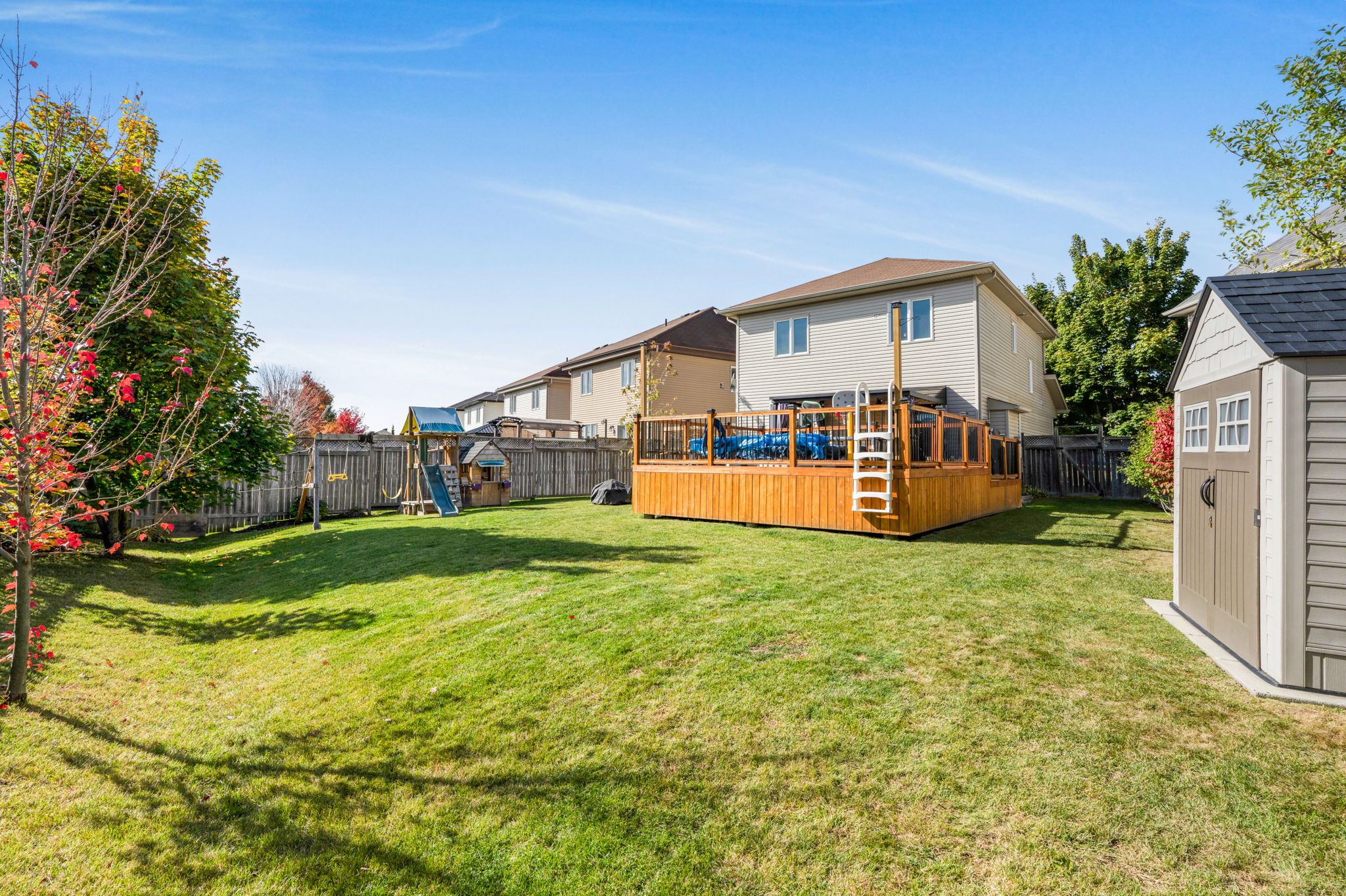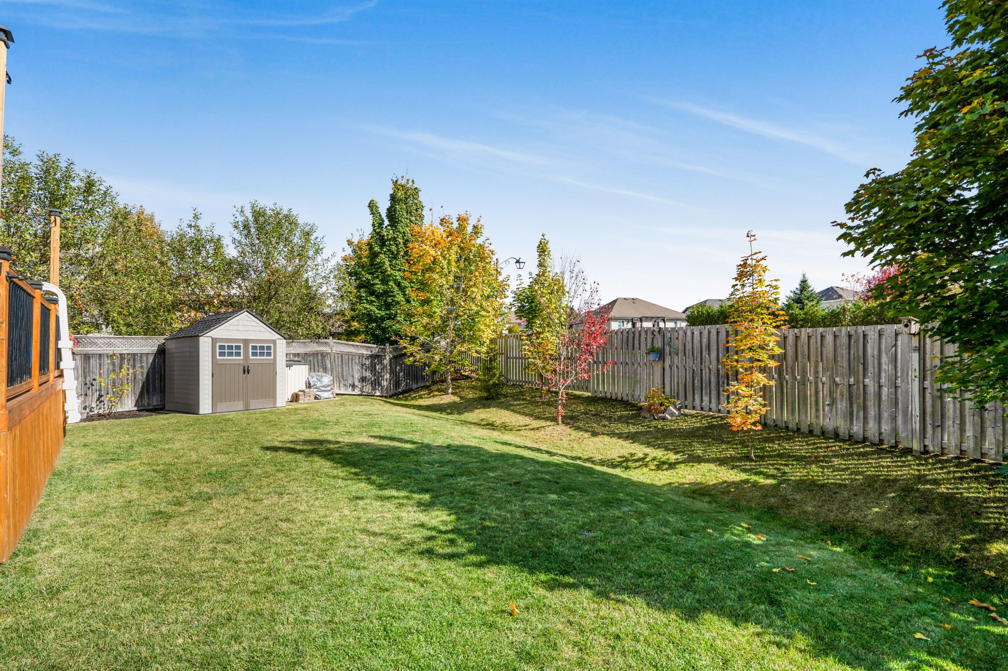 • Fully fenced backyard featuring a deck and heated above-ground pool.