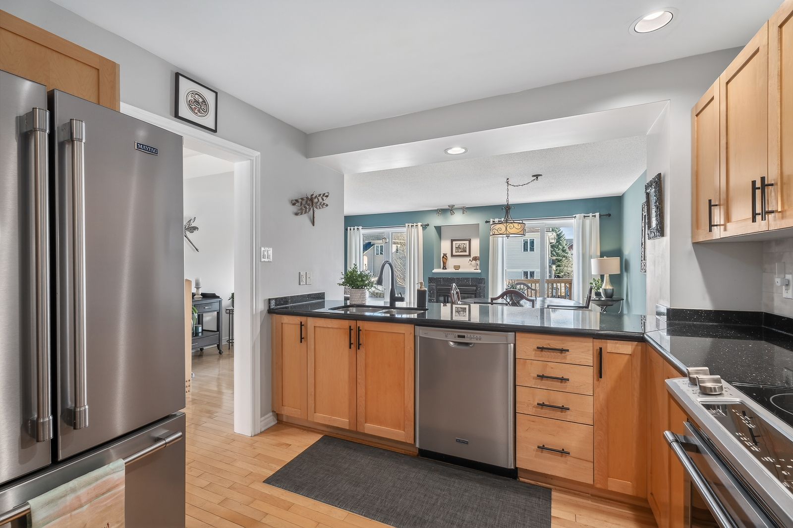 • Open concept main floor features maple hardwood and a cozy gas fireplace.