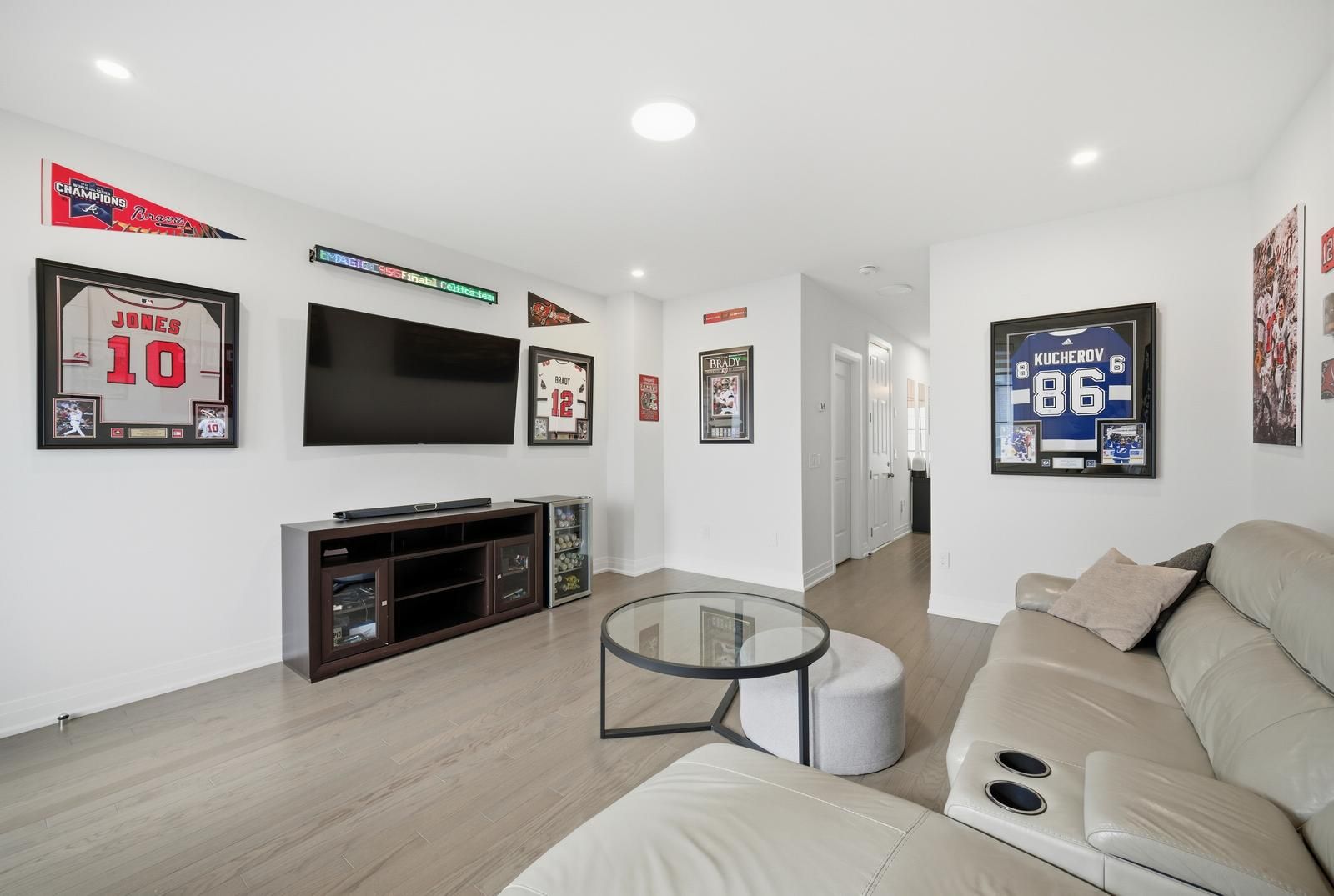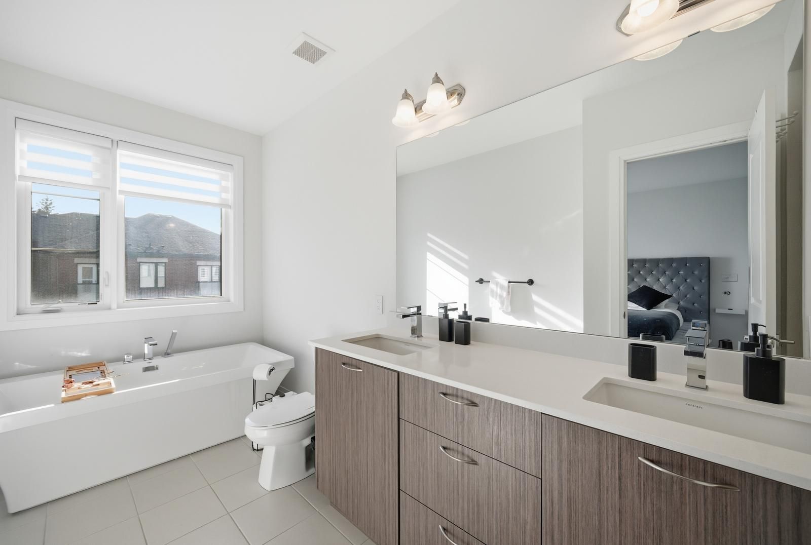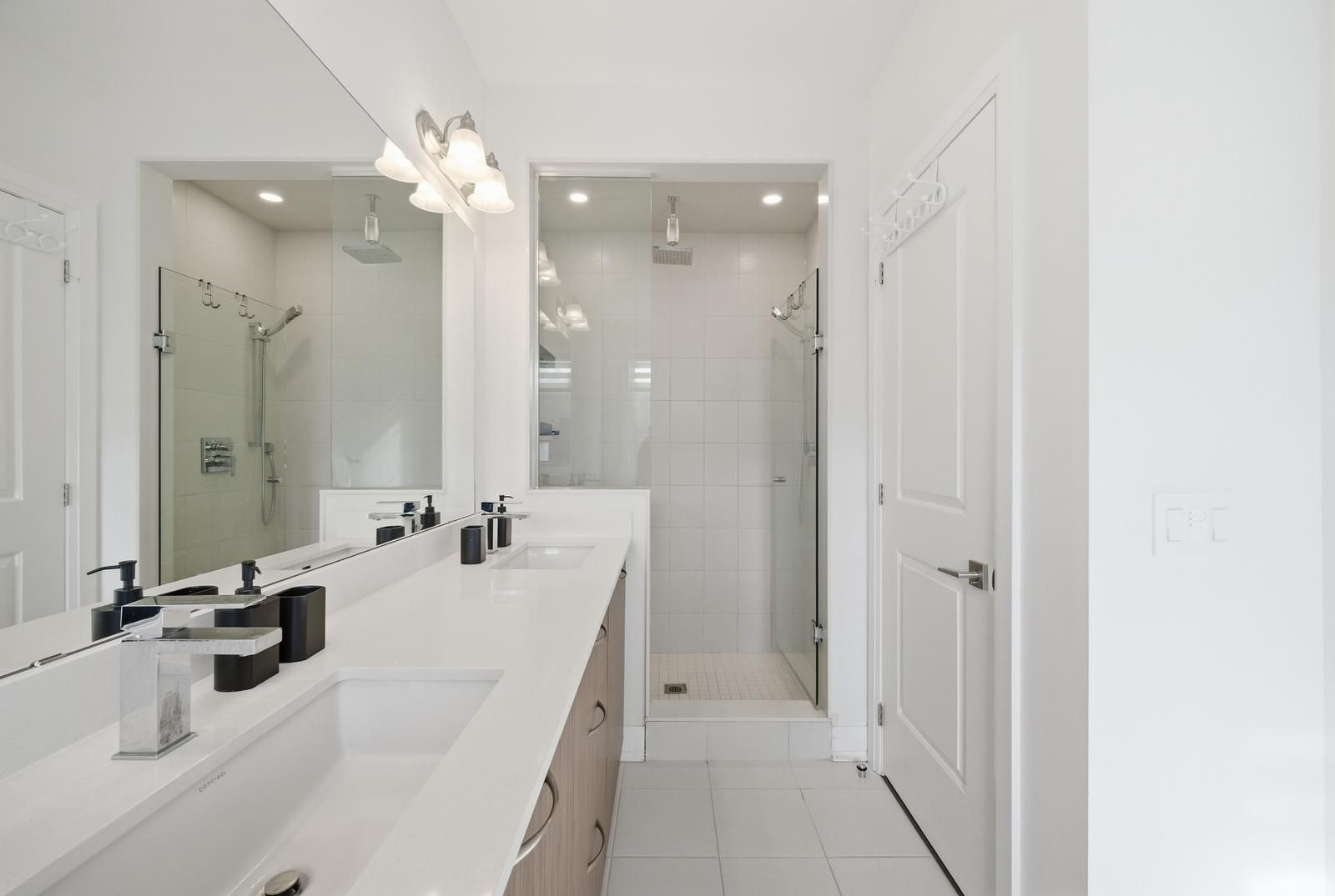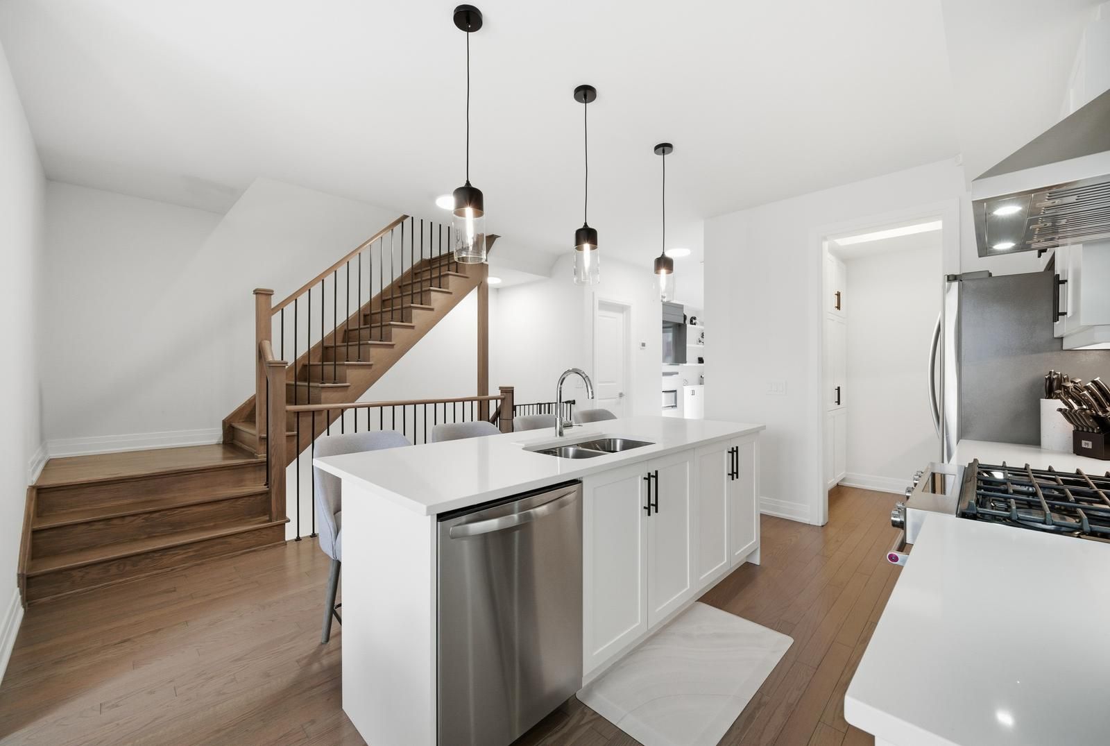 • Upgraded kitchen with marble backsplash, quartz countertops, and soft-close cabinets.