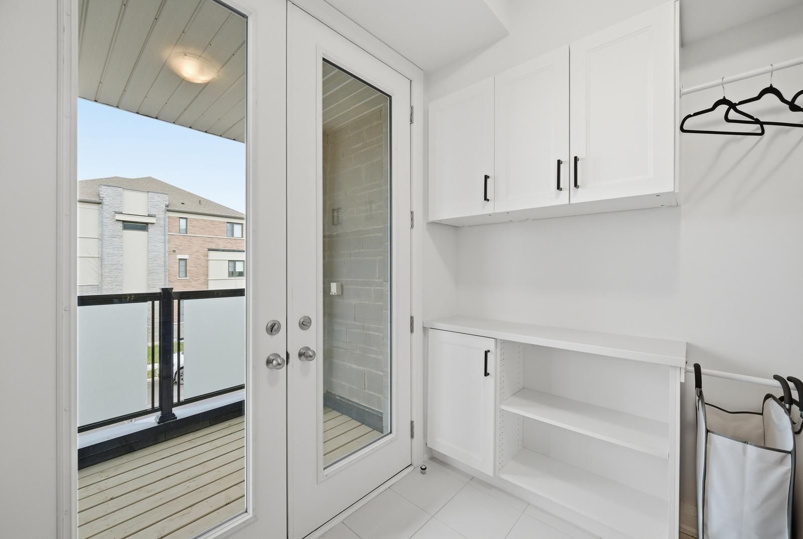 • Convenient upper-level laundry with built-in storage and direct garage access.