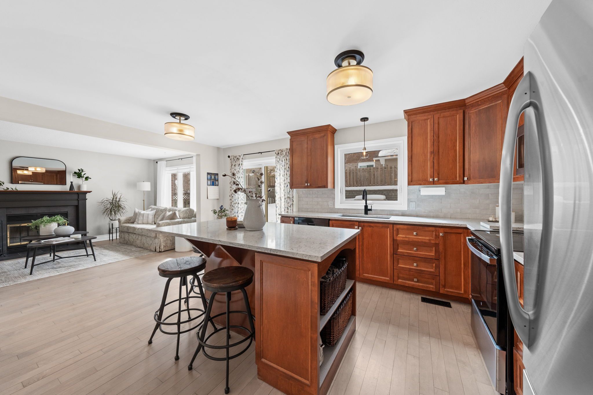 Open house sunday march 15, 2-4 pm. Beautifully maintained holitzner-built family home offering 4 beds and 2. 5 baths in the heart of kanata lakes, minutes from the kanata beaver pond, schools, transit, and everyday amenities! Excellent curb appeal with updated garage door and interlock walkway to the front entry. Inside, a bright tiled foyer opens to refinished hardwood floors, leading to a formal living room at the front of the home and a sun-filled family room at the back featuring a wett-certified wood burning fp. The beautifully updated eat-in kitchen features new granite counters and sink (2024), new dw, stove and microwave (2025), ample cabinetry, and an island with storage and barstool seating, with sliding doors leading to the back deck. A generous dining room with a bright window and modern light fixture is ideal for entertaining. An updated powder room and convenient mudroom complete the main level, with hookups available should you wish to relocate the stacked washer/dryer from the ll. Upstairs, the bright primary bedroom overlooks the front gardens and includes a wic and updated ensuite with tub/shower, plus updated vanity, faucet, and flooring (2023). 3 additional bedrooms and full bath serve the upper level. The expansive finished ll features brand new carpet (2026) and pot lights throughout, with a large rec room, a separate flex room/playroom, laundry room with an additional fridge, and a utility room with excellent storage. The mature fully fenced backyard is a true highlight, featuring a new deck, planter boxes and hardscaping (2020), interlock patio, large trees, and lush perennial gardens lovingly maintained by the owner, with stepping stones leading to a storage shed and gated access on both sides of the home. A beautifully cared-for property offering comfort, thoughtful updates, and an exceptional kanata lakes location! 24 hours irrevocable on all offers, preferred.