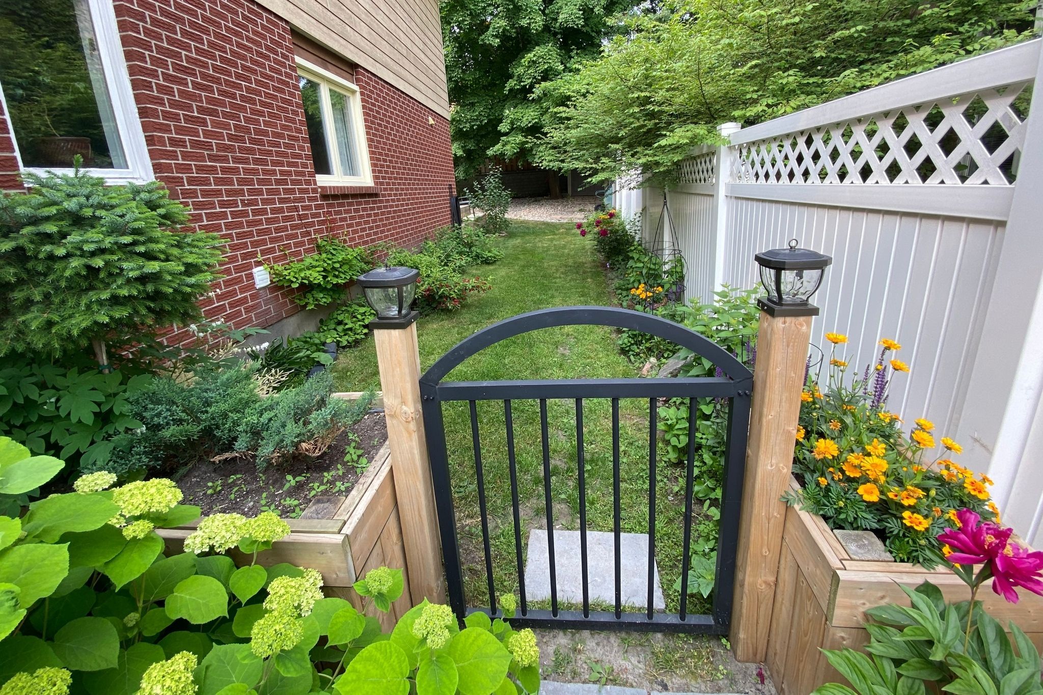 • Mature, fully fenced backyard with new deck and lush perennial gardens.