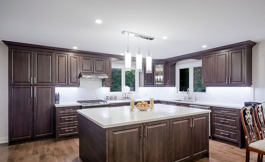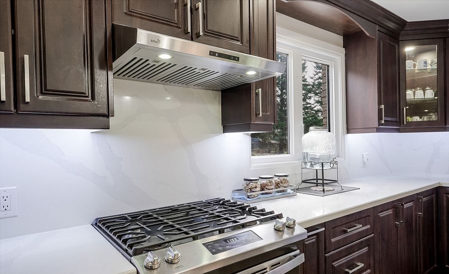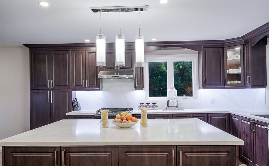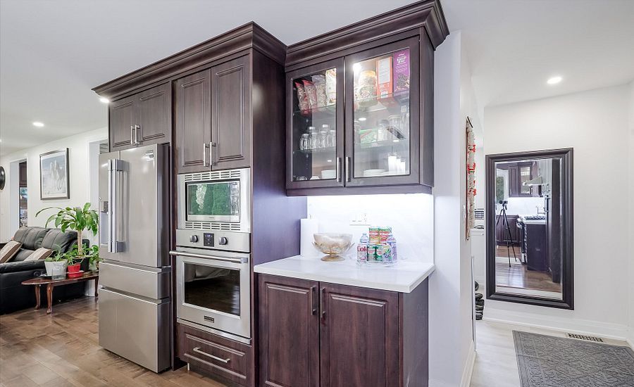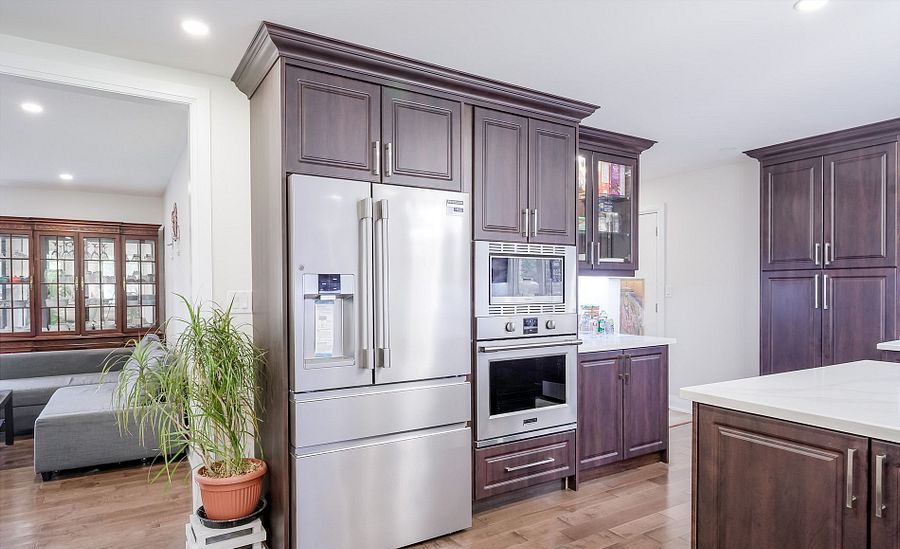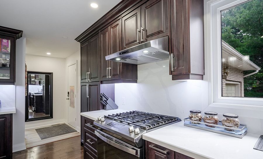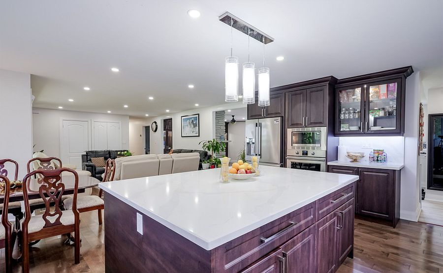 • Modern kitchen with quartz island and high-end appliances.