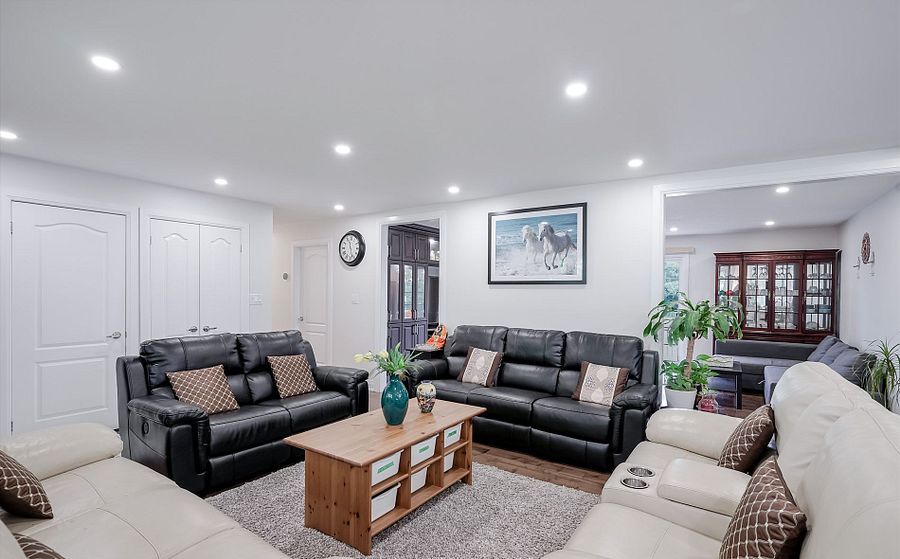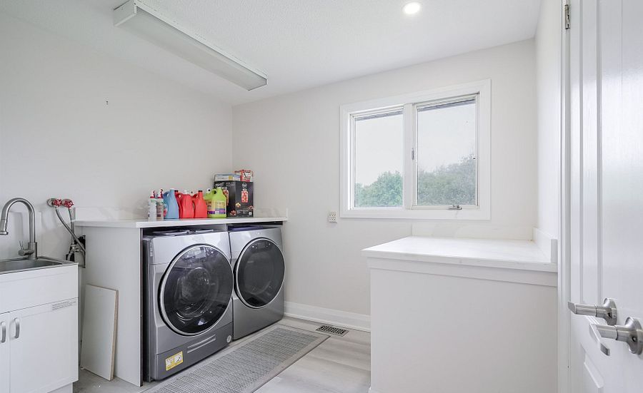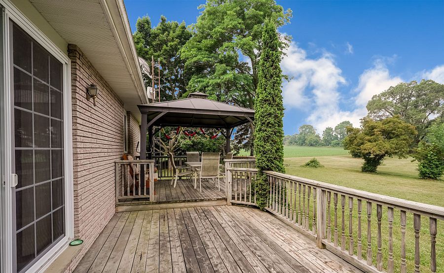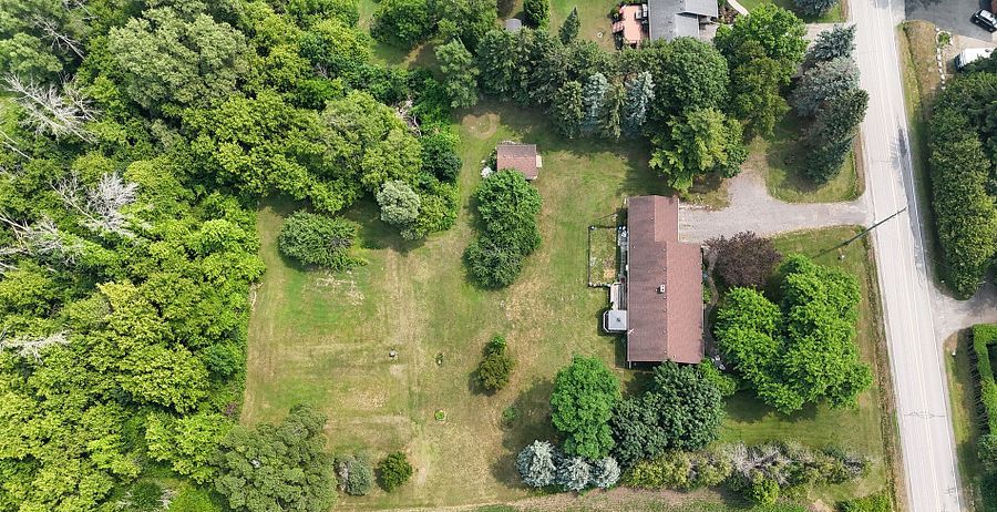 Beautiful brick bungalow on 1. 5 acres ! Don't miss this rare opportunity to own a fully renovated (2022) brick bungalow nestled on a stunning 1. 5-acre lot, complete with mature apple and pear trees, a fenced garden area, and plenty of backyard space to enjoy with family and friends. This charming home features a spacious 2-car attached garage and a bright, modern interior family-sized kitchen renovated in 2023 and includes brand-new cabinets, a massive quartz center island with added storage, and high-end stainless steel appliances , gas stove, built-in oven, 4-door fridge, built-in dishwasher all overlooking the open-concept dining and living areas. A large picture window in the living room offers stunning views of the front yard. Enjoy hardwood flooring throughout (2022), pot lights in the kitchen, living, and family rooms, and a cozy family room with a wood-burning fireplace, custom built-in showcase and a walk-out to the deck and backyard. 200 amps upgraded electrical panel (2023). The front yard mature trees provide shade all summer long, creating a peaceful, private setting. This home offers both comfort and elegance ideal for those seeking space, nature, and modern upgrades in one perfect package