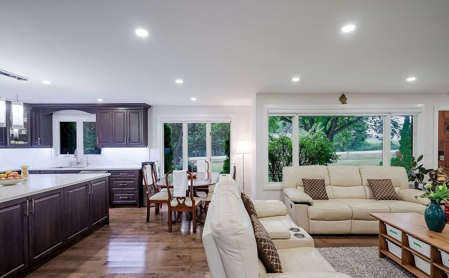 • Open-concept living and dining areas with large picture window.