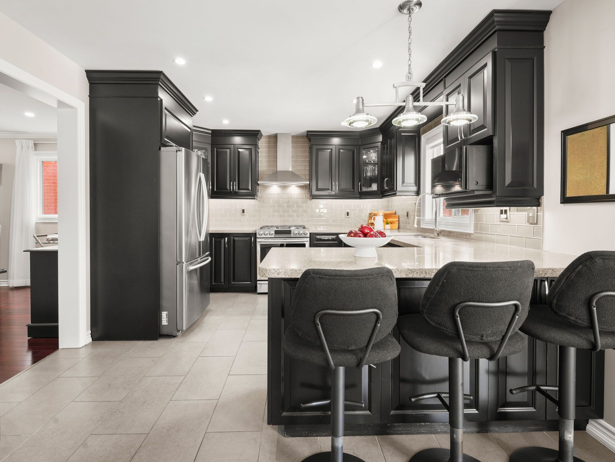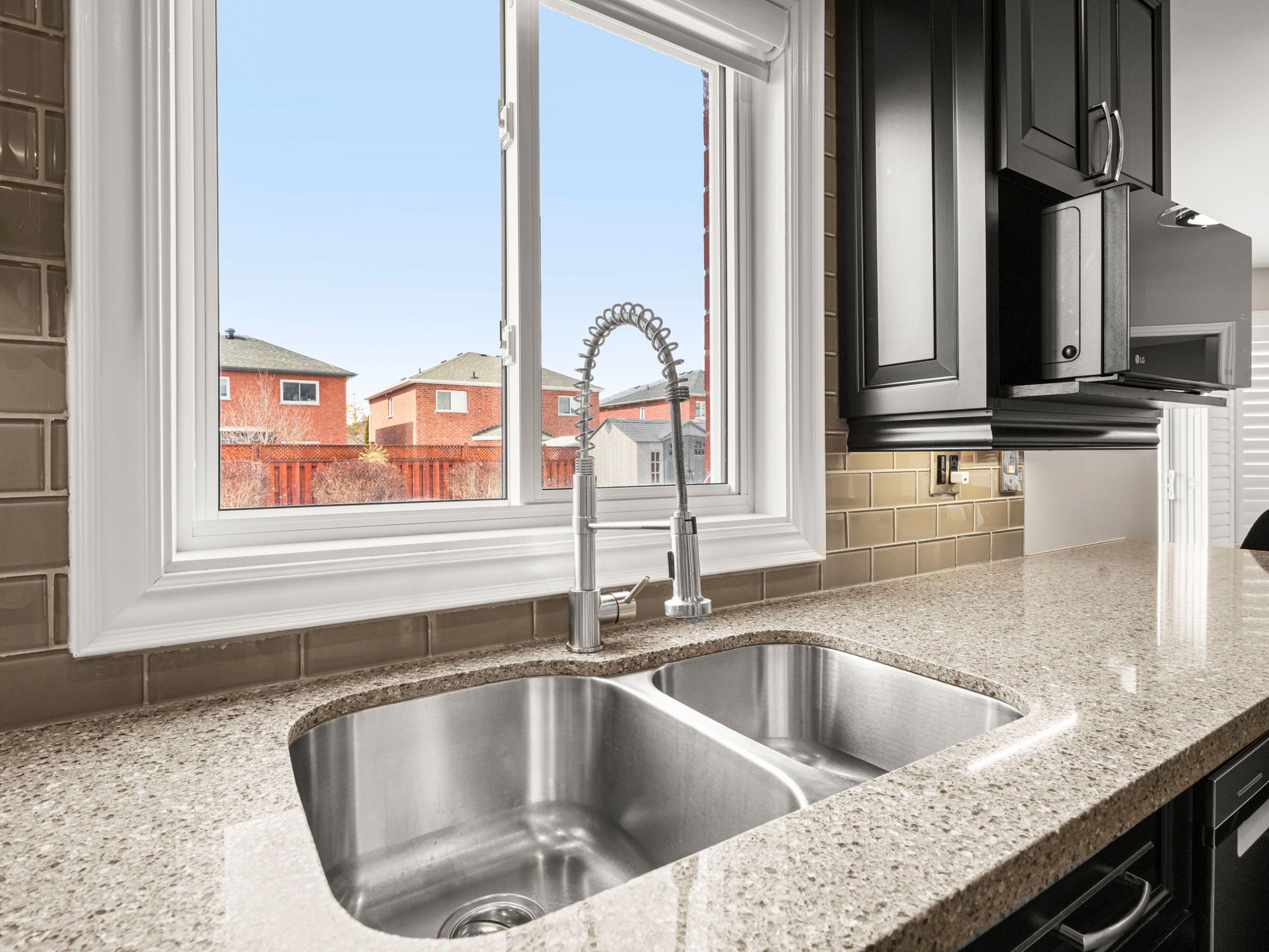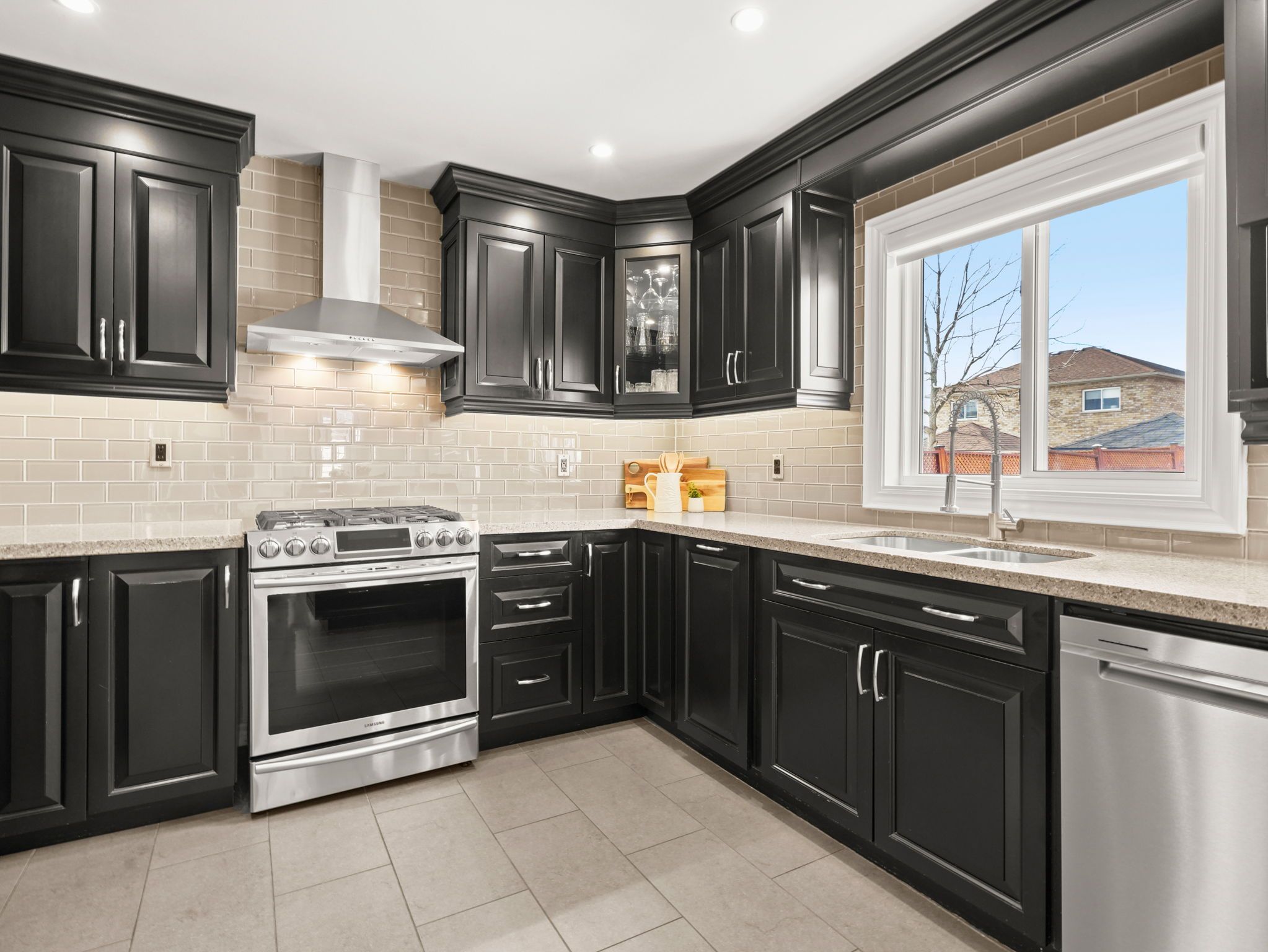 • Renovated kitchen with wood cabinetry and quartz countertops for modern living.