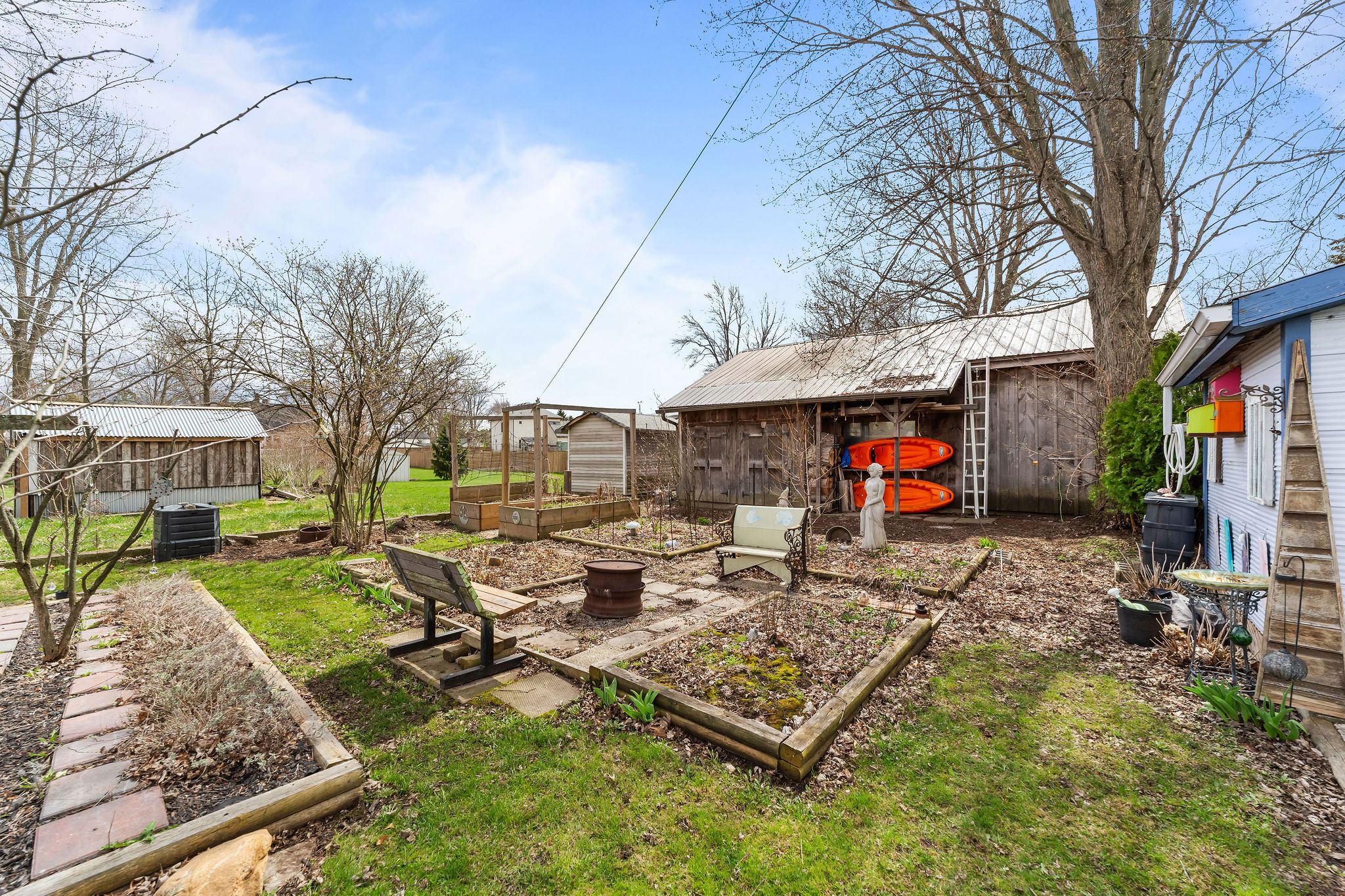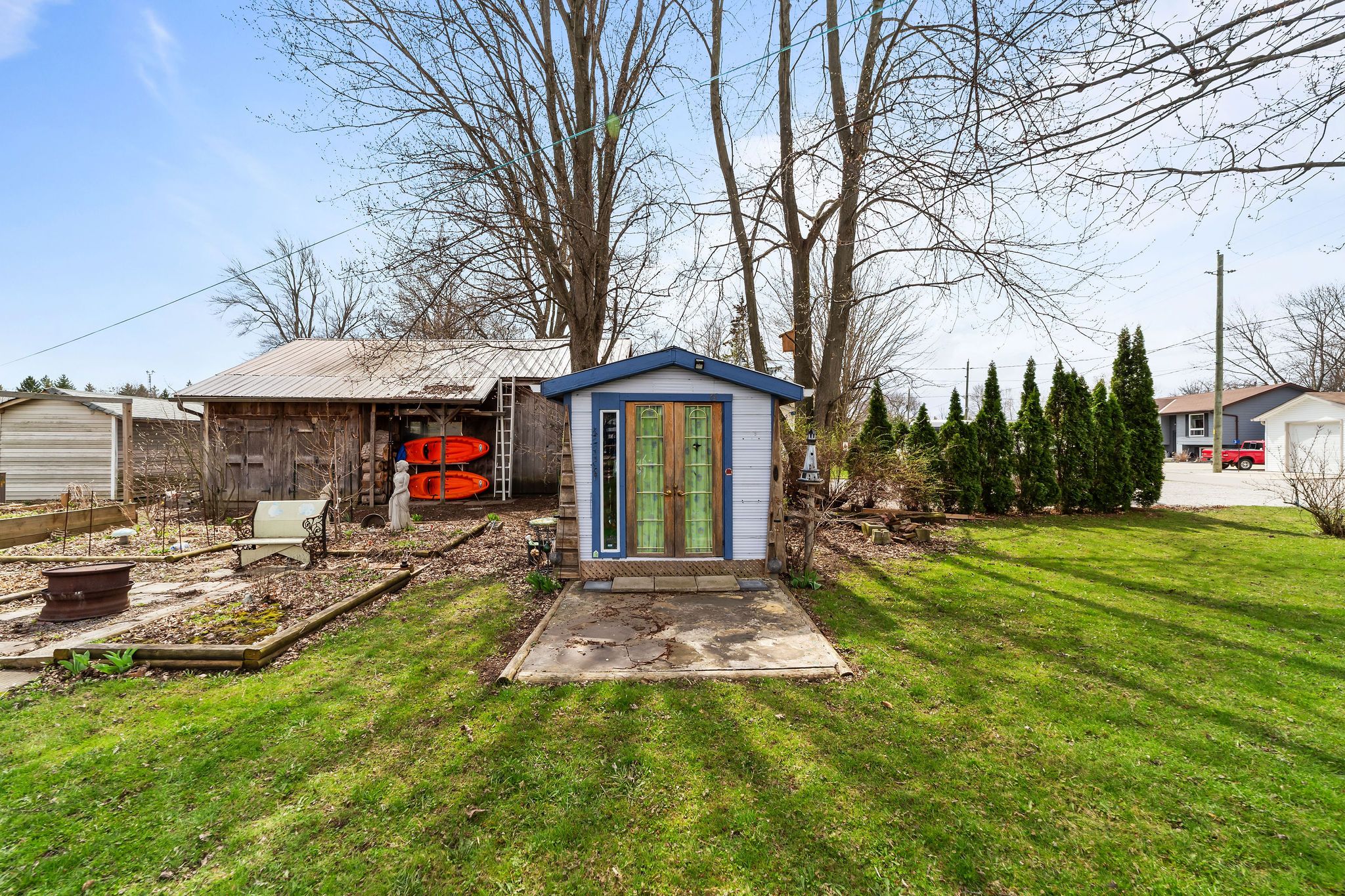 • Detached garage and storage shed for additional convenience and storage.