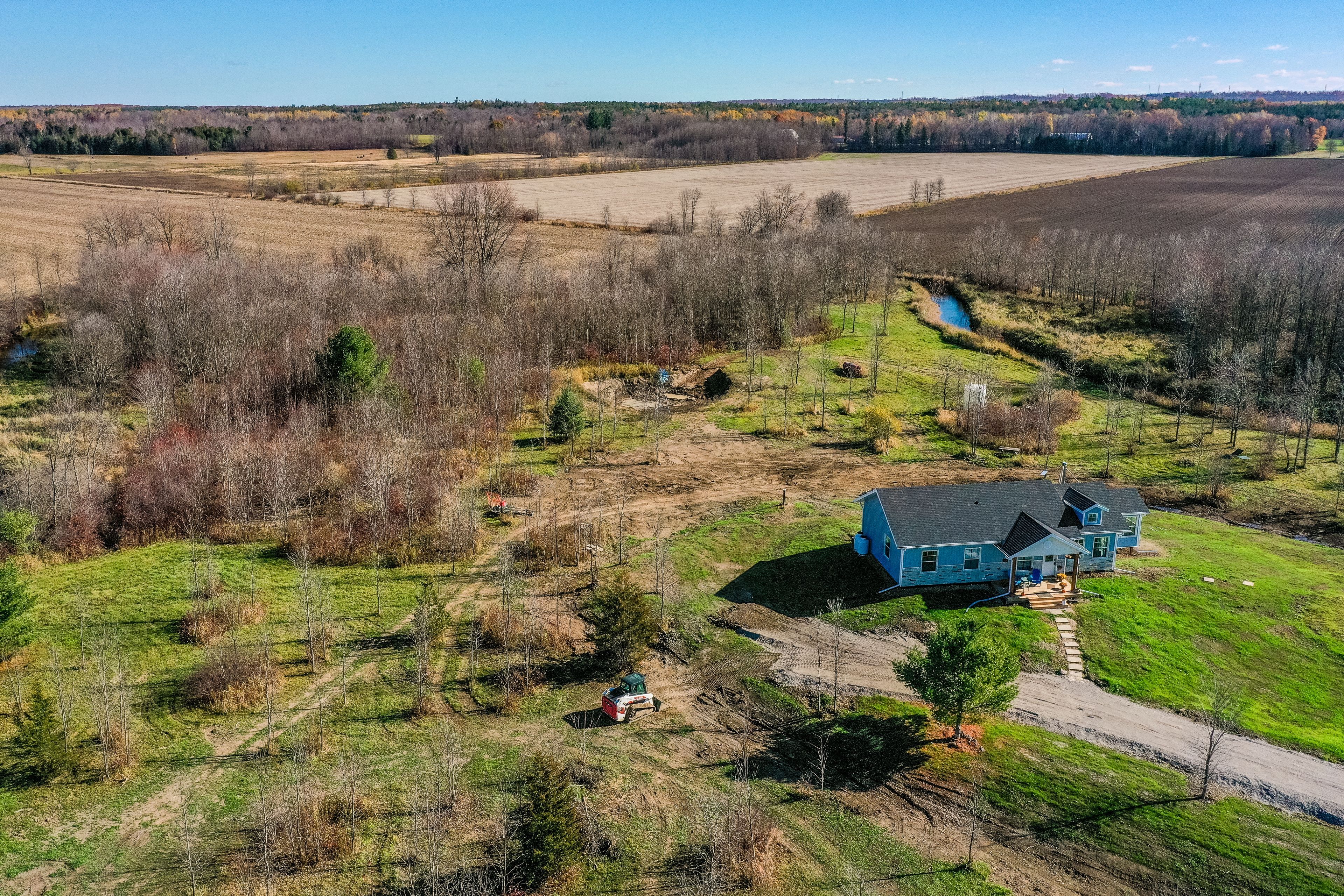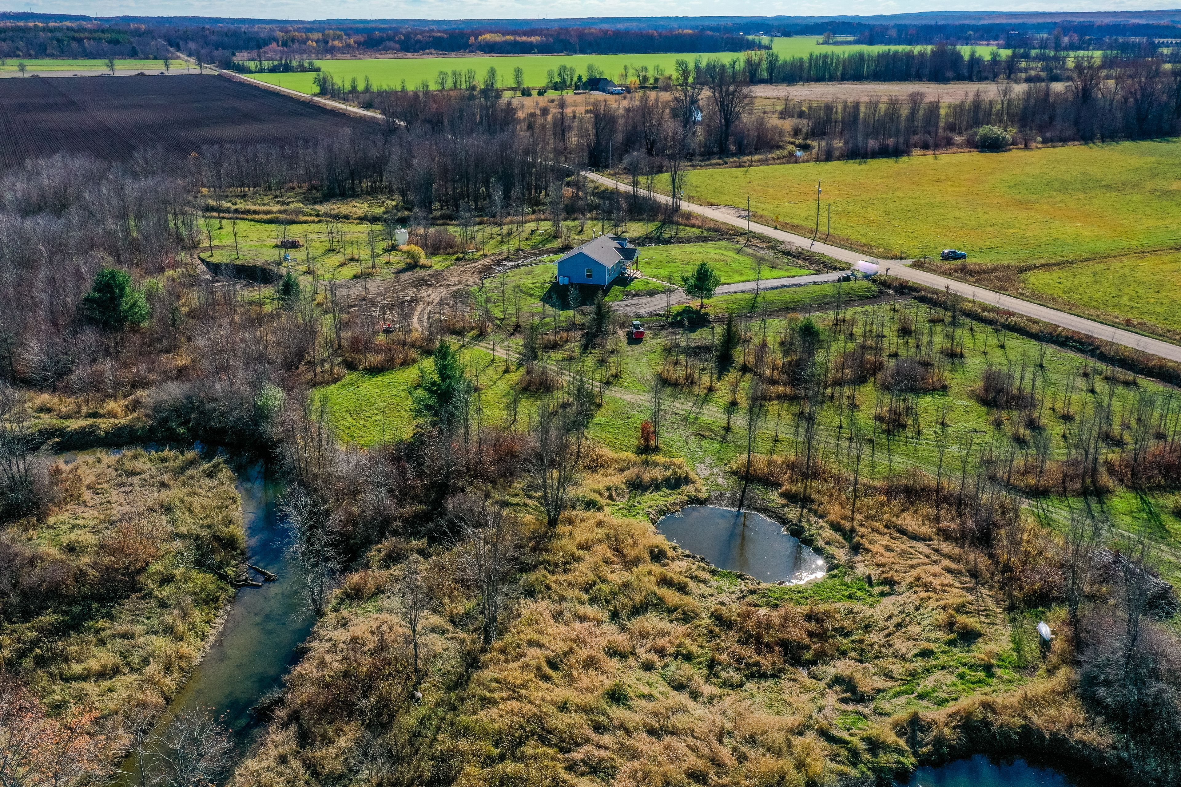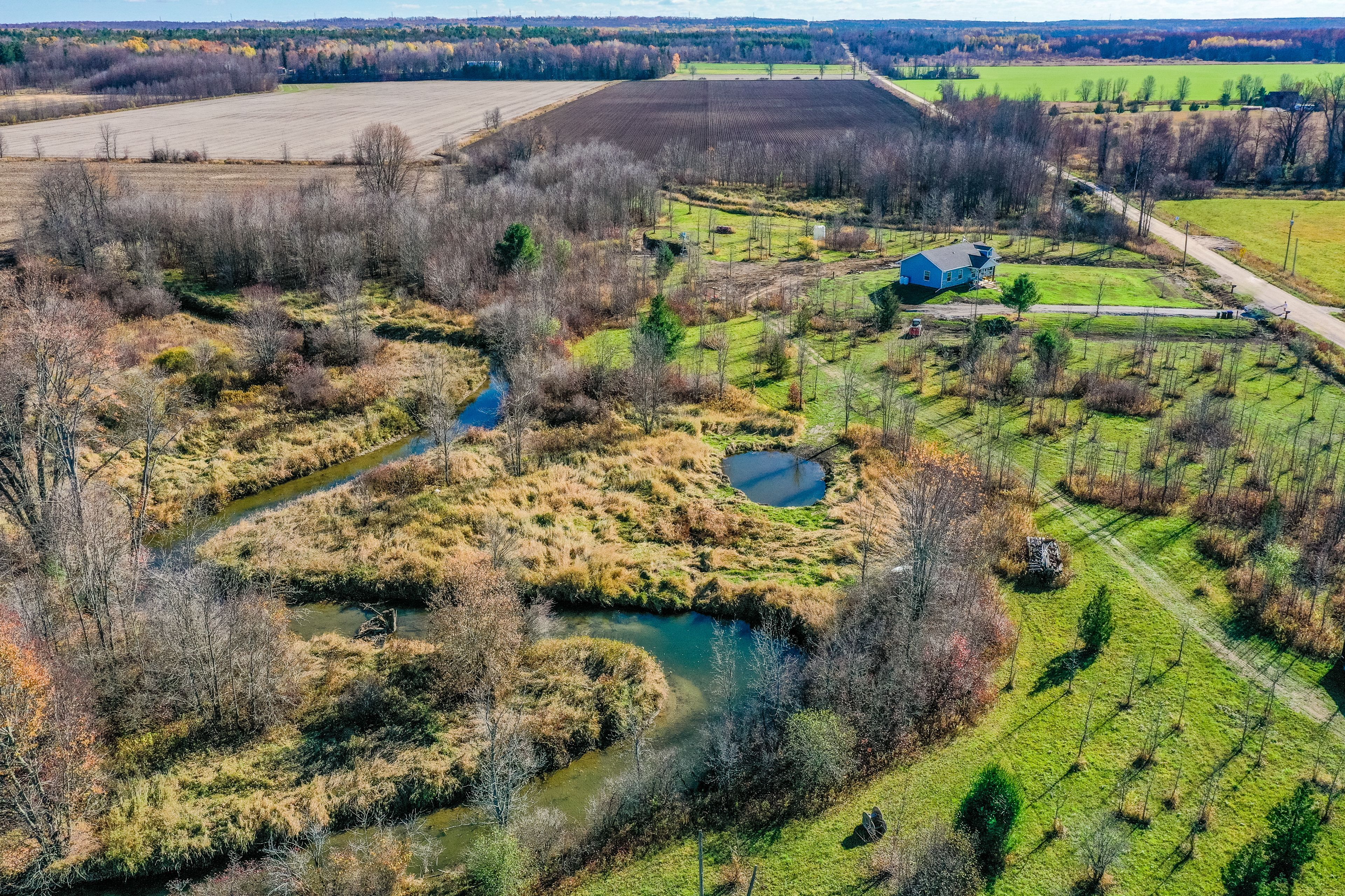 Imagine waking up each morning in a brand-new bungalow, sunlight streaming through the windows, and the gentle sound the river flowing just steps from your door. This beautifully designed 3-bedroom, 2-bath home offers over 1,221 sq. Ft. Of open-concept living, combining comfort, style, and modern efficiency in a serene country setting. Set on nearly 10 private acres of wrapped by the picturesque north river, this property is a true retreat. Whether you dream of a self-sufficient lifestyle, growing your own food, raising chickens, or starting a small-scale agri-business, the land offers endless potential. Hops and strawberries already flourish here perfect for value-added farming, a local brewery partnership, or a seasonal farm stand. Outdoor enthusiasts will love the peace and privacy, along with space for kayaking, fishing, gardening, or simply relaxing by the water. The flat terrain and natural beauty also make it ideal for trails, eco-tourism, or a pick-your-own experience. This property is equally suited to urban buyers seeking an escape from city life, retirees looking for comfortable one-level living, or anyone who values nature, recreation, and modern amenities-all without sacrificing convenience. Enjoy the best of both worlds: tranquil country living just 10 minutes north of orillia's shops, dining, and services. Discover the space lifestyle, and possibilities you've been searching for-right here by the river. Virtual staging has been used in some images to demonstrate furniture placement and design ideas.
