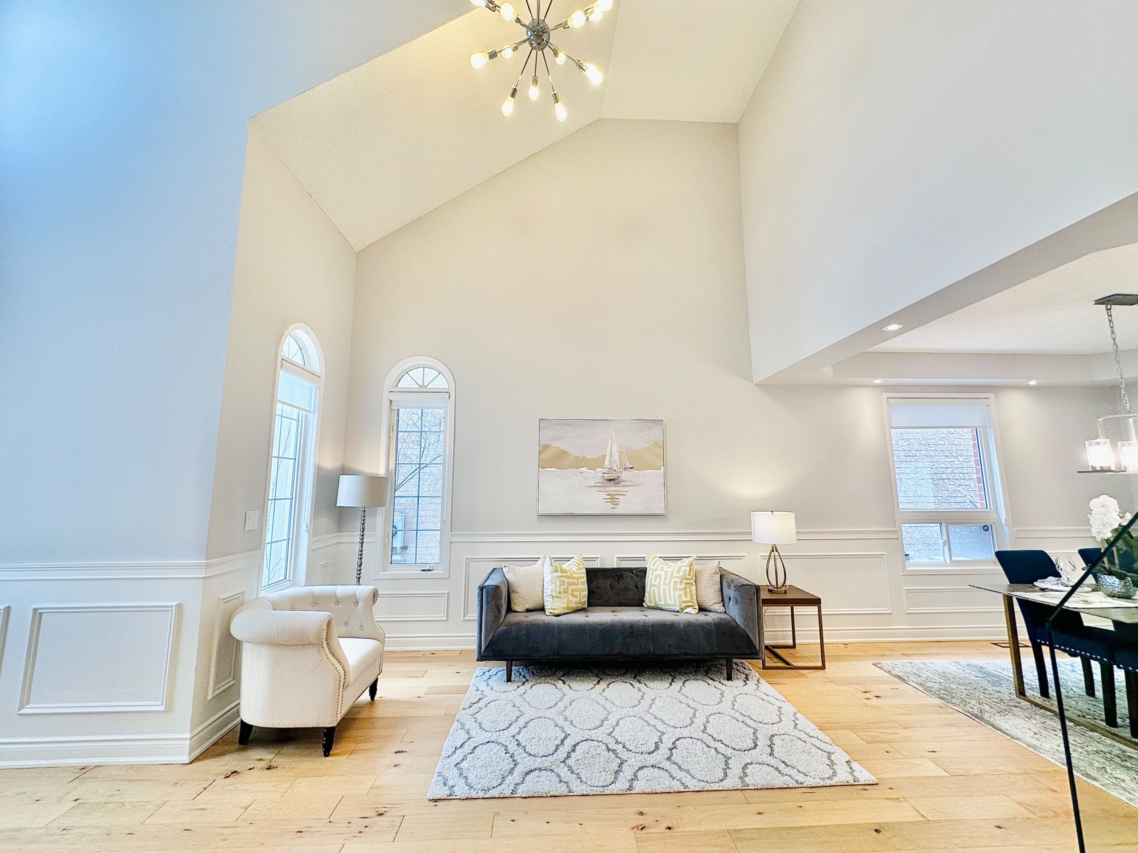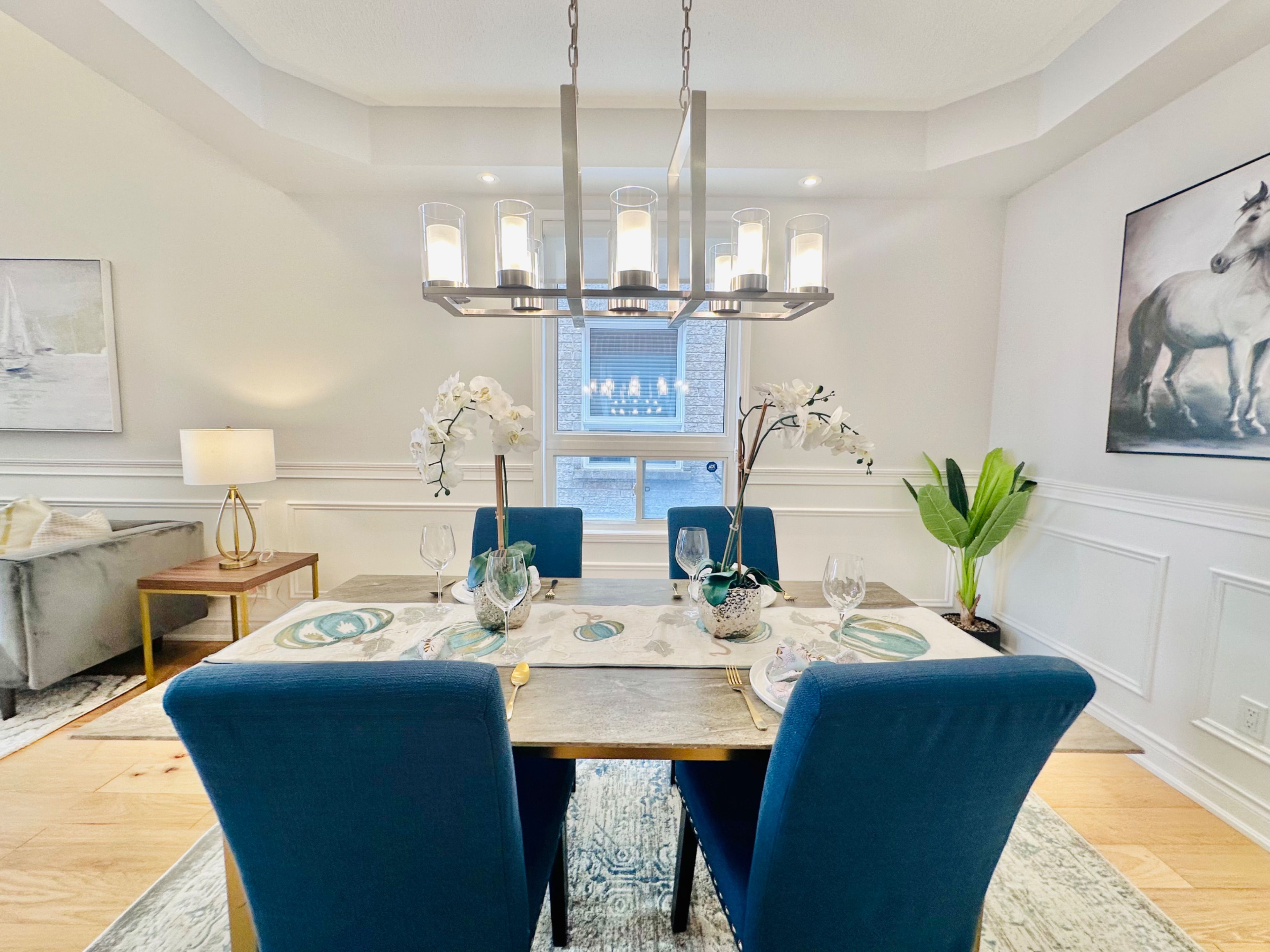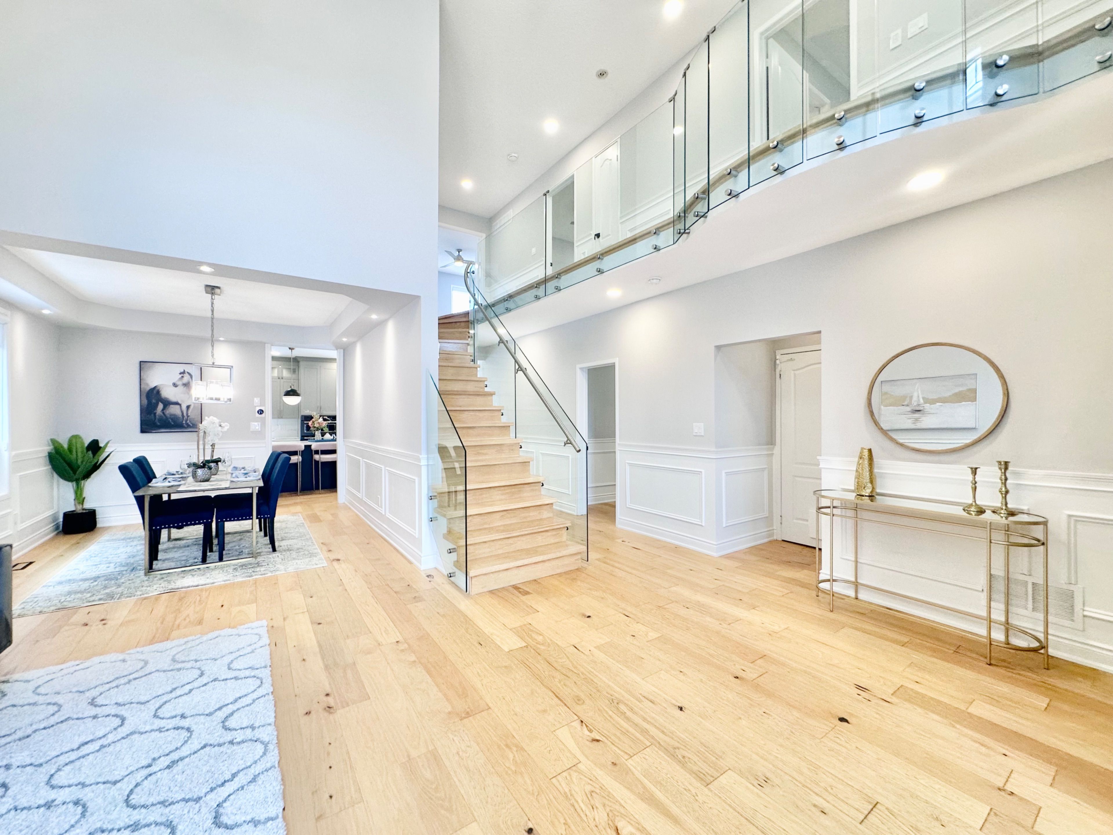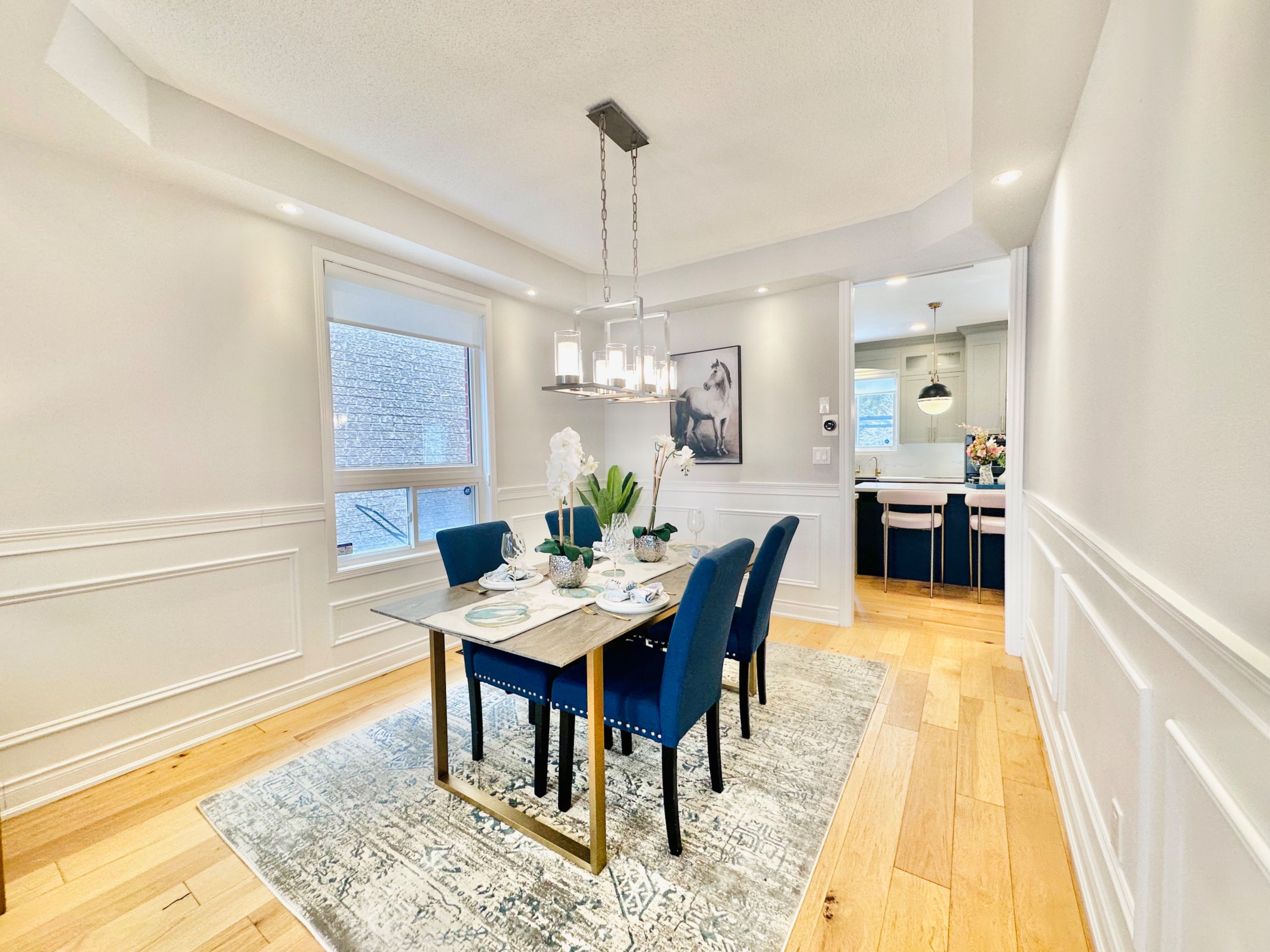 • Elegant wainscoting and modern hardwood flooring throughout the main floor.