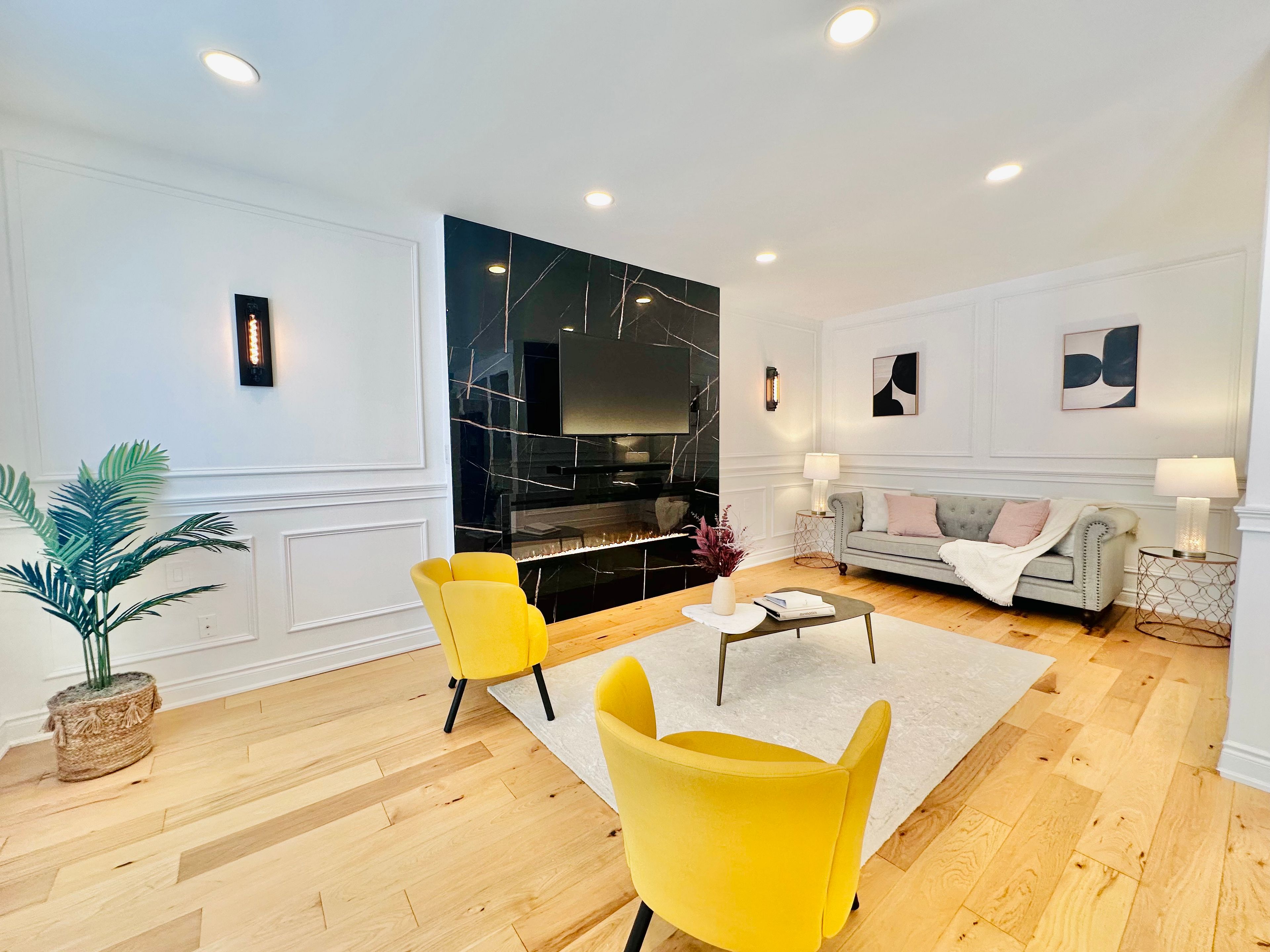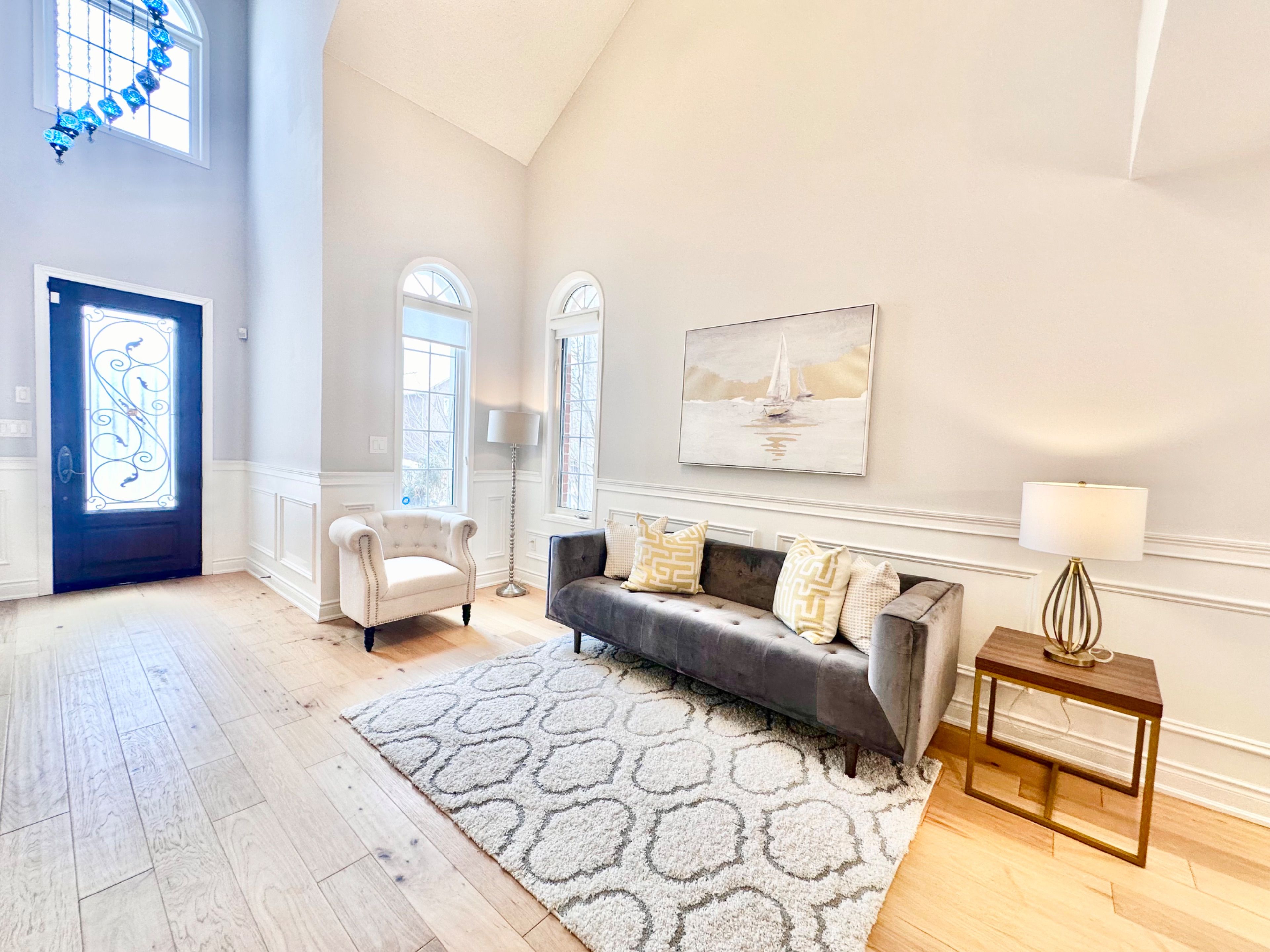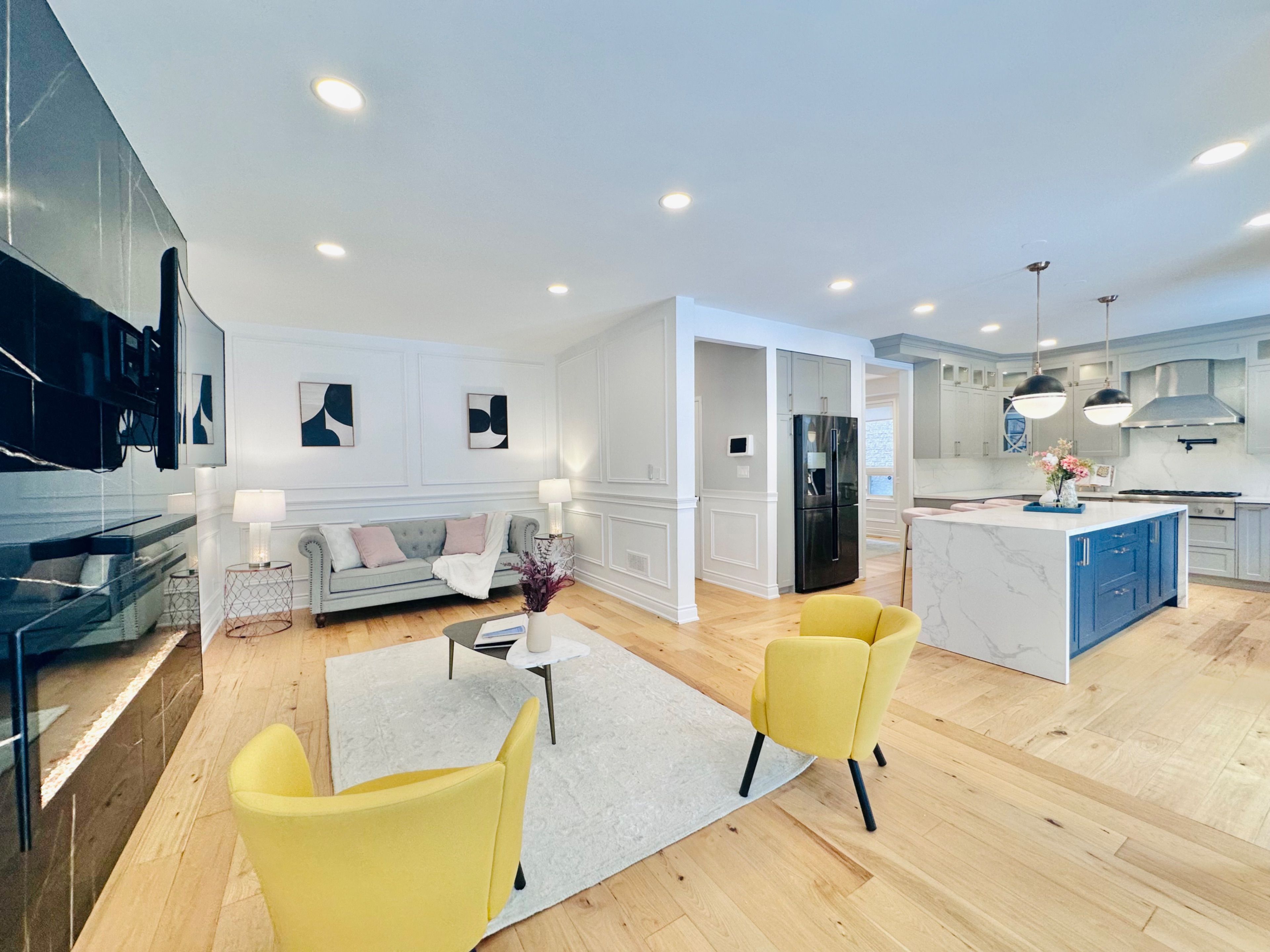 • Elegant wainscoting and modern hardwood flooring throughout the main floor.