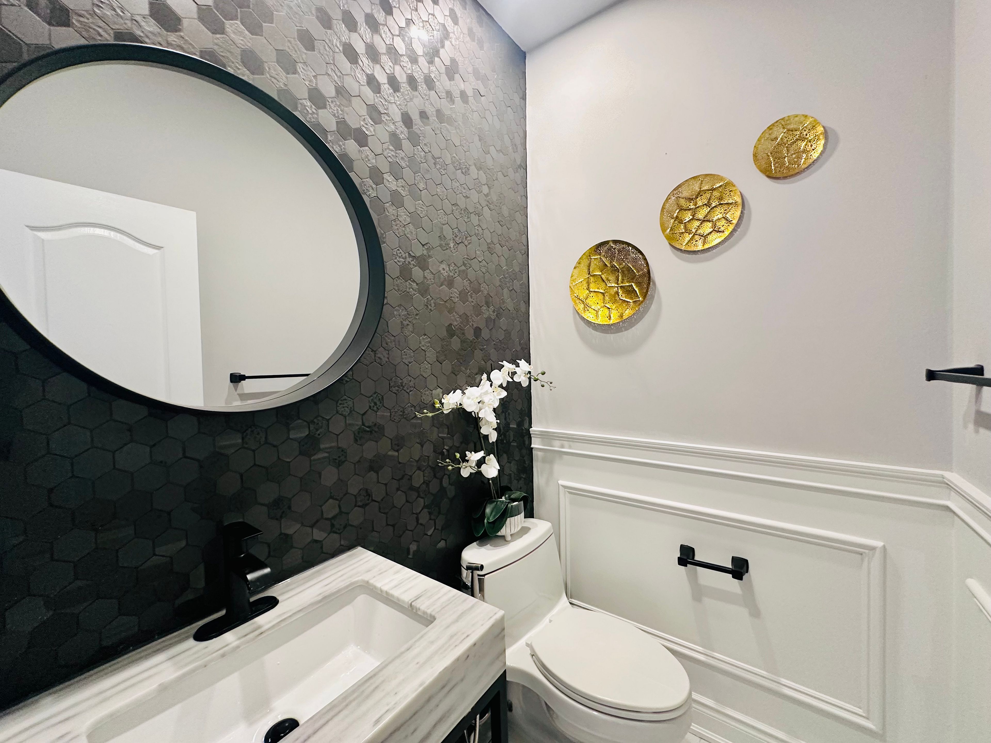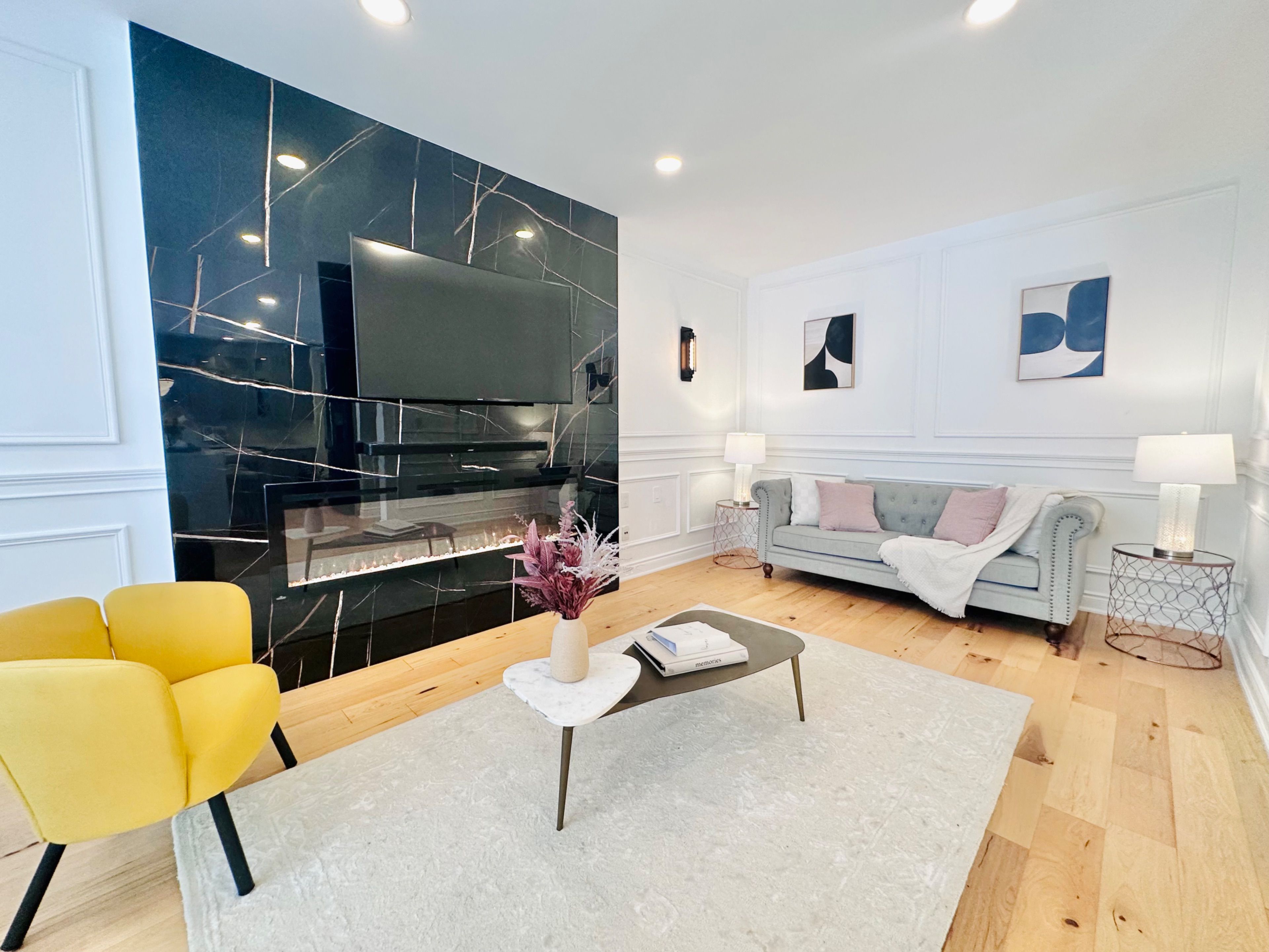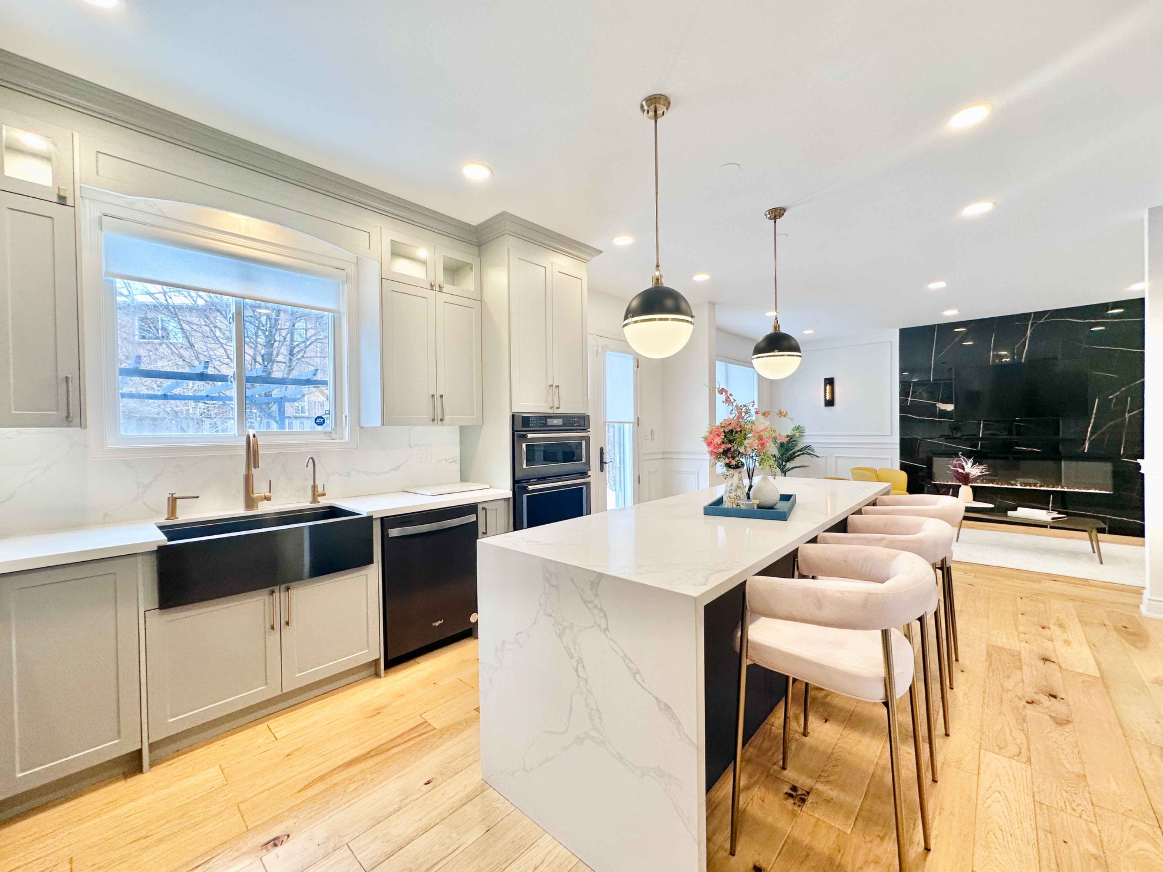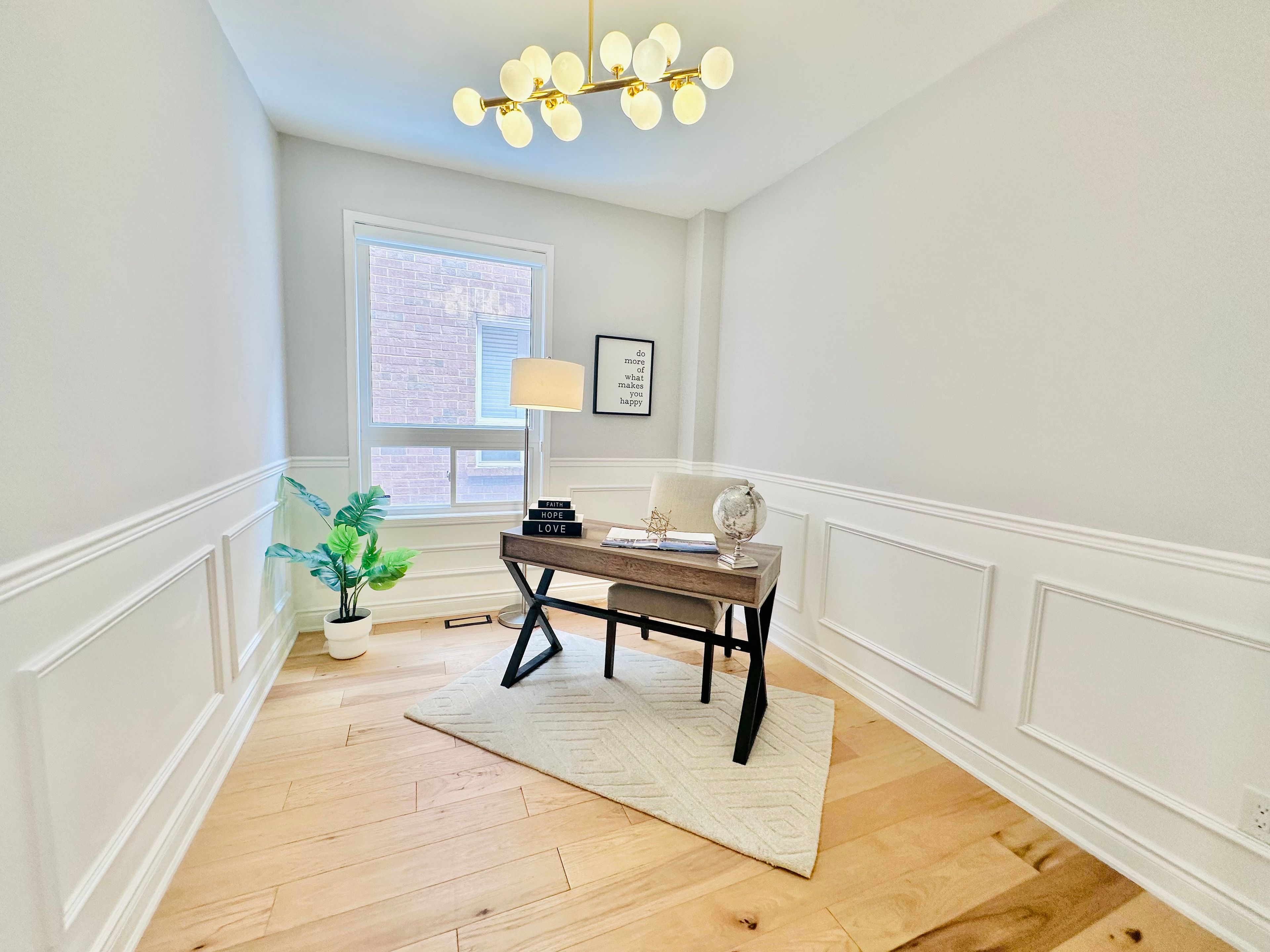 • Elegant wainscoting and modern hardwood flooring throughout the main floor.
