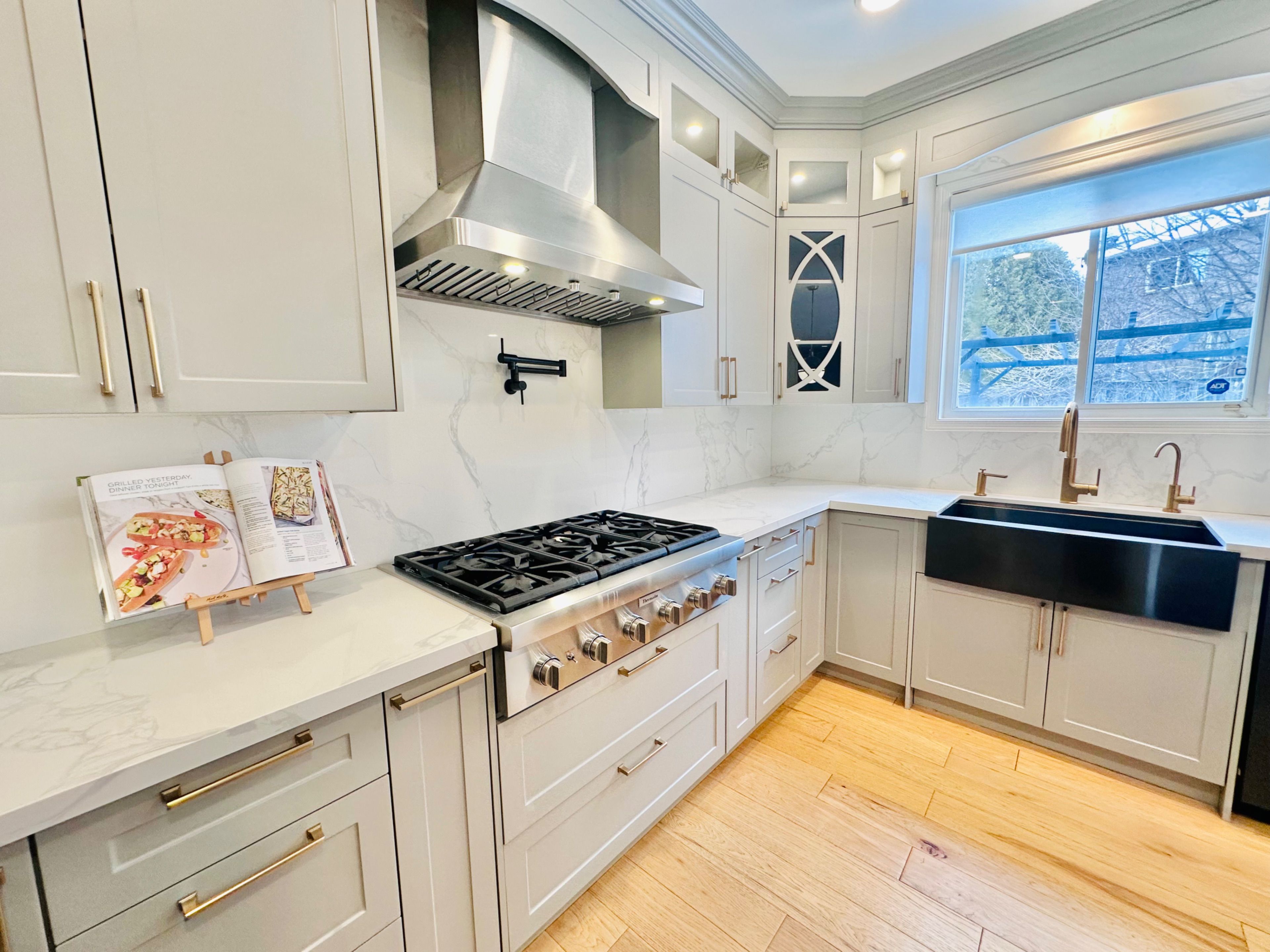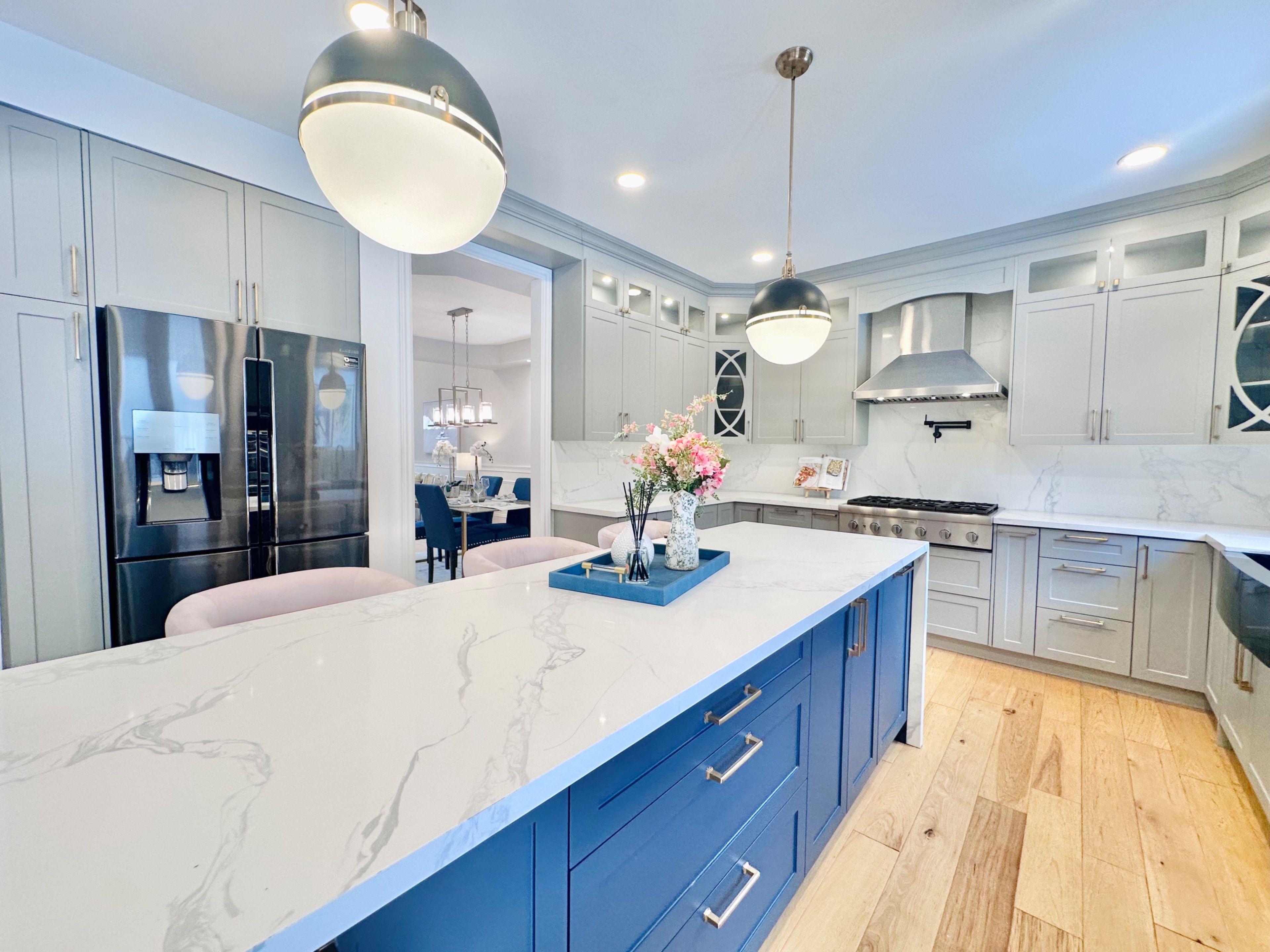 • Custom gourmet kitchen featuring quartz countertops and top-of-the-line appliances.