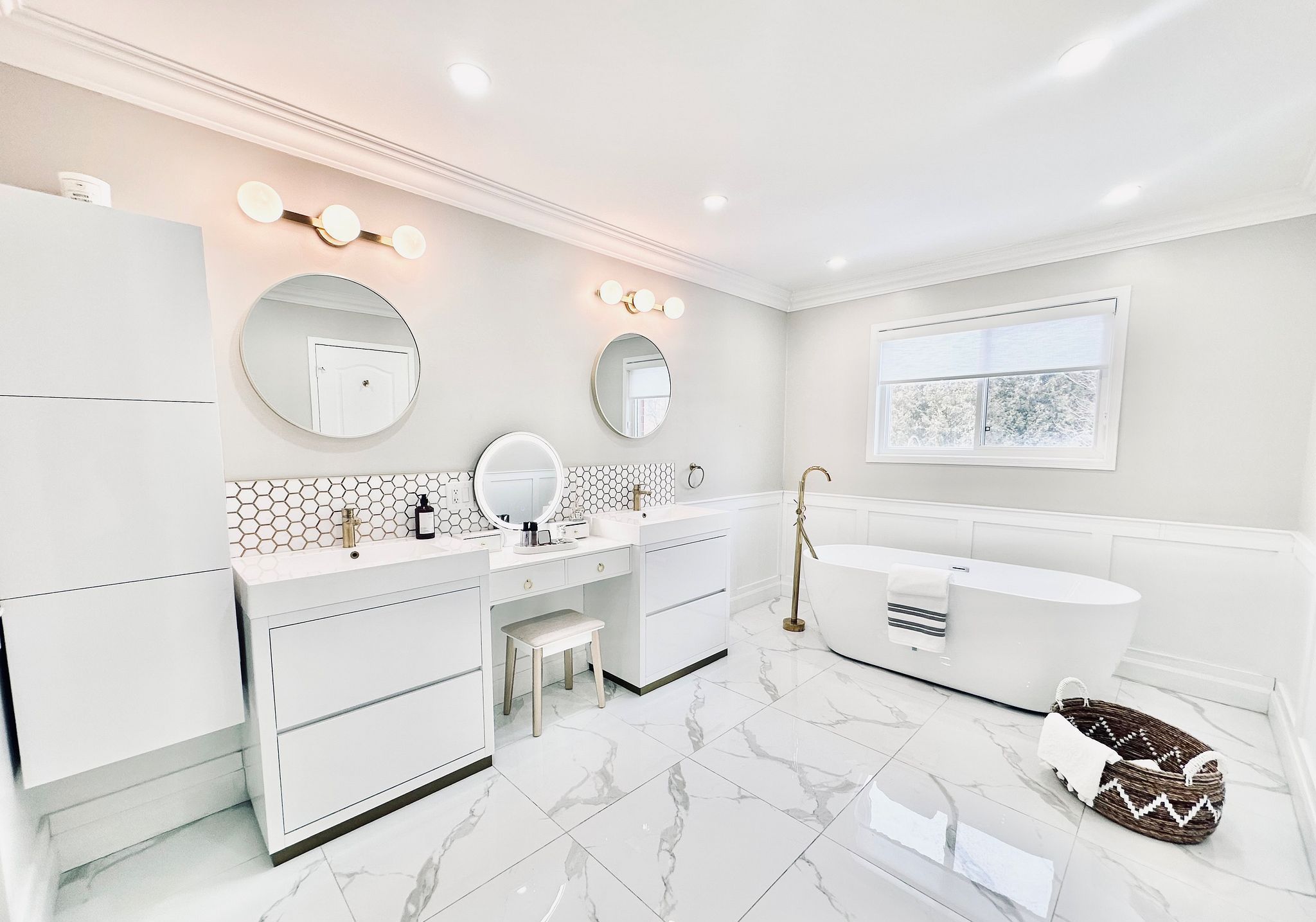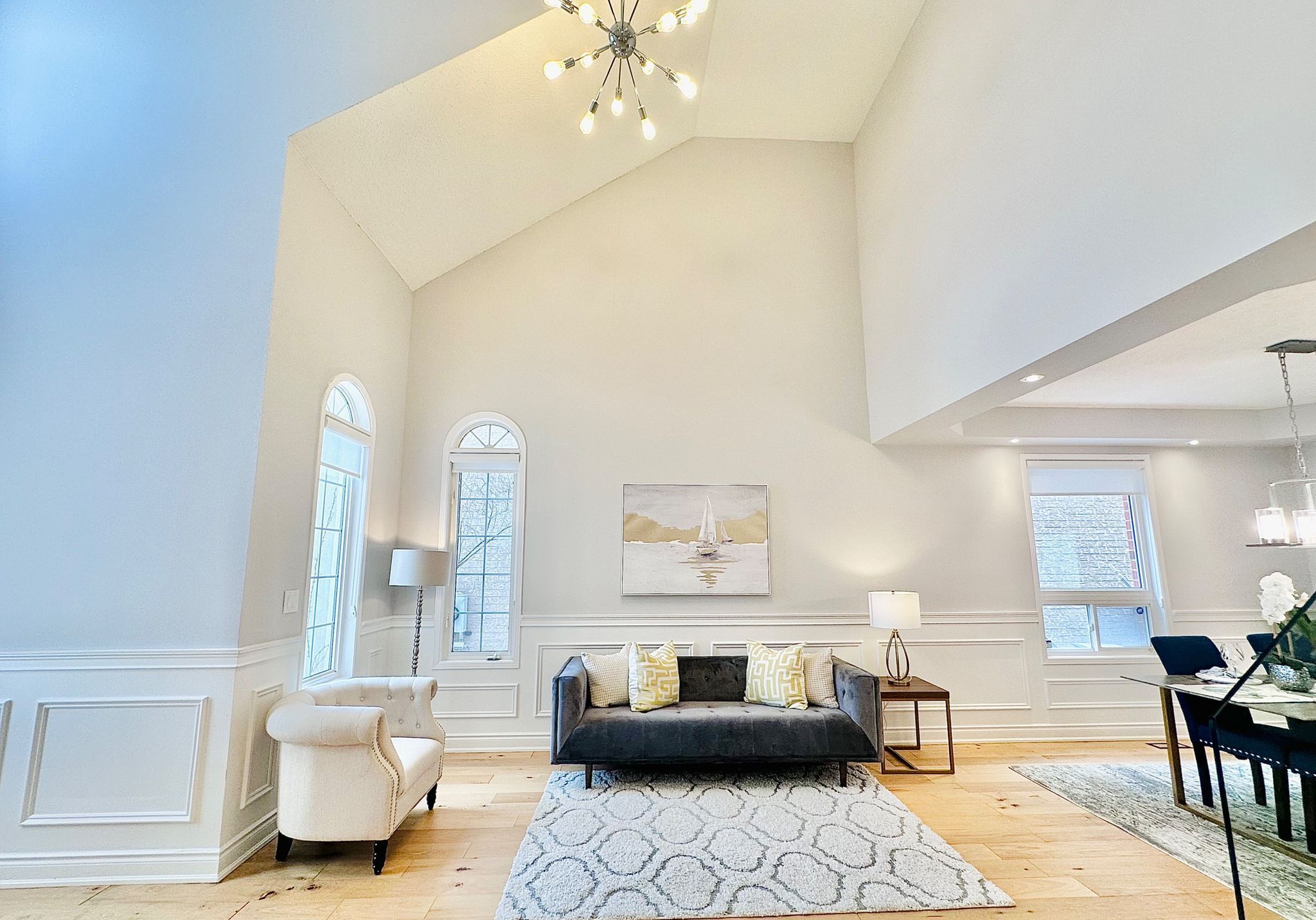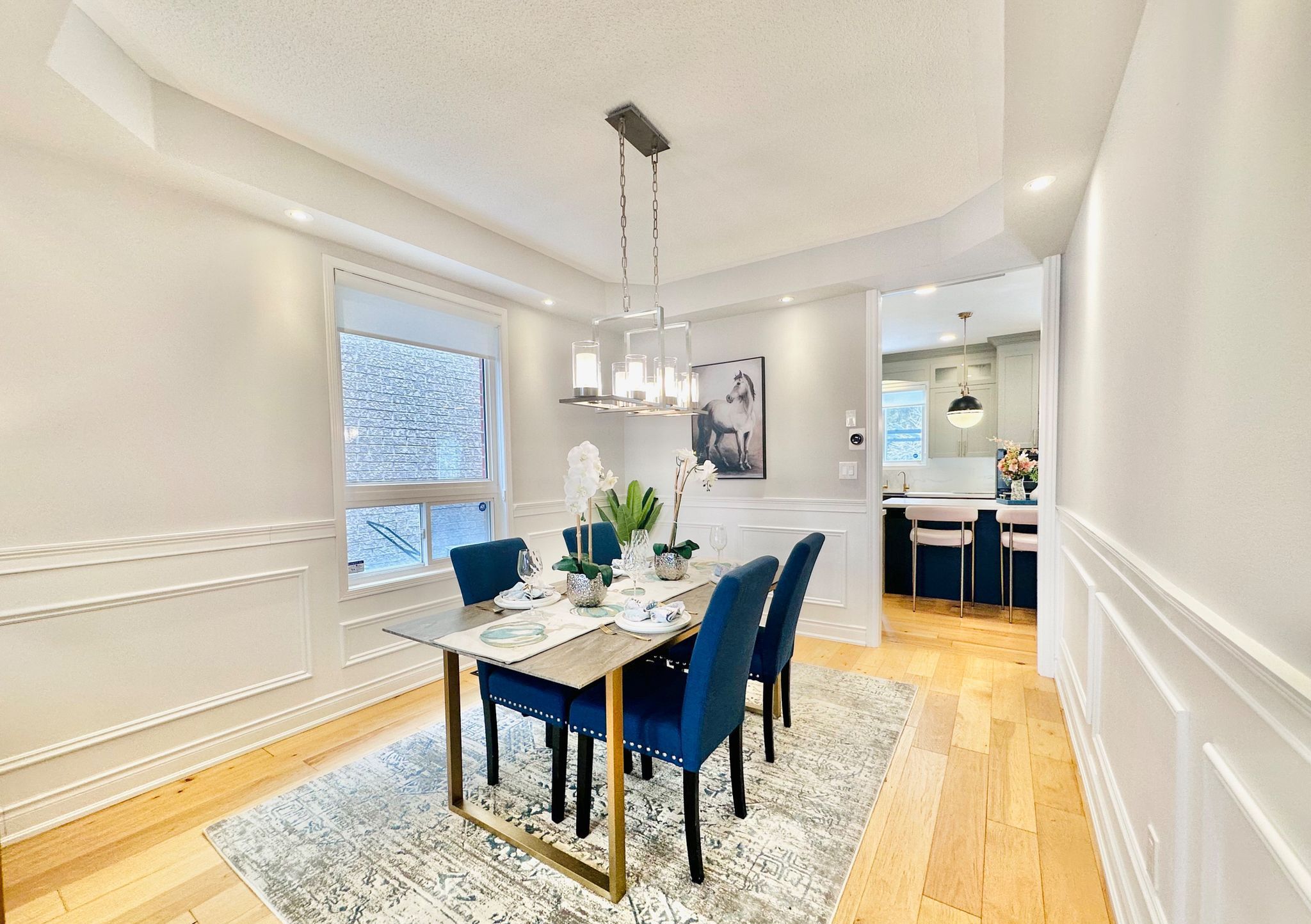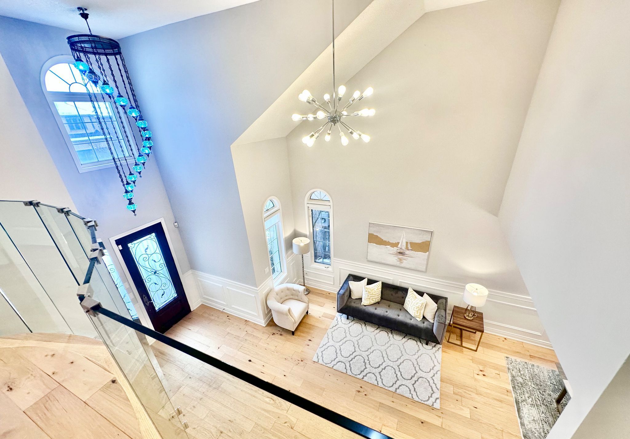 *see 3d tour* this stunning luxurious smart home offers approximately 4500 square feet of refined living space with over 300k spent on upgrades (2022). Featuring a grand open-to-above foyer and living room, elegant wainscoting throughout the main floor, and modern hardwood flooring with 9-foot ceilings. The custom gourmet kitchen showcases tall cabinets, top-of-the-line built-in wall ovens, a striking island with breakfast bar and extra cabinet storage, quartz countertops with a waterfall edge paired with a matching quartz backsplash and smart moen faucet. A beautiful hardwood staircase with sleek glass panels leads to the upper level, enhancing the home's modern elegance. The inviting family room highlights pot lights and a contemporary accent wall. Thoughtfully designed with two master bedrooms, each bedroom offers a full or semi-ensuite, while the primary suite boasts a spa-like bathroom and walk-in closet with custom shelving system. Professionally finished basement with an extra bedroom and 3 pc bathroom. Modern light fixtures and silk roman shades throughout! Enjoy the upgraded stucco exterior (2022), glass garage doors, stamped concrete driveway, and backyard patio. Perfectly situated in a highly sought-after neighborhood with a top-rated high school, close to parks, shopping, amenities, highways, and go station