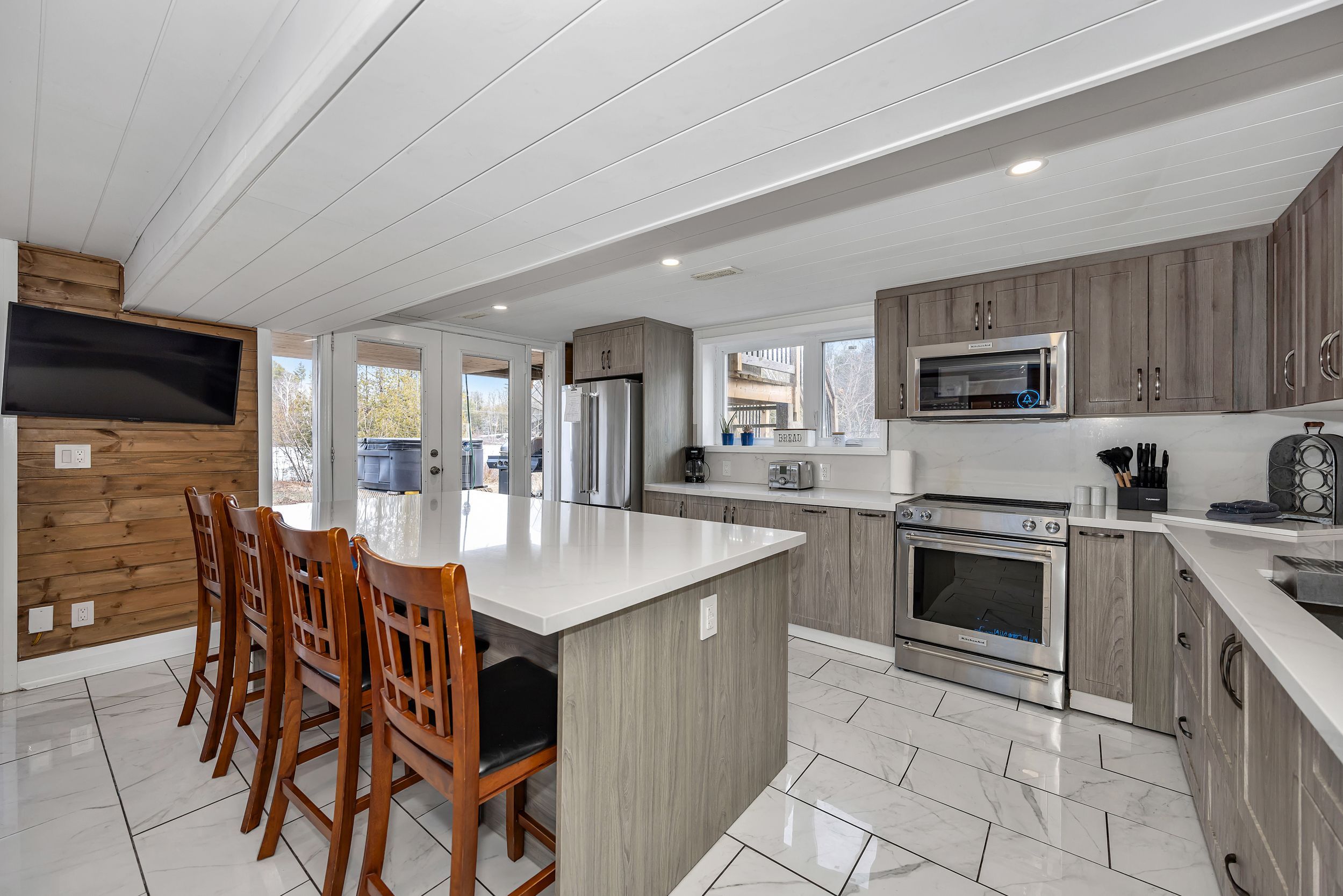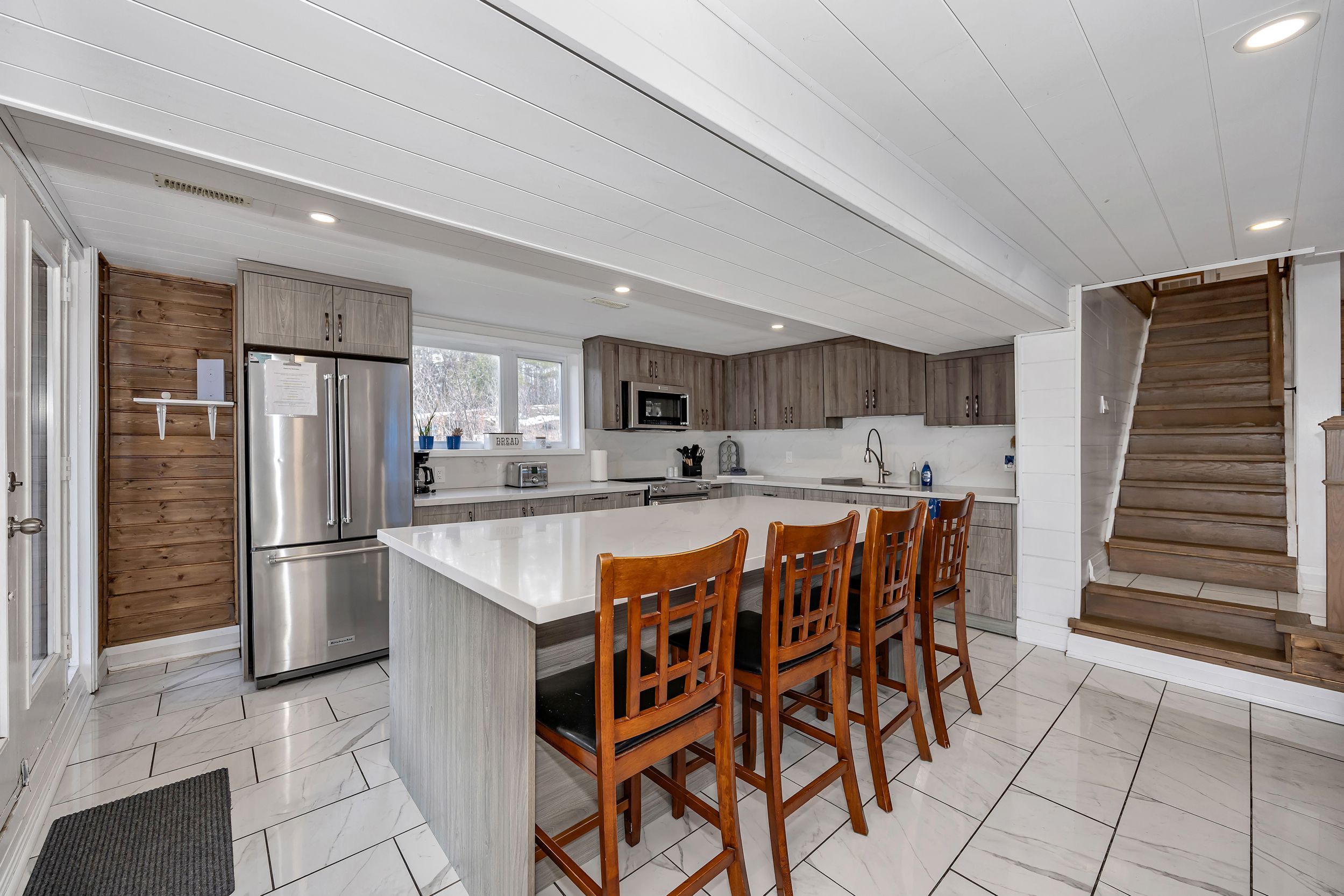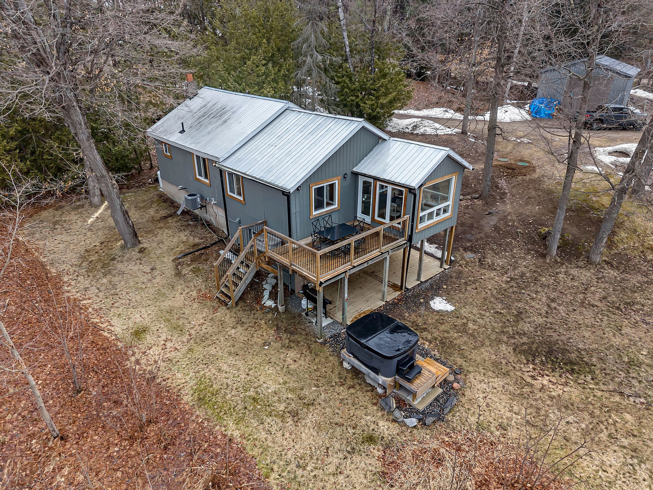 Welcome to this stunning four-season waterfront retreat offering the perfect blend of luxury, comfort, and investment potential. This beautifully updated home features 4 spacious bedrooms, including 2 with private ensuites, and fully renovated bathrooms throughout, plus a convenient powder room. Designed to showcase breathtaking panoramic water views, the main level offers a bright sitting area that seamlessly flows to a patio and deck - perfect for relaxing or entertaining while soaking in the scenery. The lower level features a warm and inviting living room and a beautifully updated kitchen complete with quartz countertops - ideal for everyday living or hosting guests. Enjoy effortless indoor-outdoor living with a walkout leading to two large patio doors, providing easy access to the waterfront and hot tub - your own private oasis. Every detail of this home has been thoughtfully updated to create a serene and relaxing atmosphere year-round. A detached shop/garage with hydro adds extra functionality and storage. Currently operating as a cash-positive airbnb, this property presents an exceptional opportunity for investors or those seeking a turnkey waterfront lifestyle.