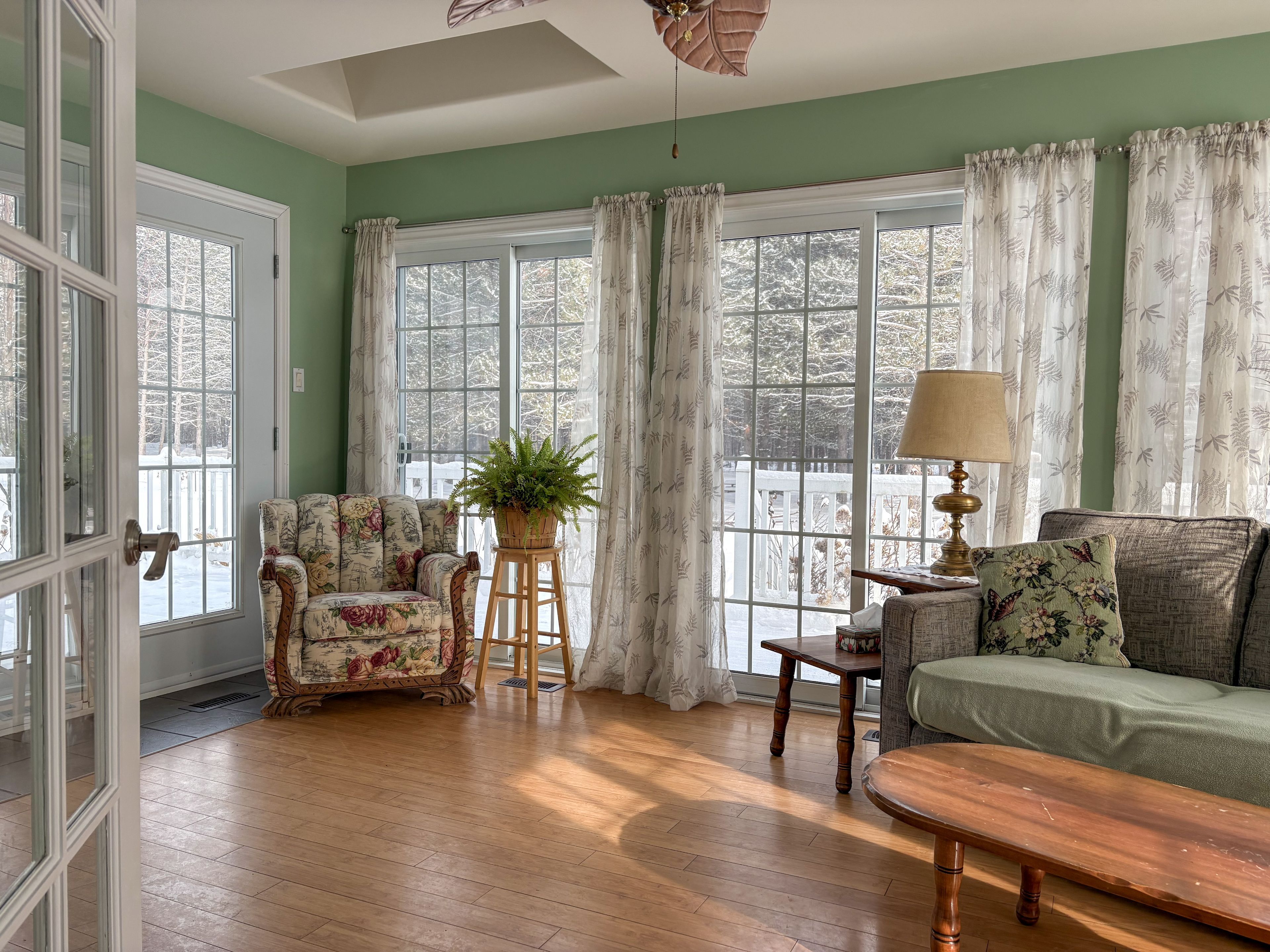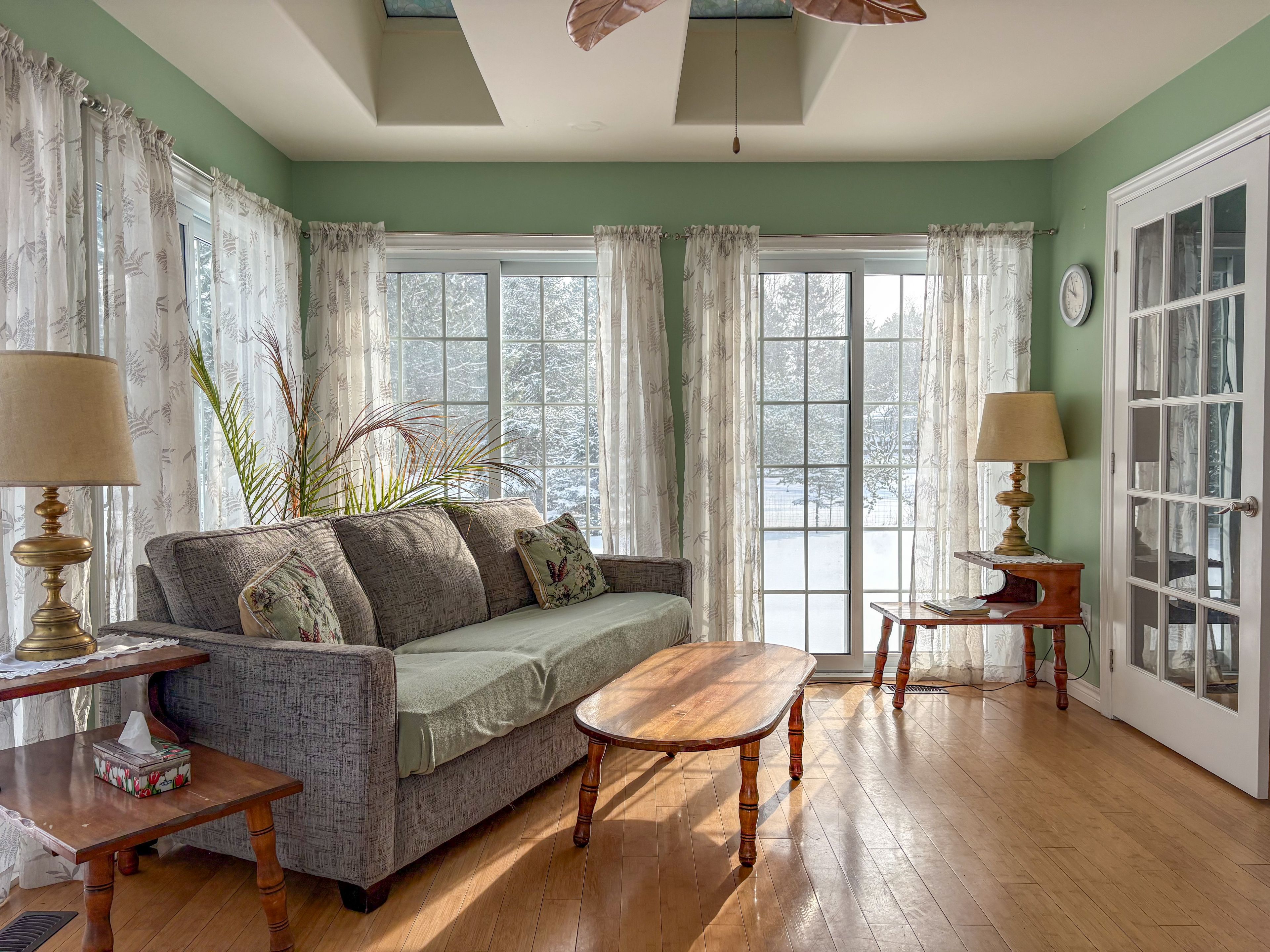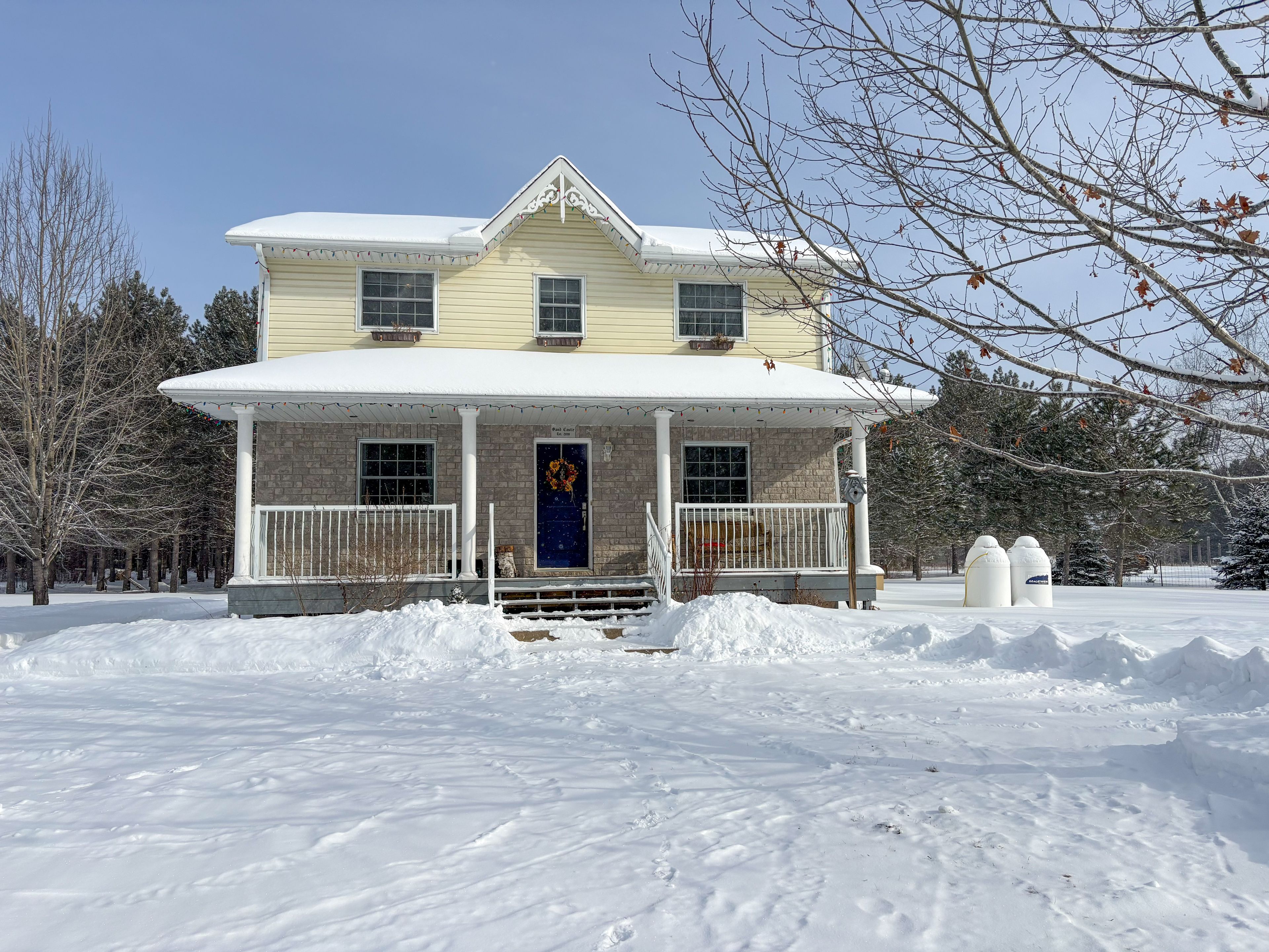 With its front veranda, peaked roofline, and gingerbread trim, 2296 eady rd looks like it's been pulled from the pages of a storybook . This charming two-storey home sits on 30 deep acres, offering the kind of space that's hard to find and even harder to outgrow. Inside, the home is bright and welcoming, with 3+1 bedrooms, a full bath upstairs, powder room on the main, and an ensuite featuring custom cabinetry and a retro blue-and-white checkered floor. The main living area is filled with natural light, and the wood-burning fireplace adds both warmth and character. The kitchen is practical and solid, with granite counters and a layout that just works. At the back of the home, the sunroom steals the show - full of windows, flooded with light, and offering a panoramic view of the acreage beyond. It's the kind of space that makes you want to sit down and stay awhile, no matter the season. Just outside, a back deck leads you into a deep stretch of land - ideal for walking trails, gardens, or simply room to spread out and explore. A detached 4-bay garage offers space for tools, toys, or whatever project comes next. And with easy access to storyland rd. And hwy 17, you're never far from what you need - and always glad to come home.